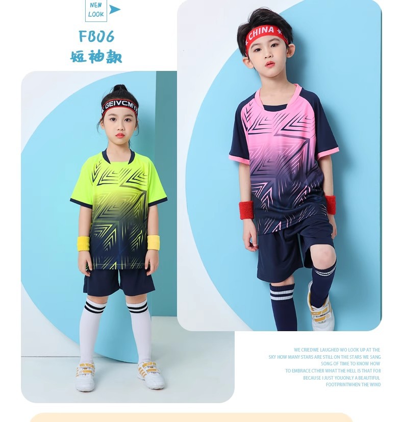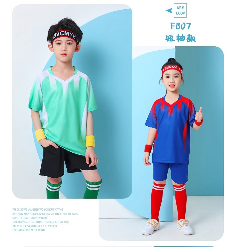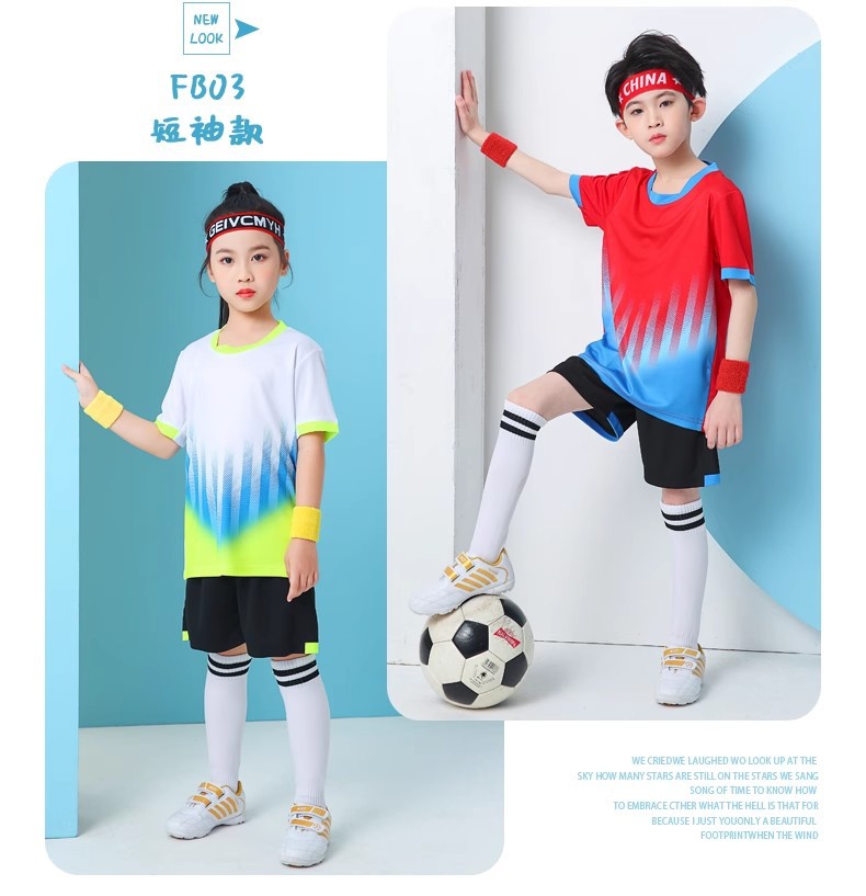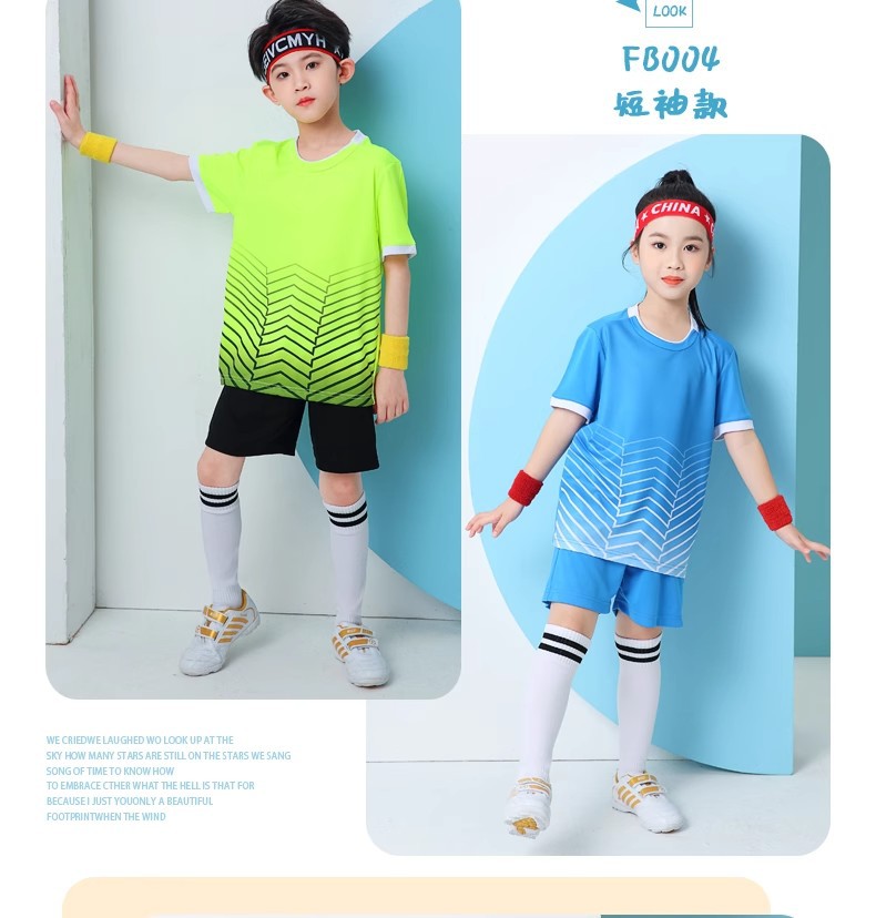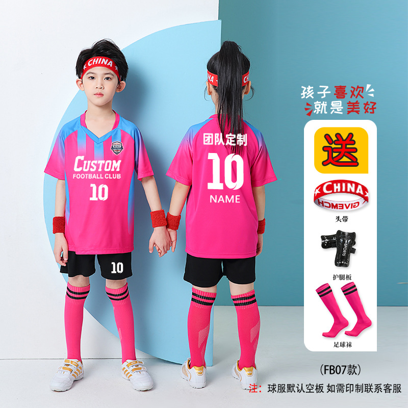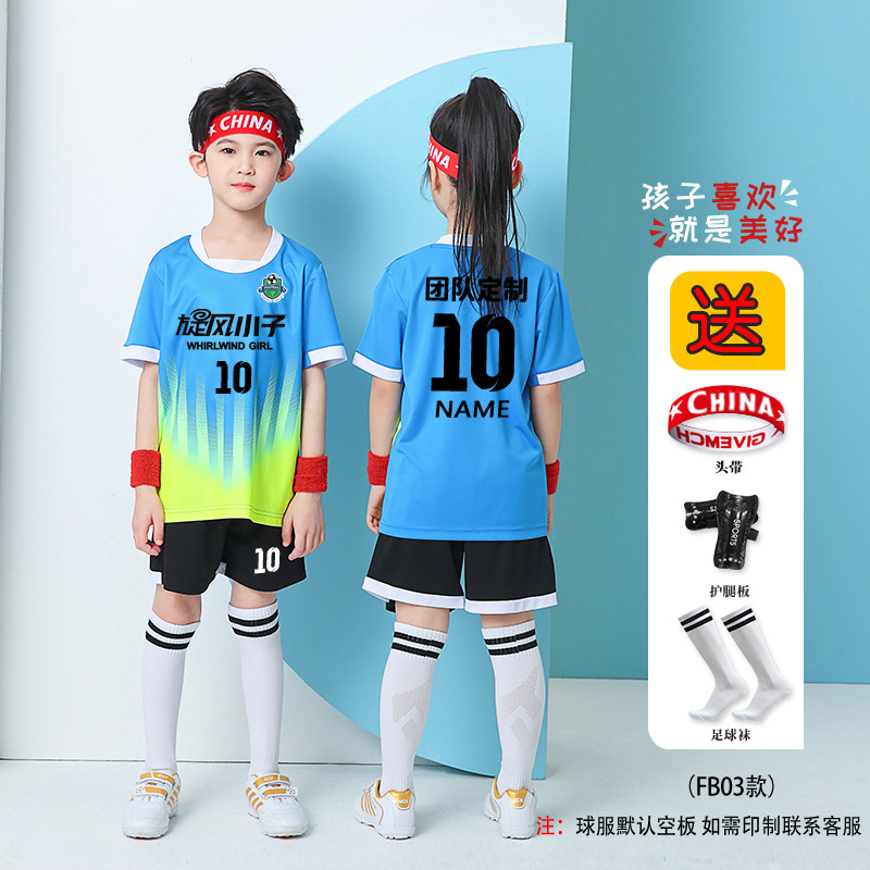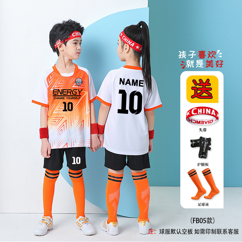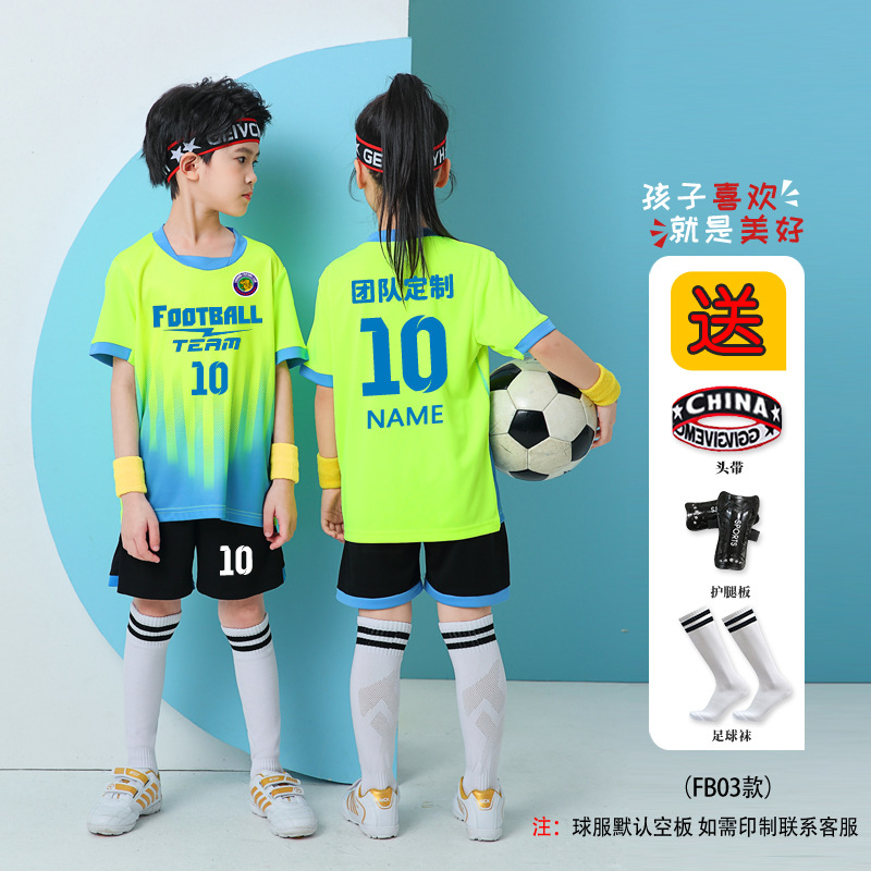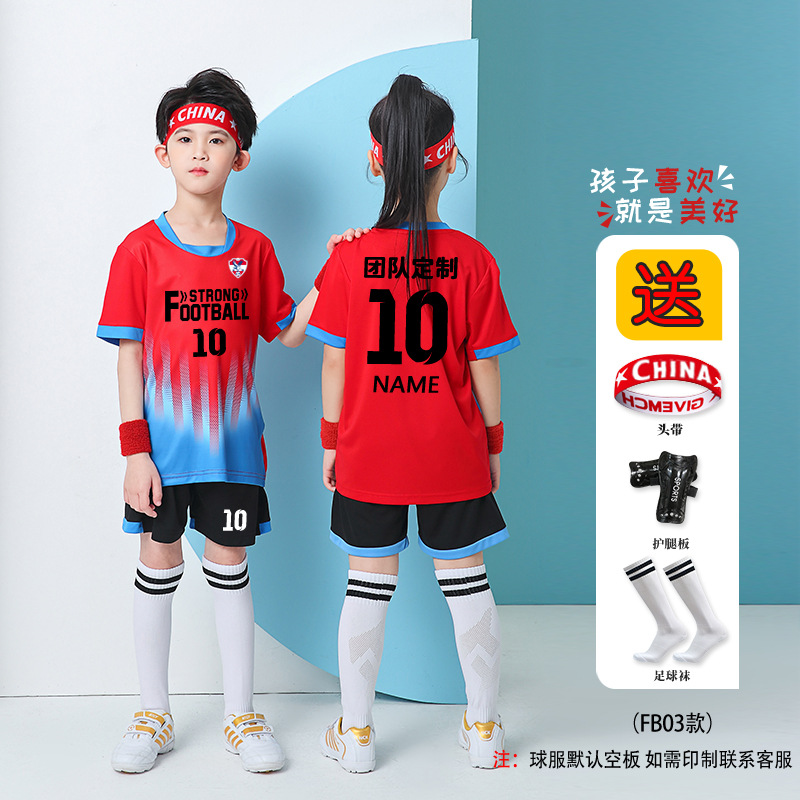 儿童足球服套装男女童夏季短袖小学生足球比赛训练服印制球衣队服
