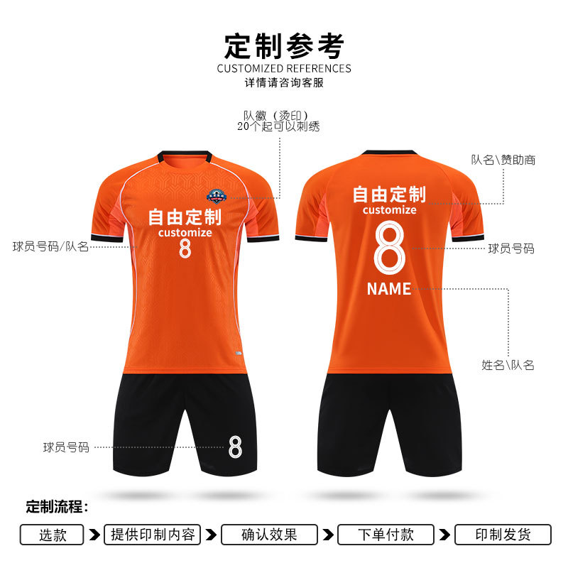 短袖足球服套装光板比赛训练队服成人儿童同款球服透气足球衫定制