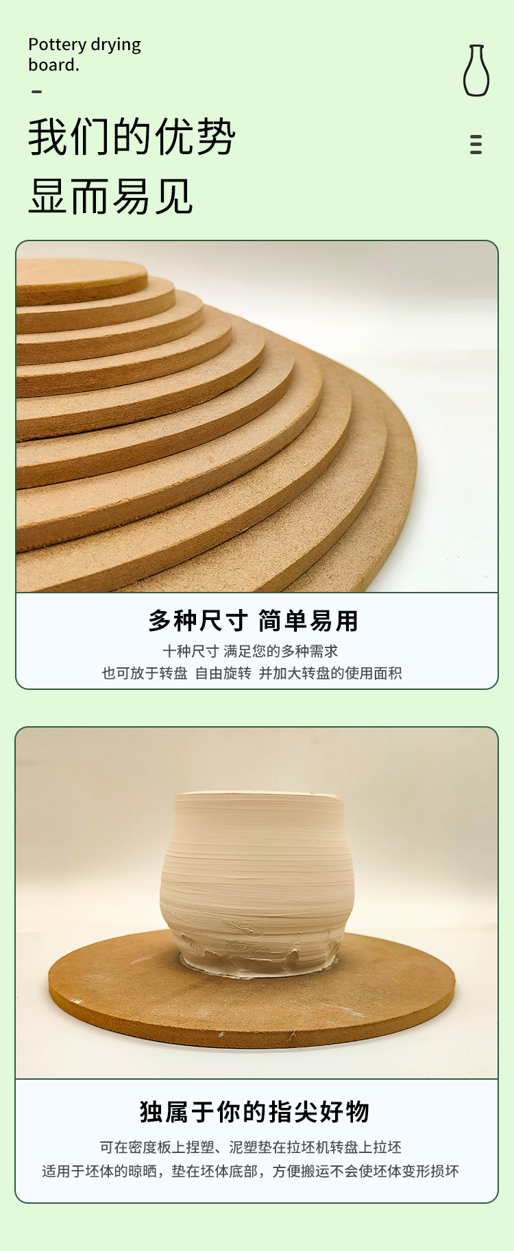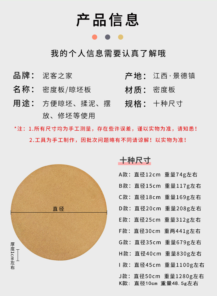 泥客之家陶艺密度板拉坯垫板晒坯板量坯板压缩板烘坯板制陶瓷工具