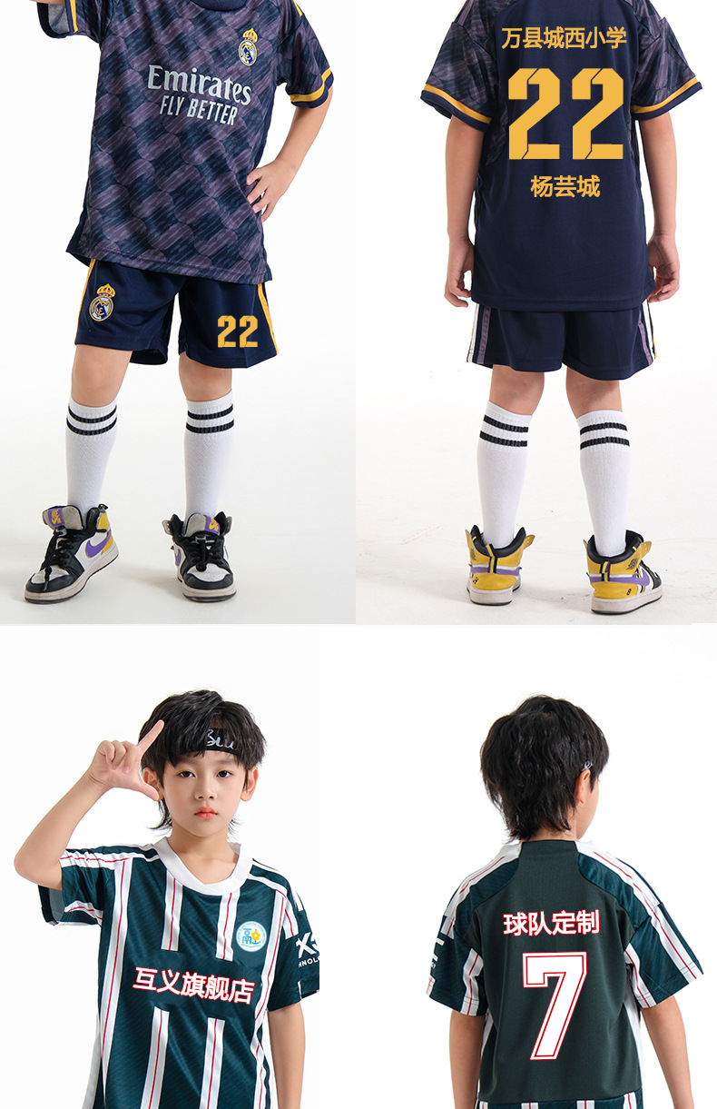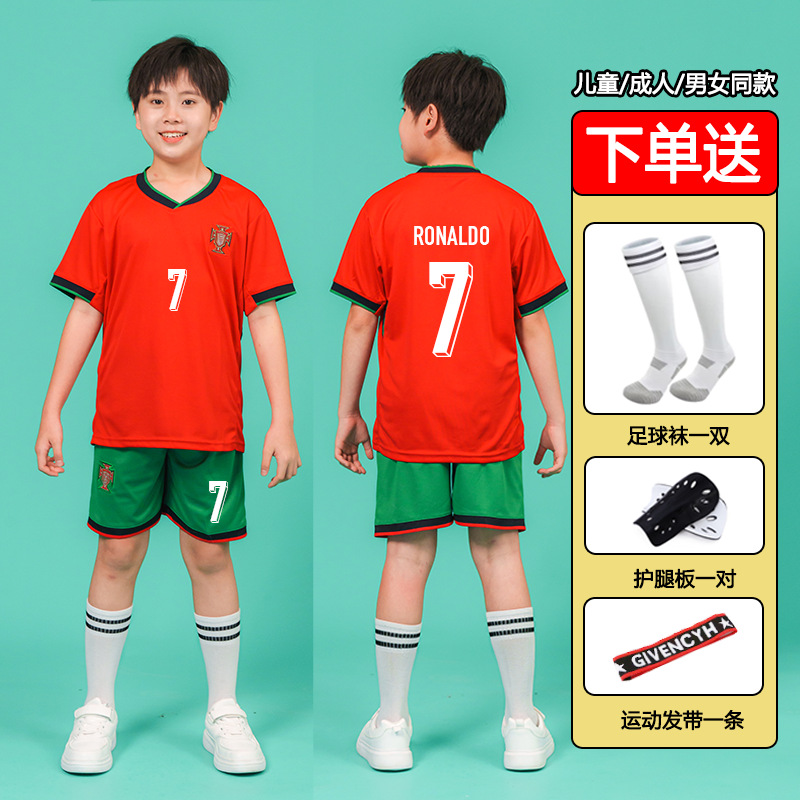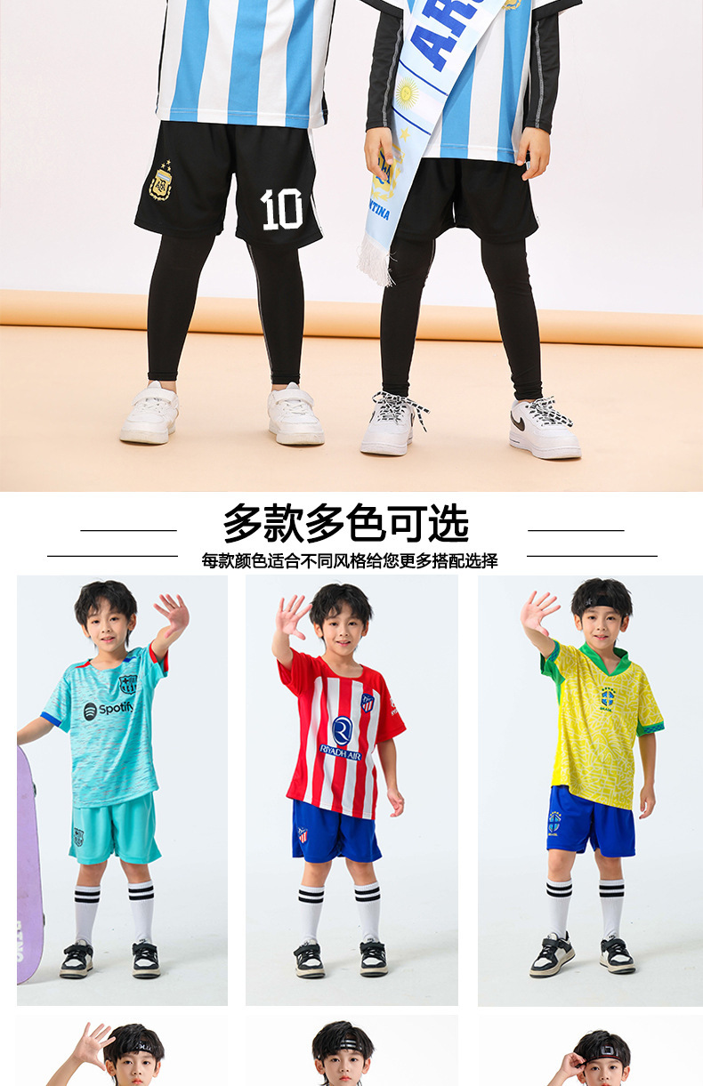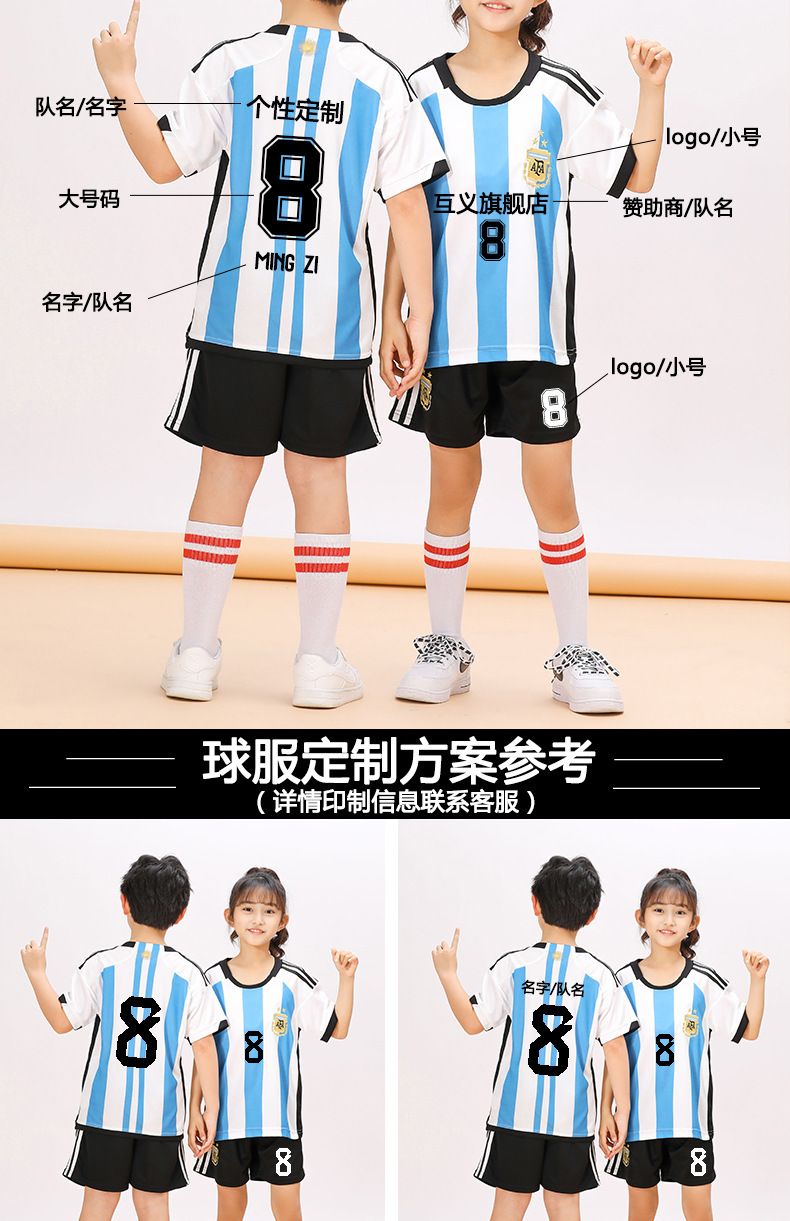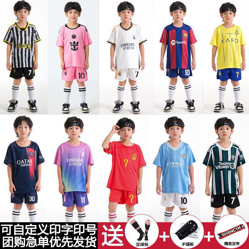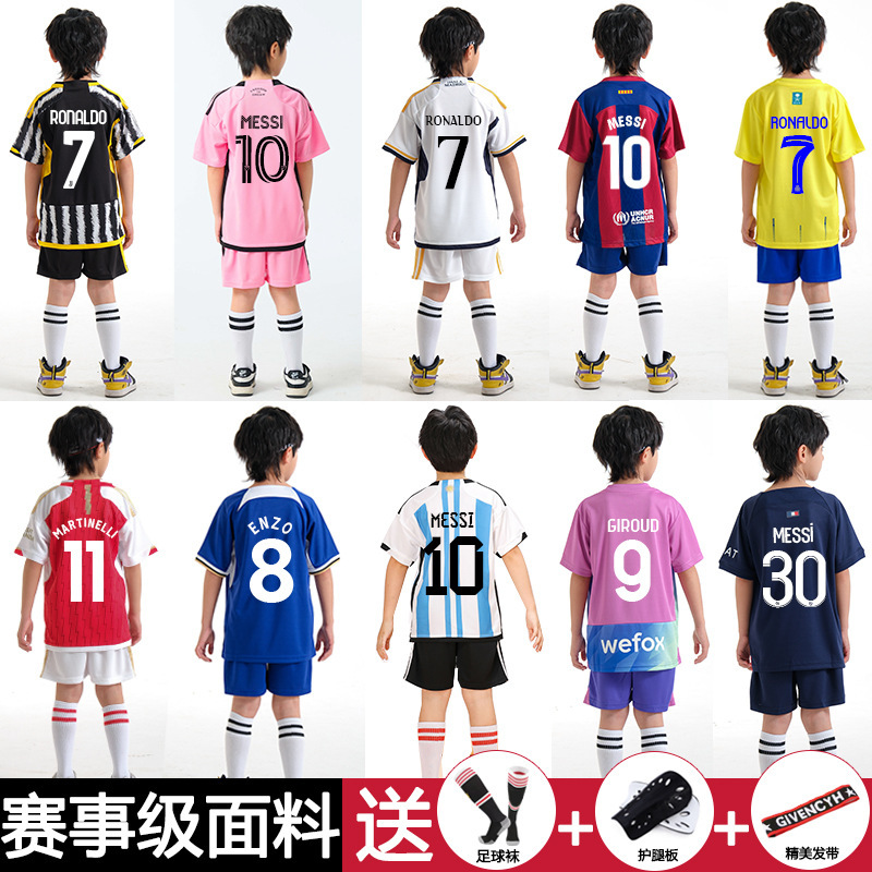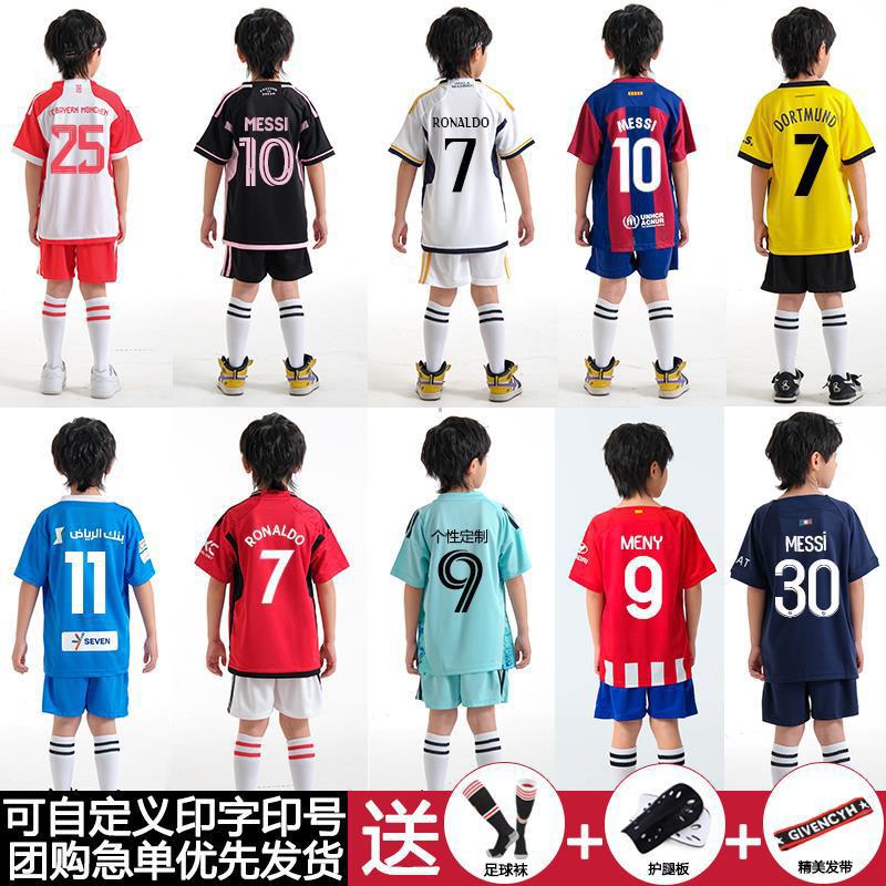 儿童足球服套装男童梅西C罗球衣男女小学生班级比赛训练队服批发