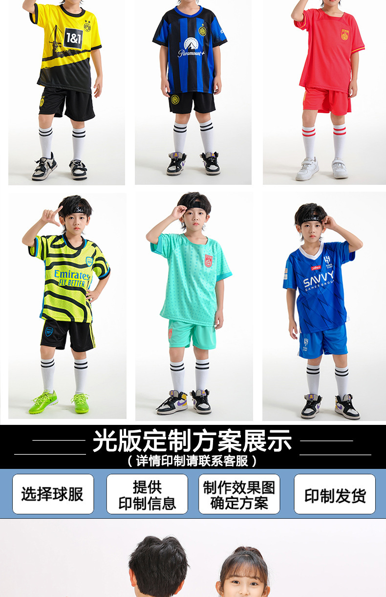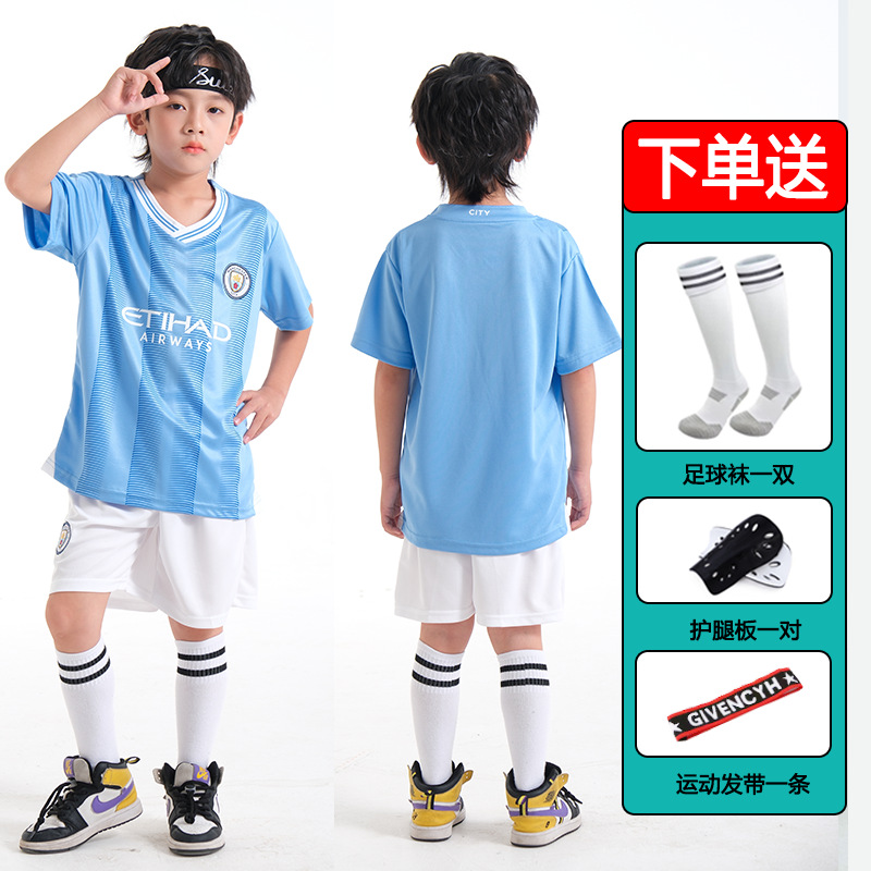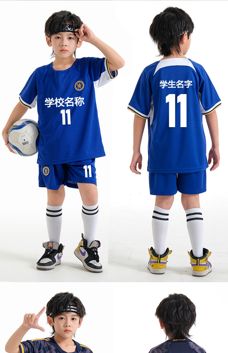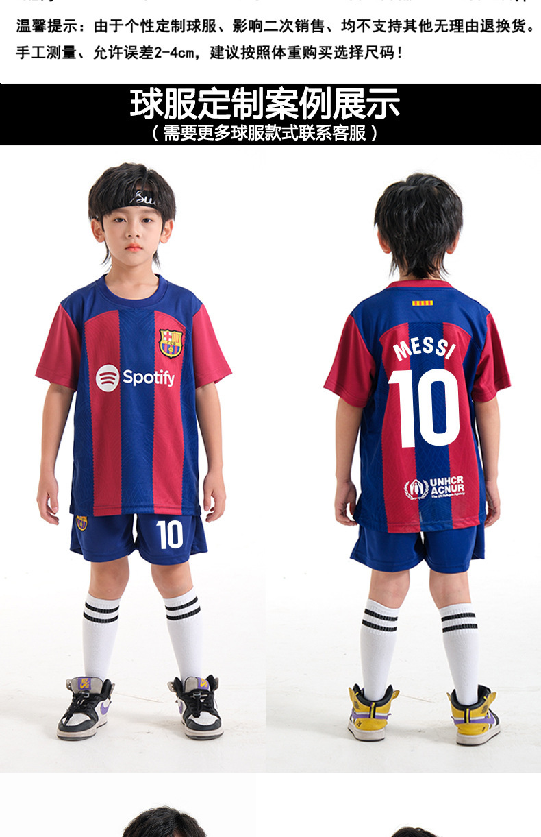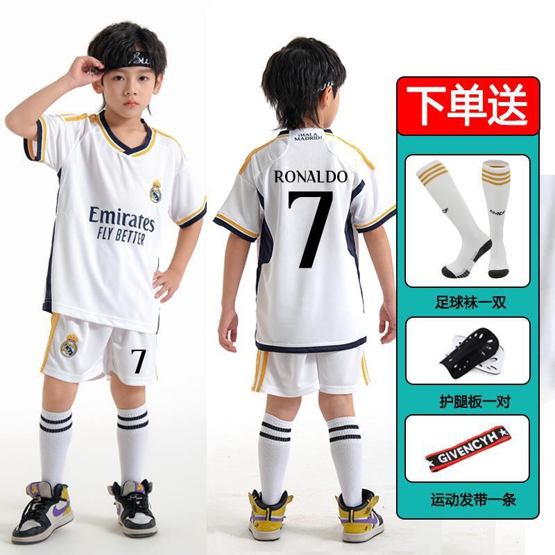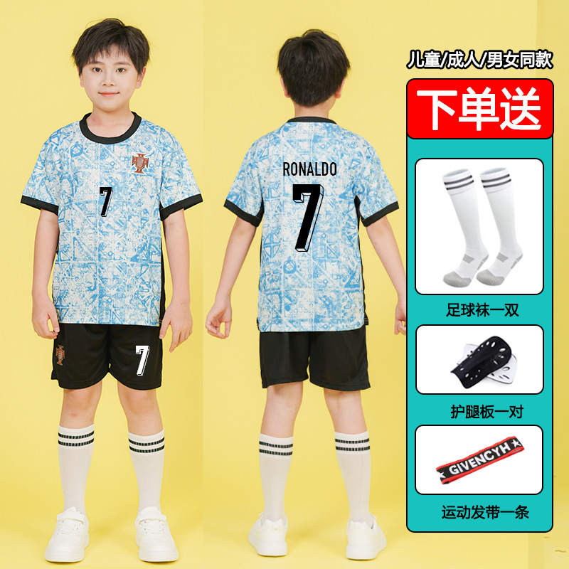 儿童足球服套装男童梅西C罗球衣男女小学生班级比赛训练队服批发