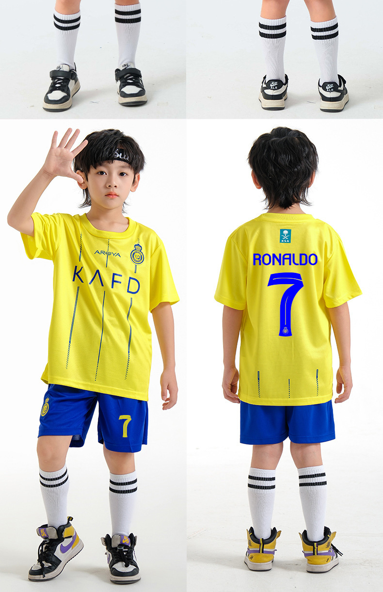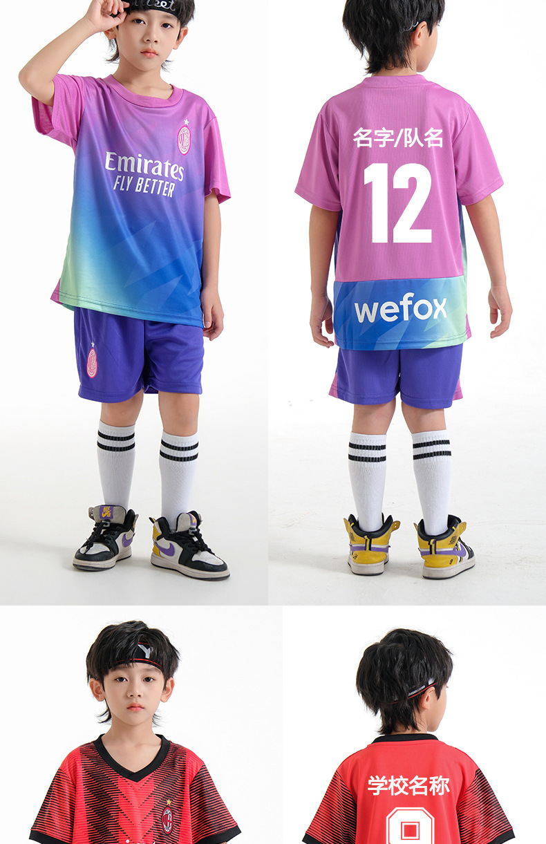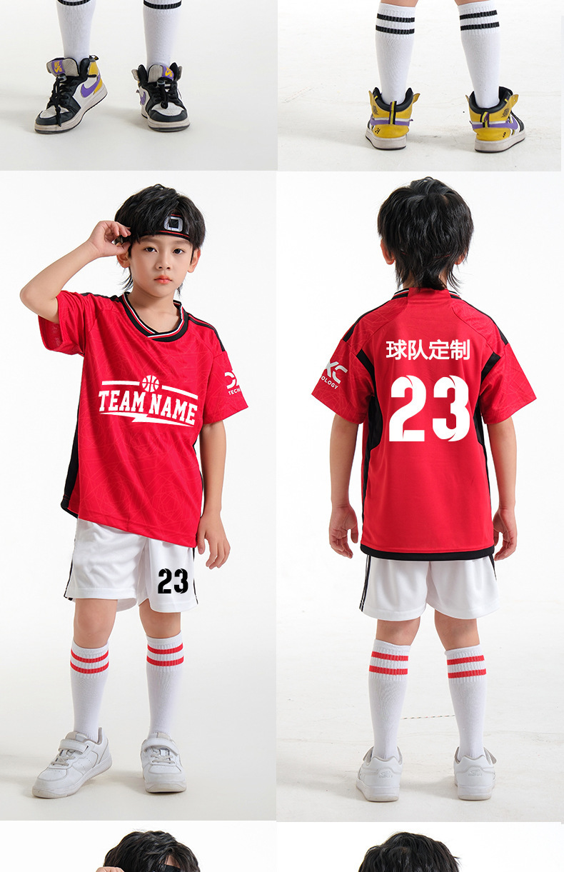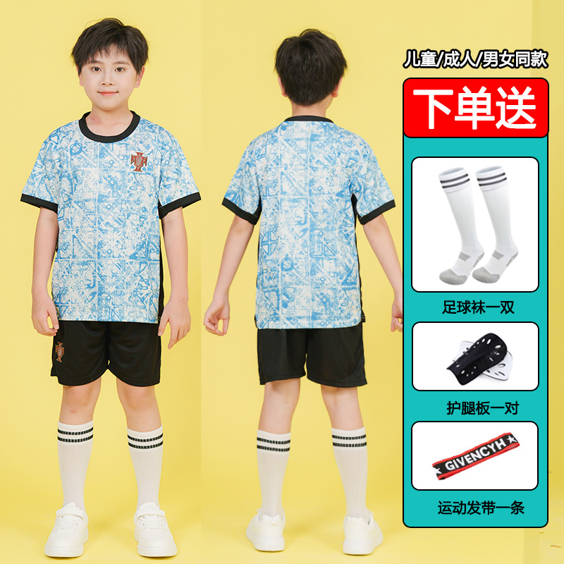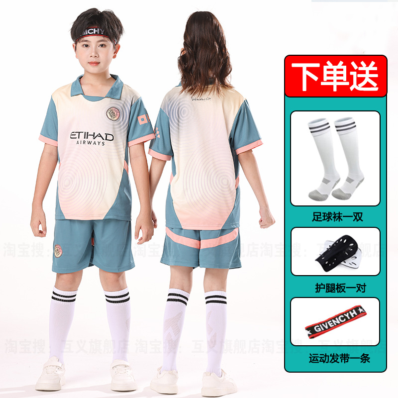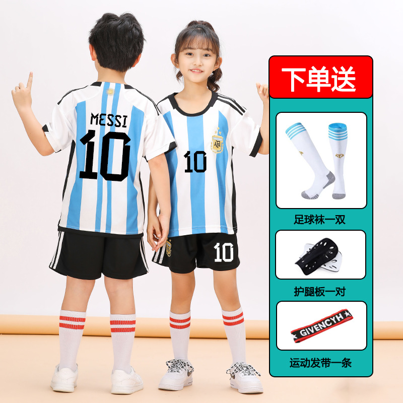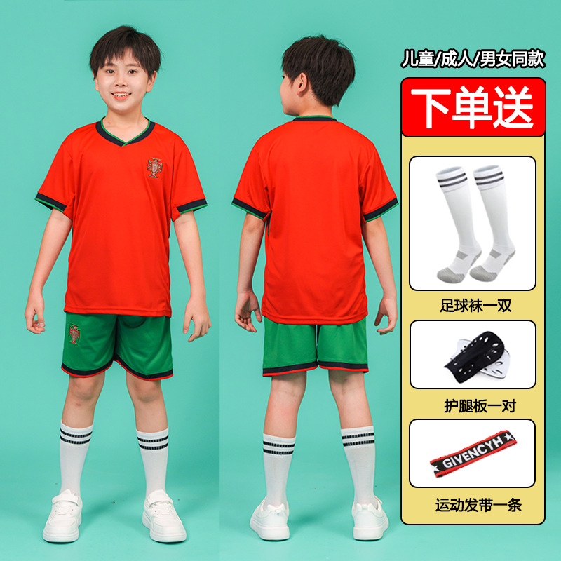 儿童足球服套装男童梅西C罗球衣男女小学生班级比赛训练队服批发