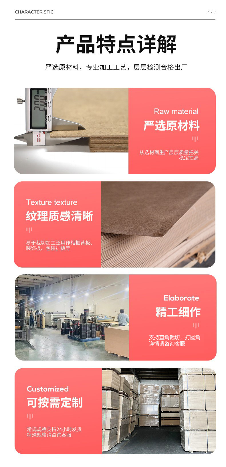 中纤维密度板工程地面保护相框背板礼品盒密度板垫板包装板定制