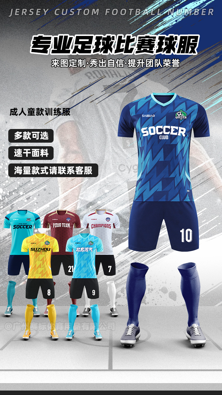 新款足球服套装男渐变色球衣吸汗透气训练比赛队服印制男女款球服