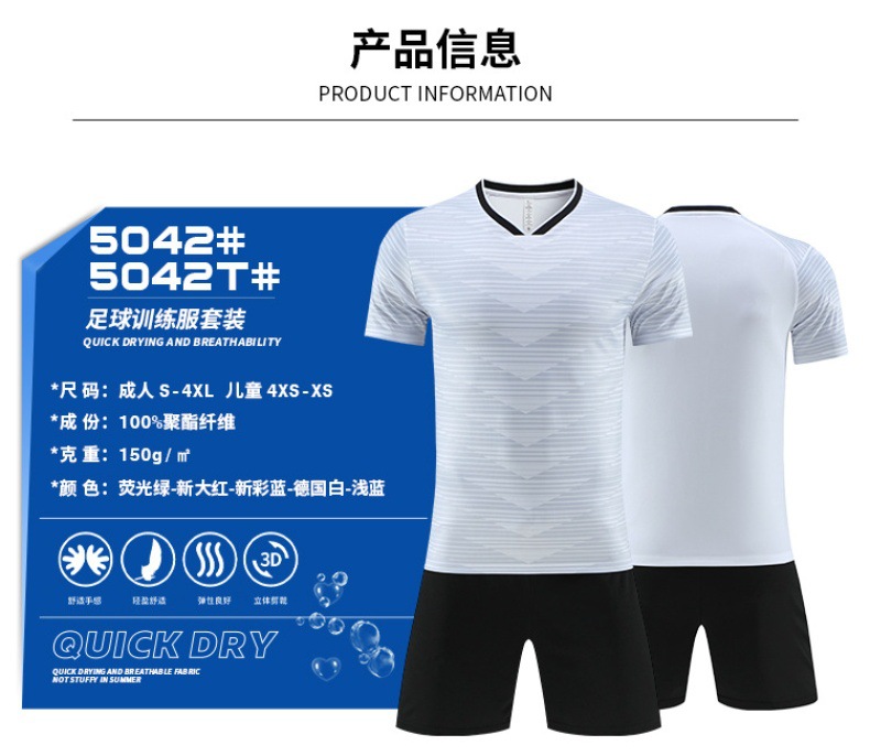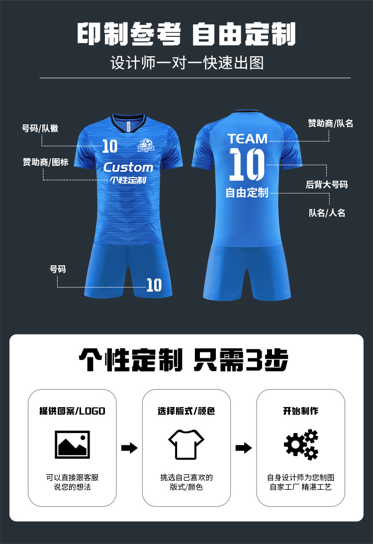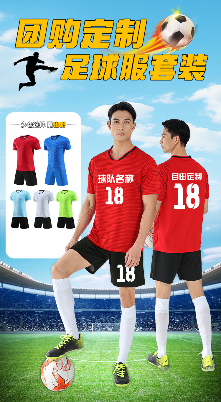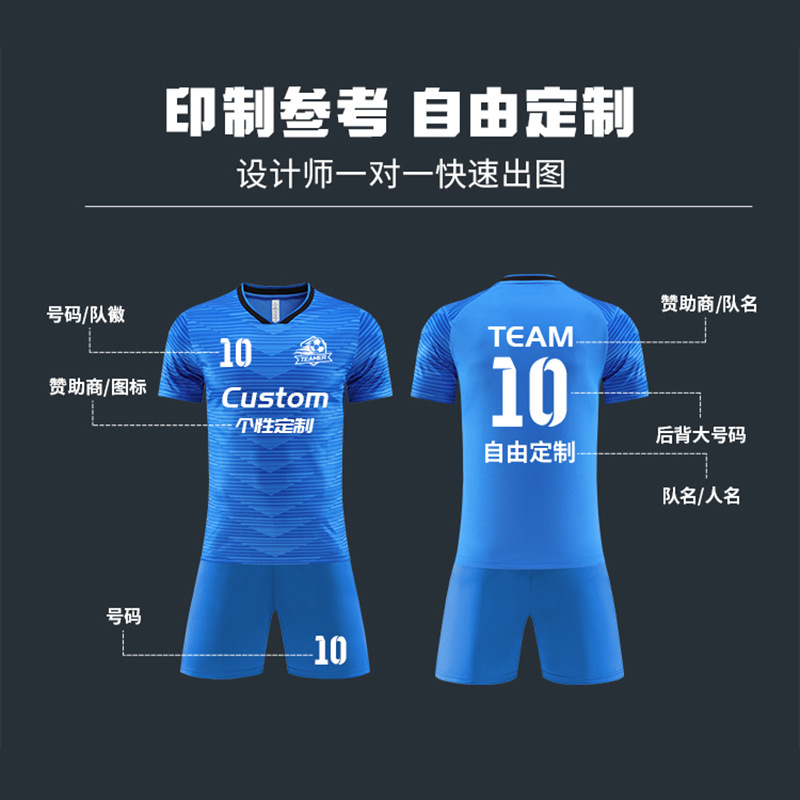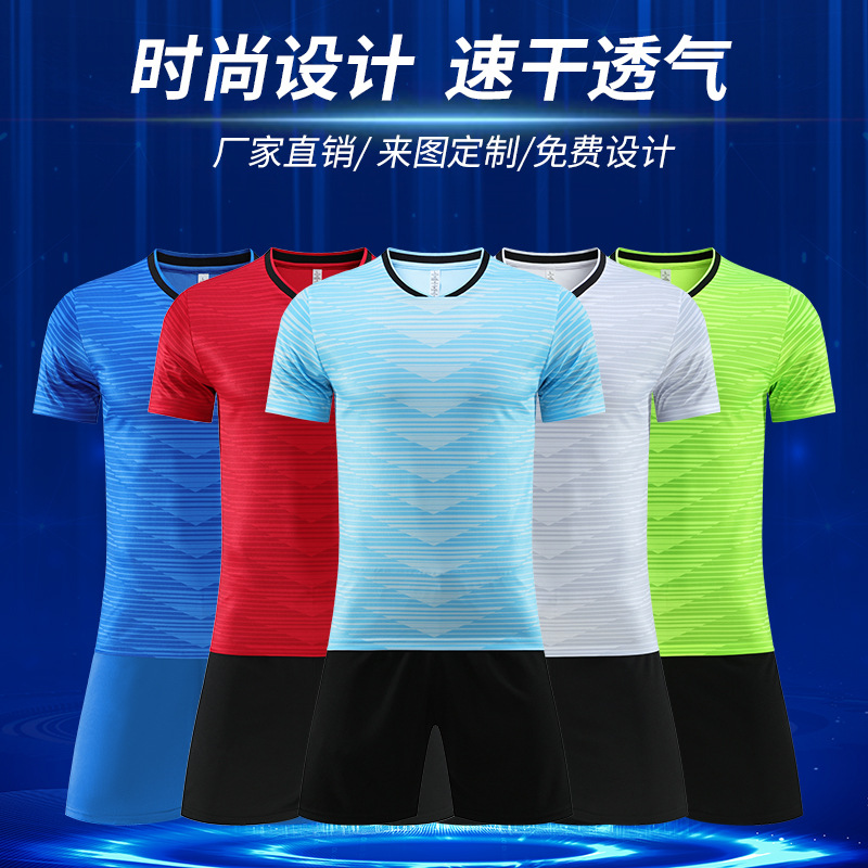 跨境足球服套装时尚球服印制男比赛队服成人运动短袖训练球衣批发