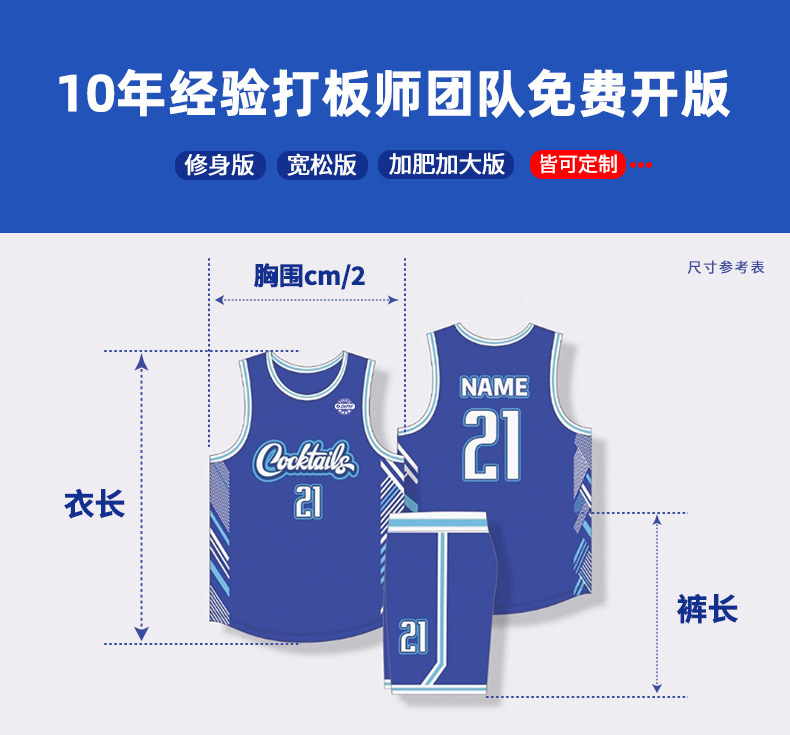 高端数码印CUBA美式篮球服套装男女团队定制球衣儿童训练球服队服
