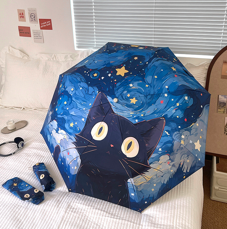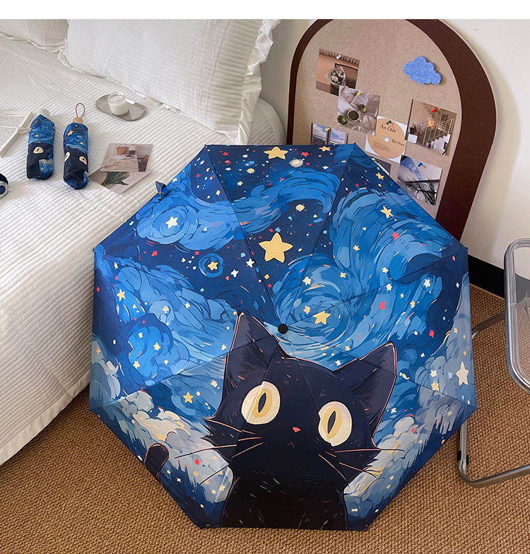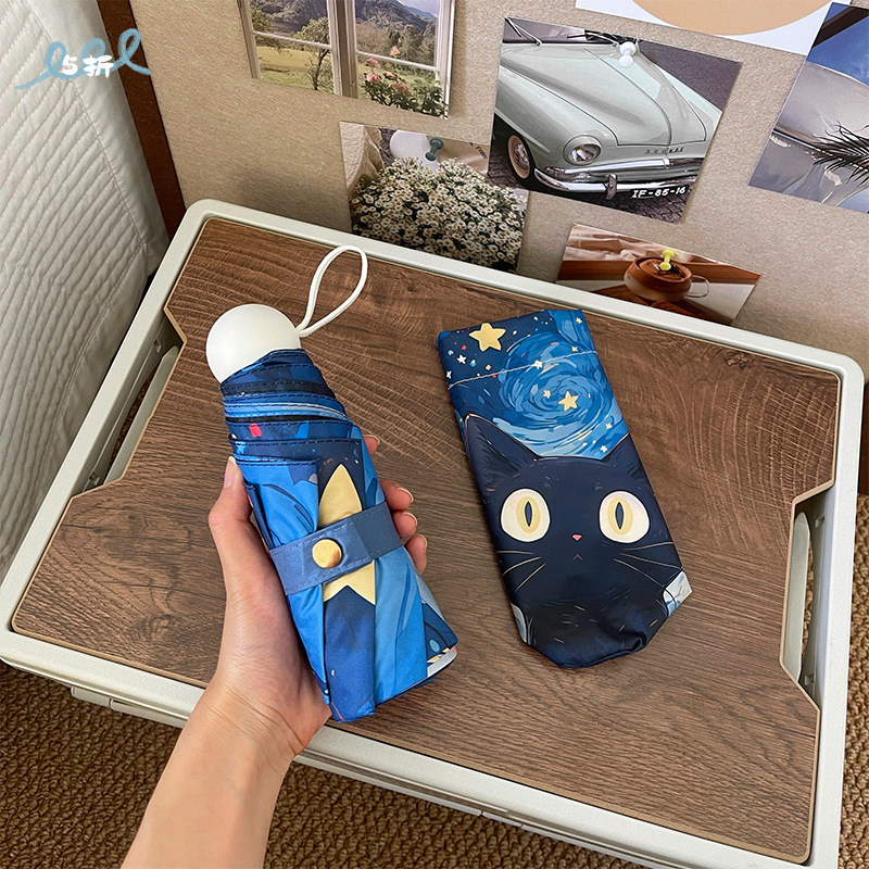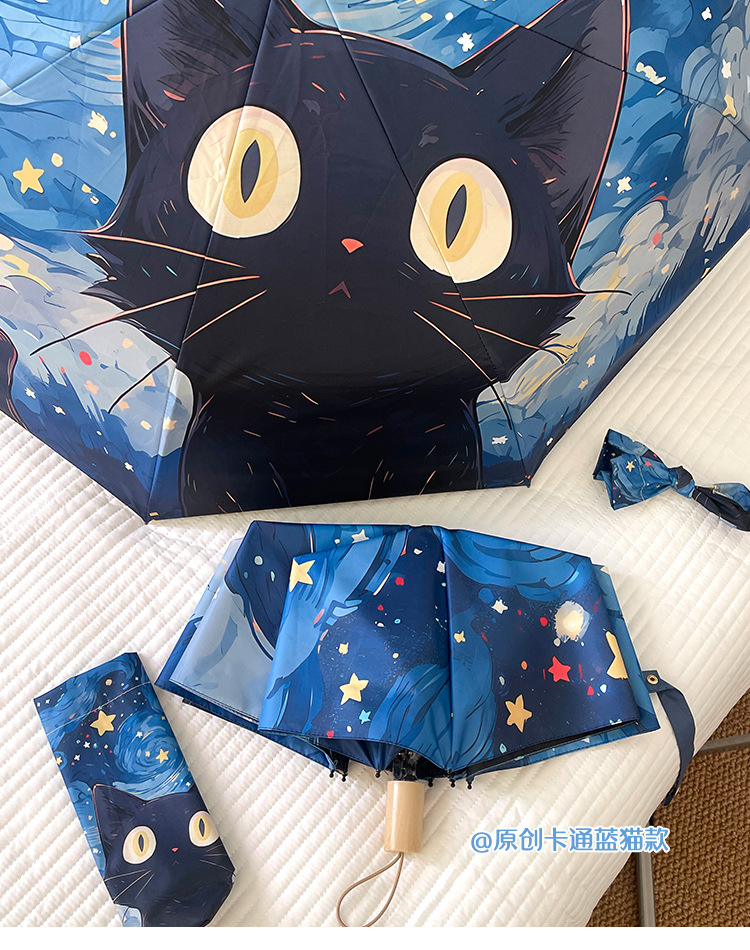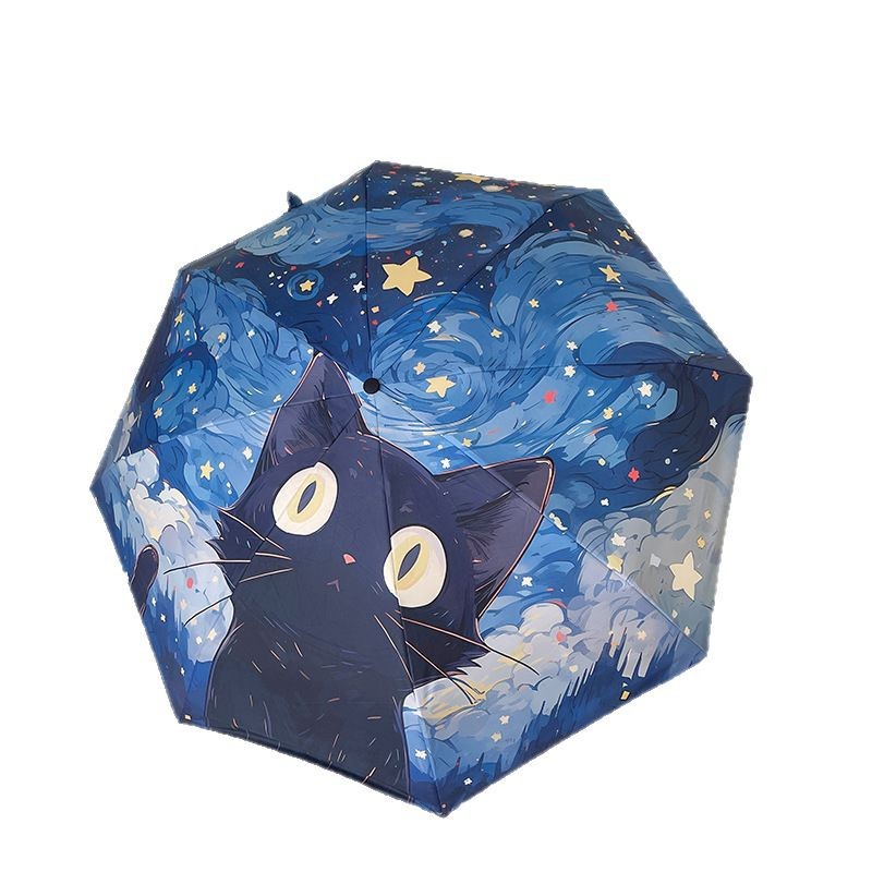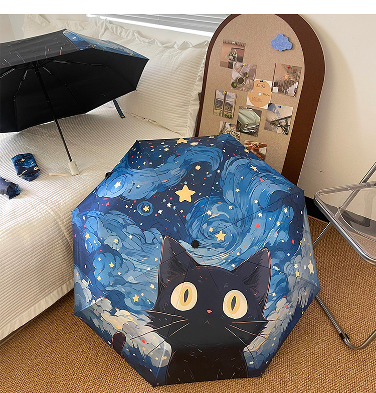 梵高系可爱猫咪卡通折叠伞防晒防紫外线女晴雨两用遮阳伞便携雨伞