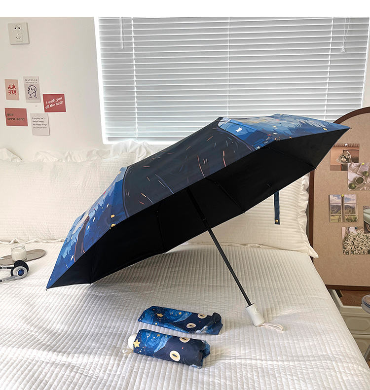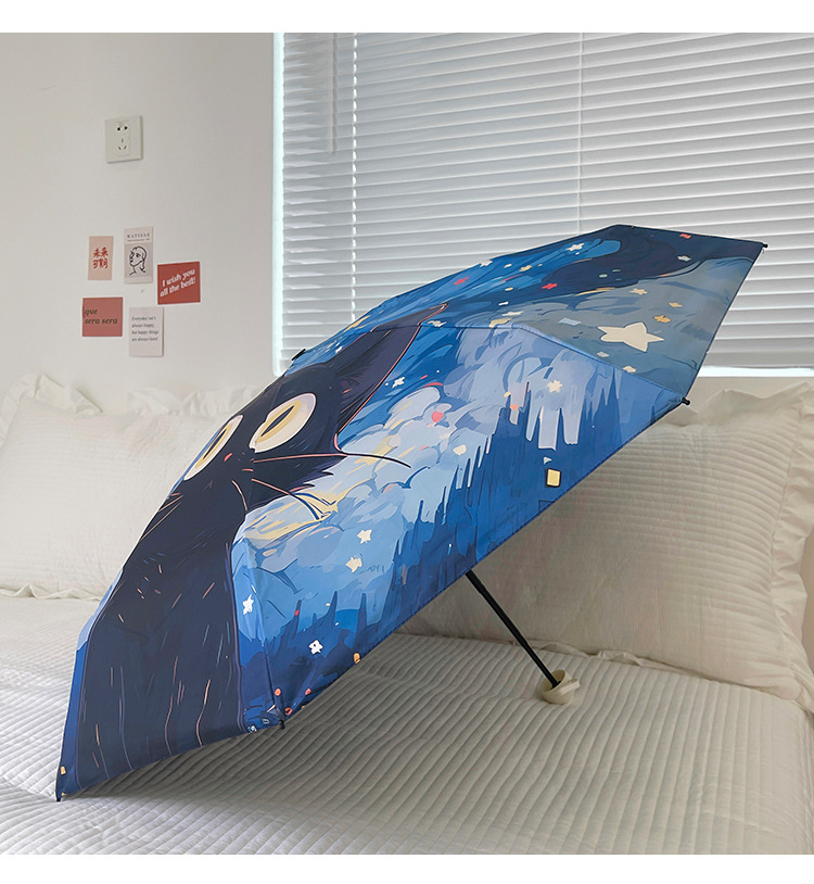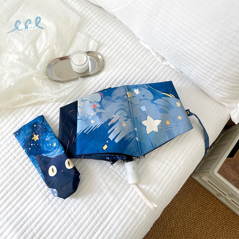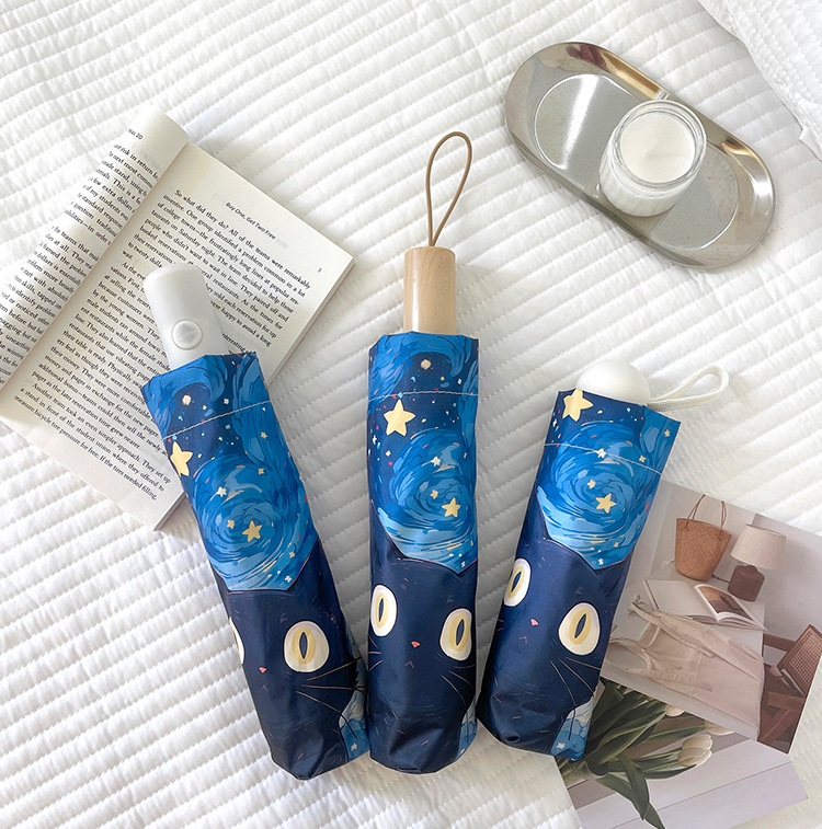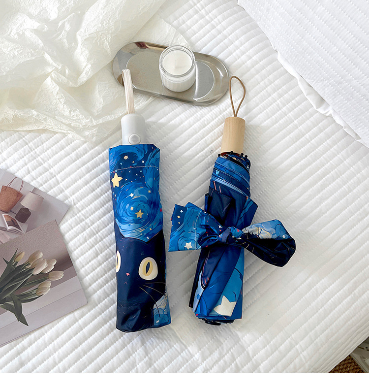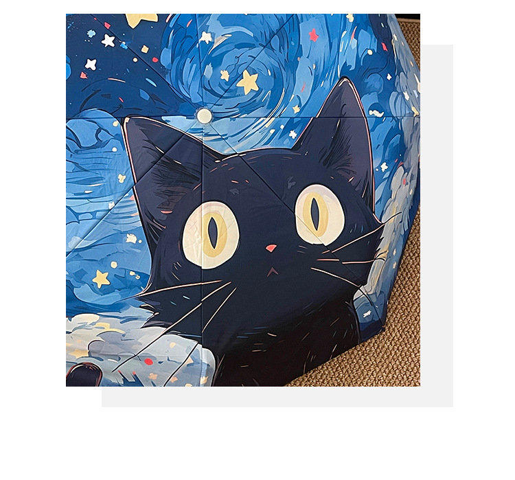 梵高系可爱猫咪卡通折叠伞防晒防紫外线女晴雨两用遮阳伞便携雨伞