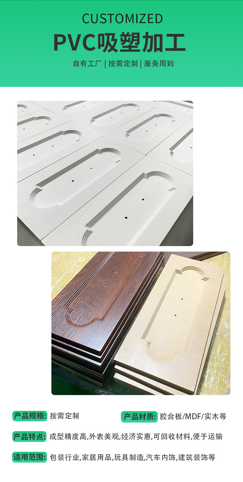 PVC吸塑板材MDF板覆膜板加工桌面板柜体切割加家吸塑板柜门工厂