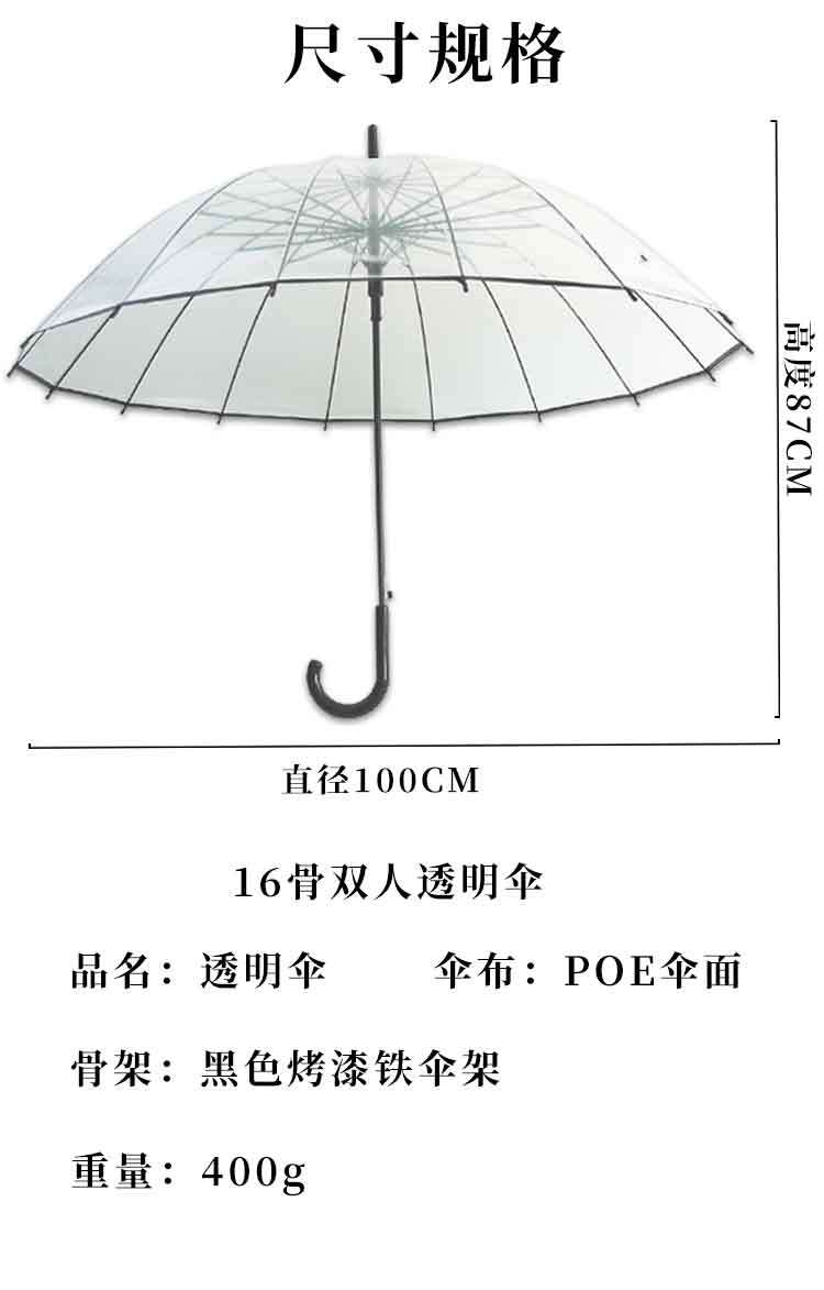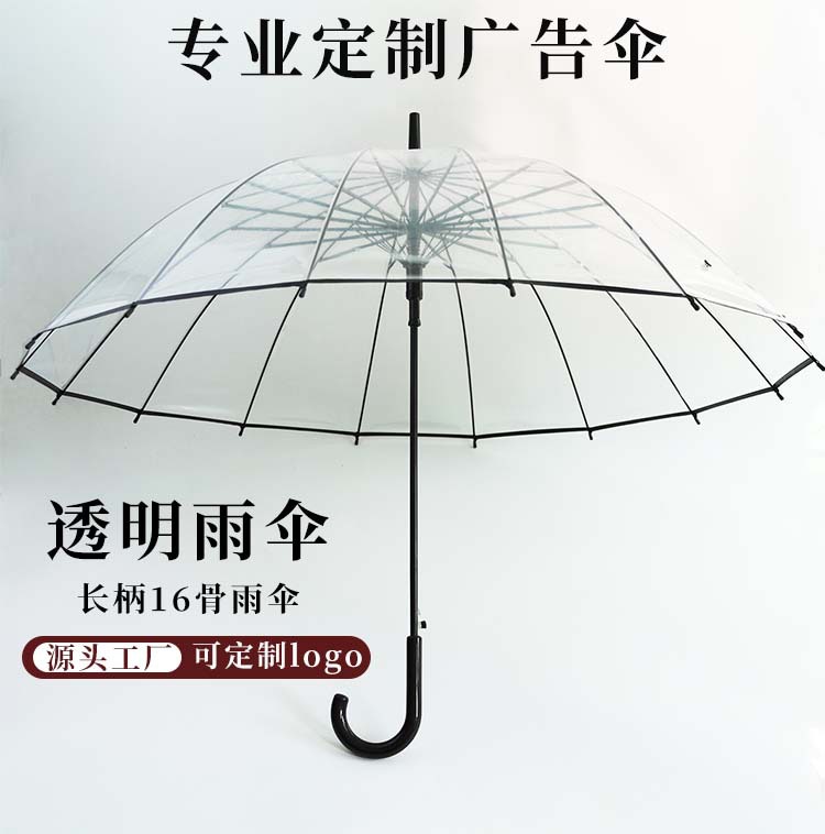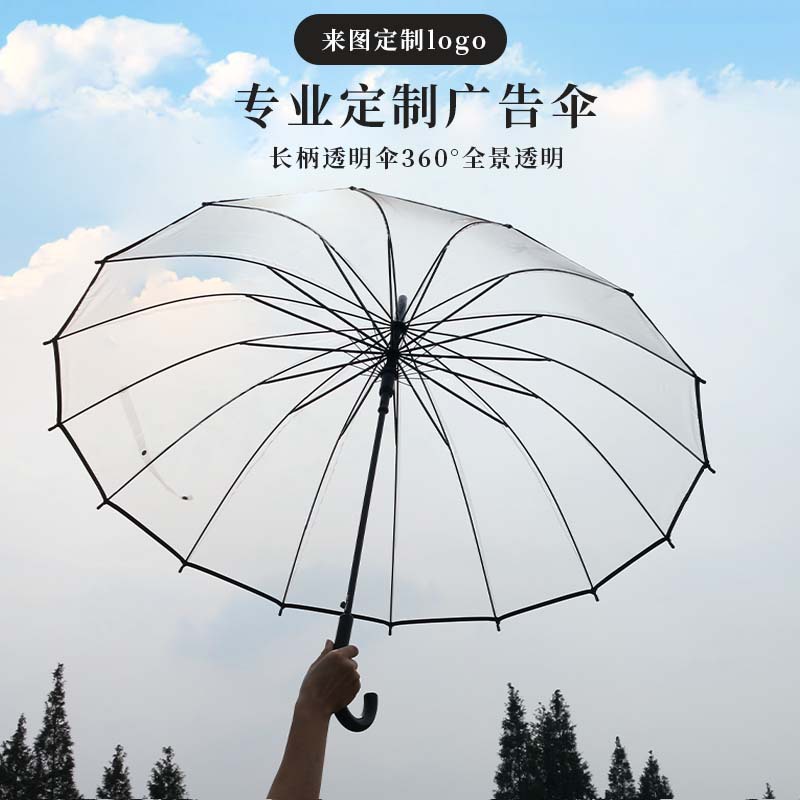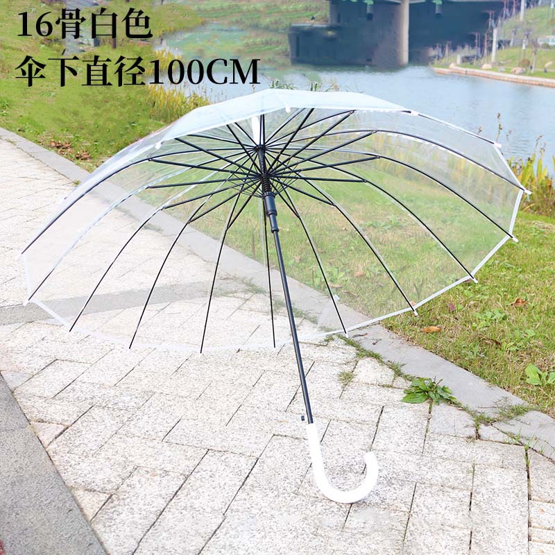 16骨透明伞小清新大号长柄直杆伞情侣伞拍照女印制LOGO广告伞批发