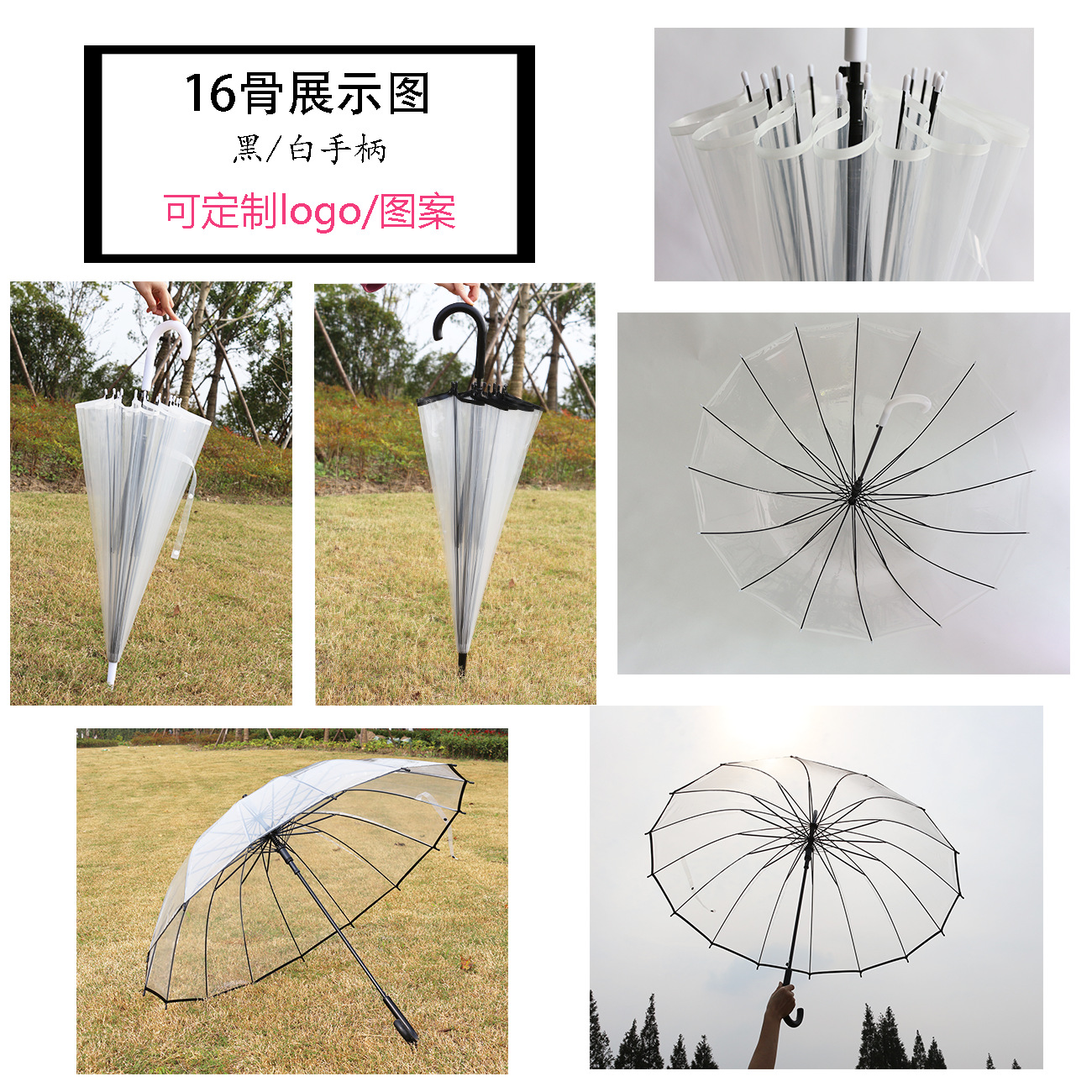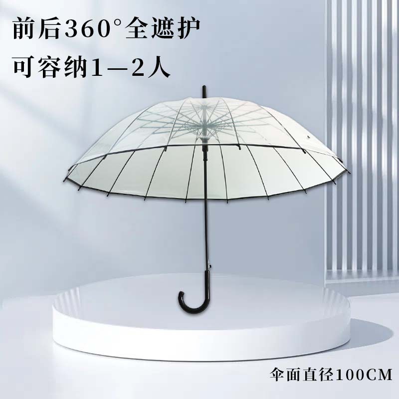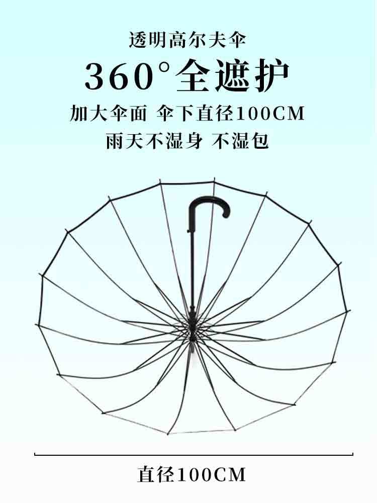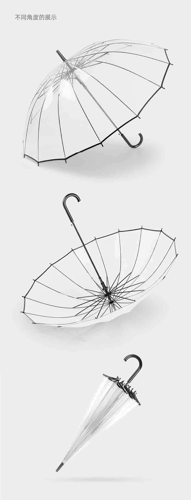 16骨透明伞小清新大号长柄直杆伞情侣伞拍照女印制LOGO广告伞批发