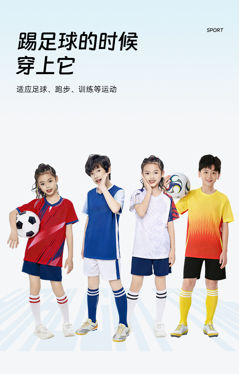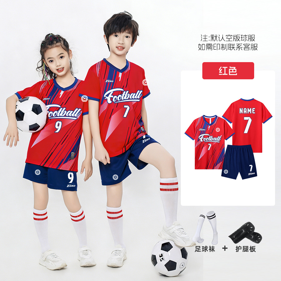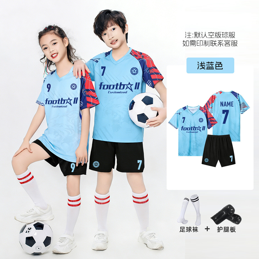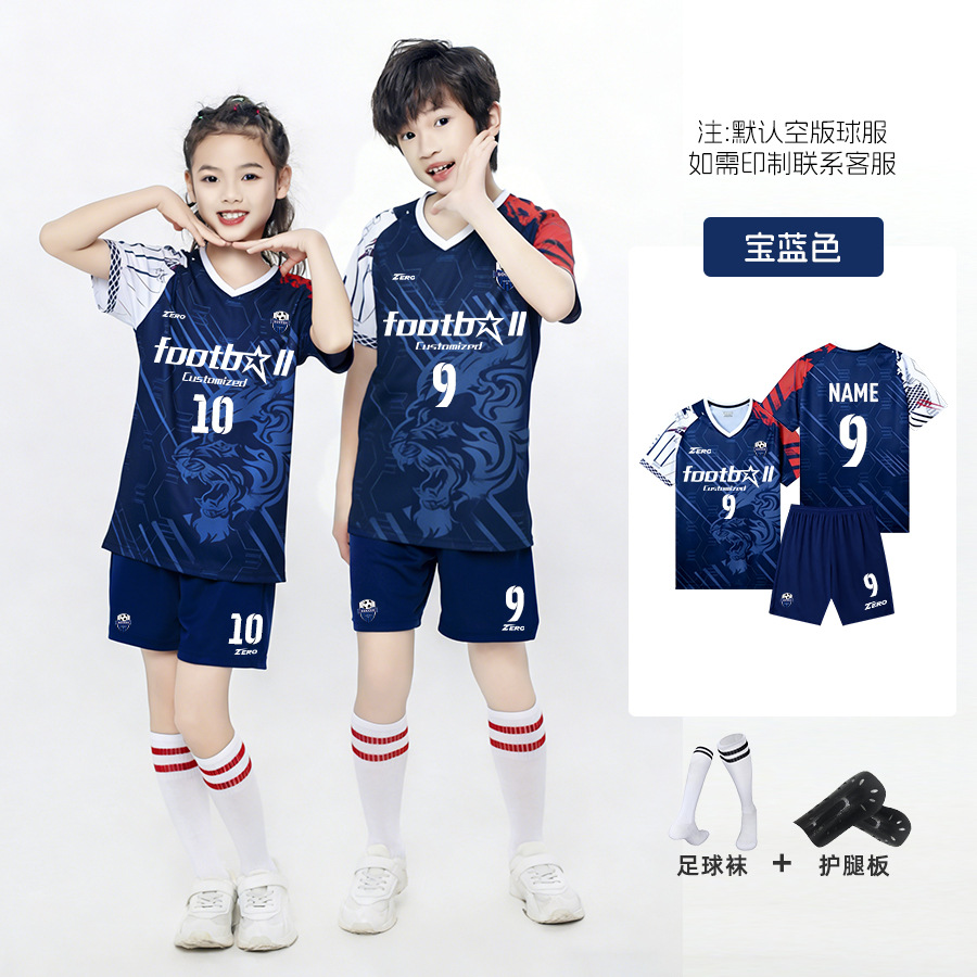 新款儿童足球服短袖套装小学生足球比赛服团购定制服户外运动服