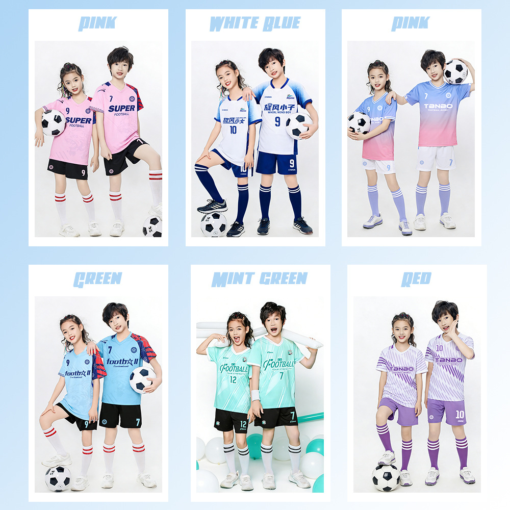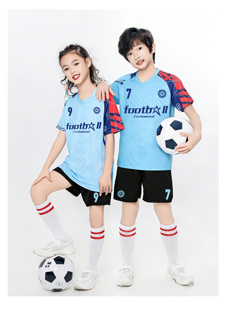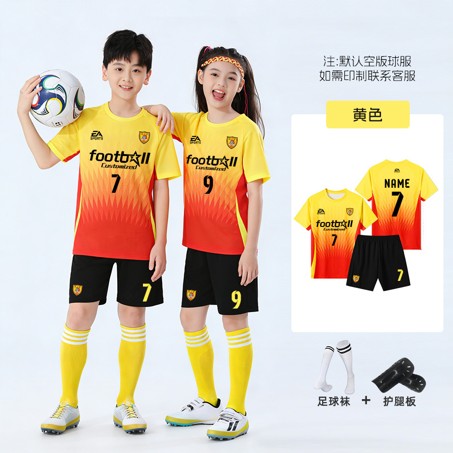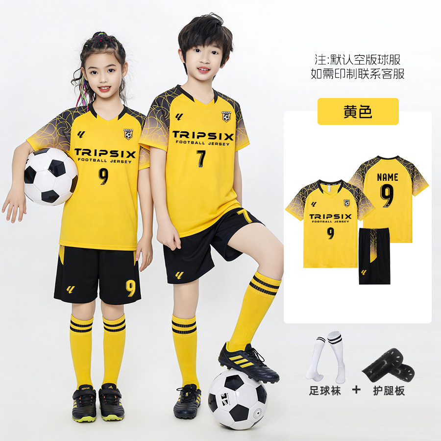 新款儿童足球服短袖套装小学生足球比赛服团购定制服户外运动服
