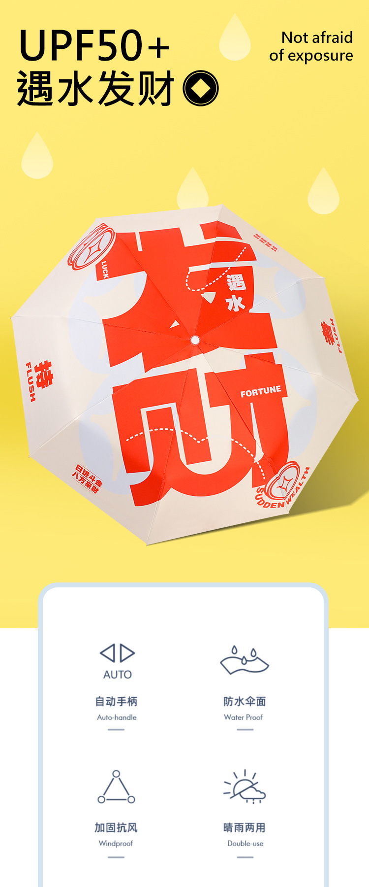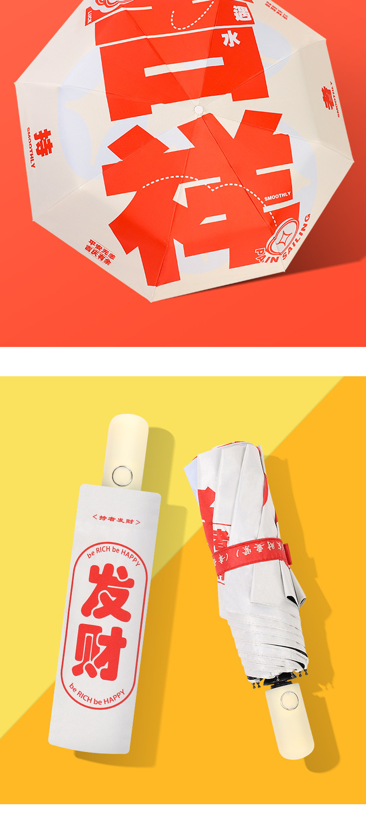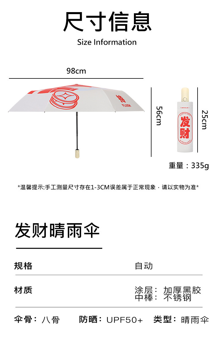 全自动黑胶太阳伞结婚送礼喜庆发财伞防紫外线好运吉祥晴雨两用伞