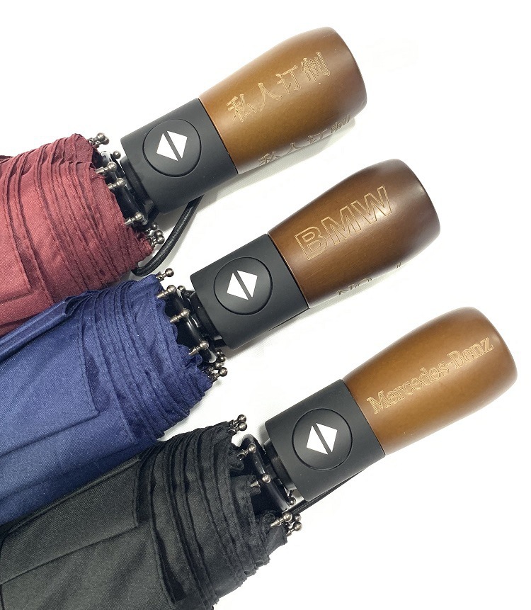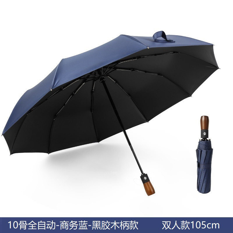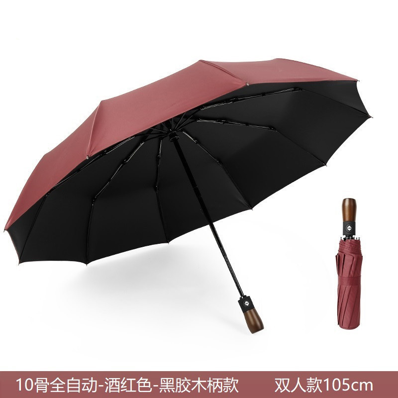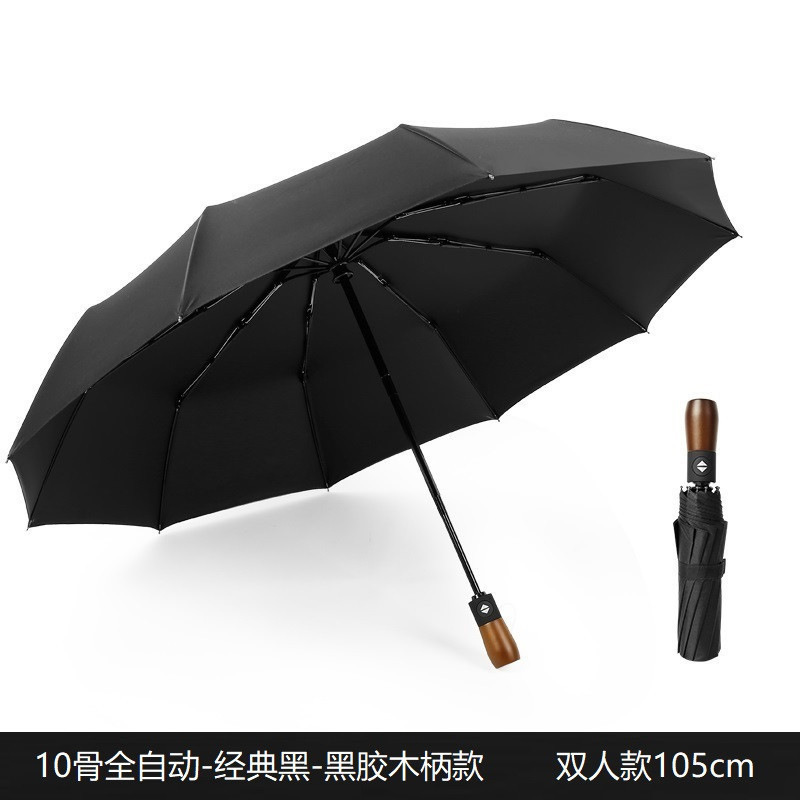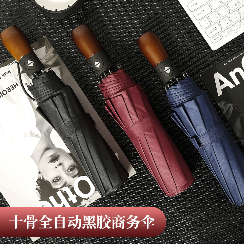 商务男十骨黑胶防风雨伞三折全自动晴雨伞折叠实木伞柄复古广告伞