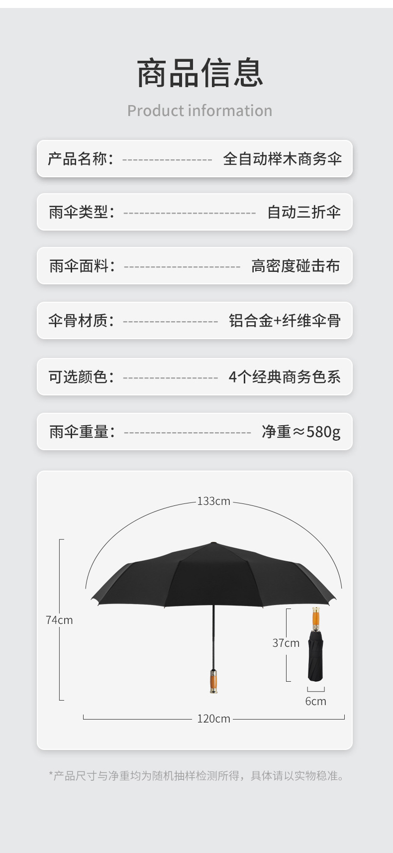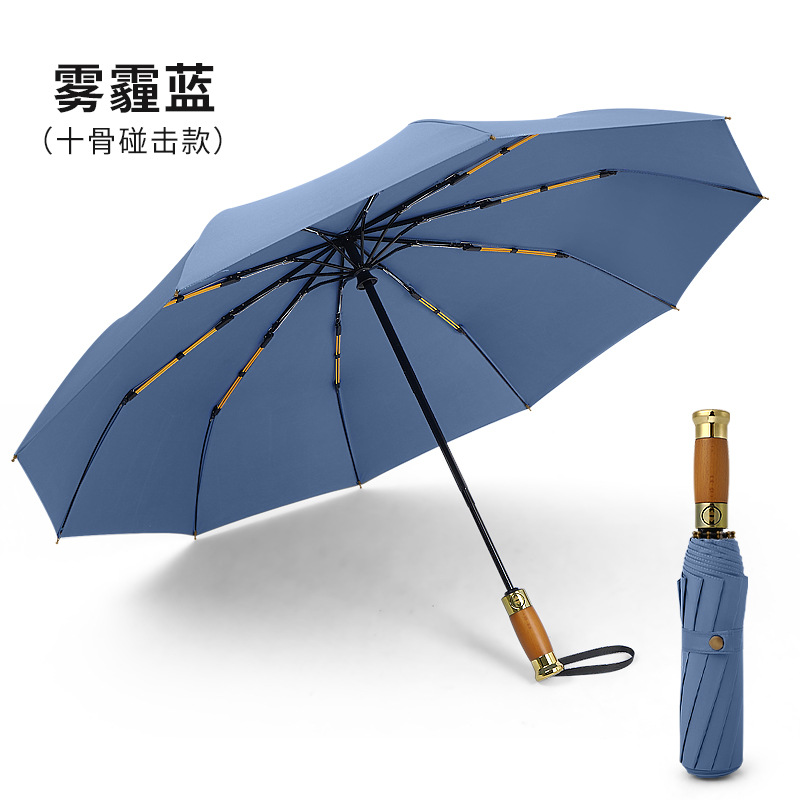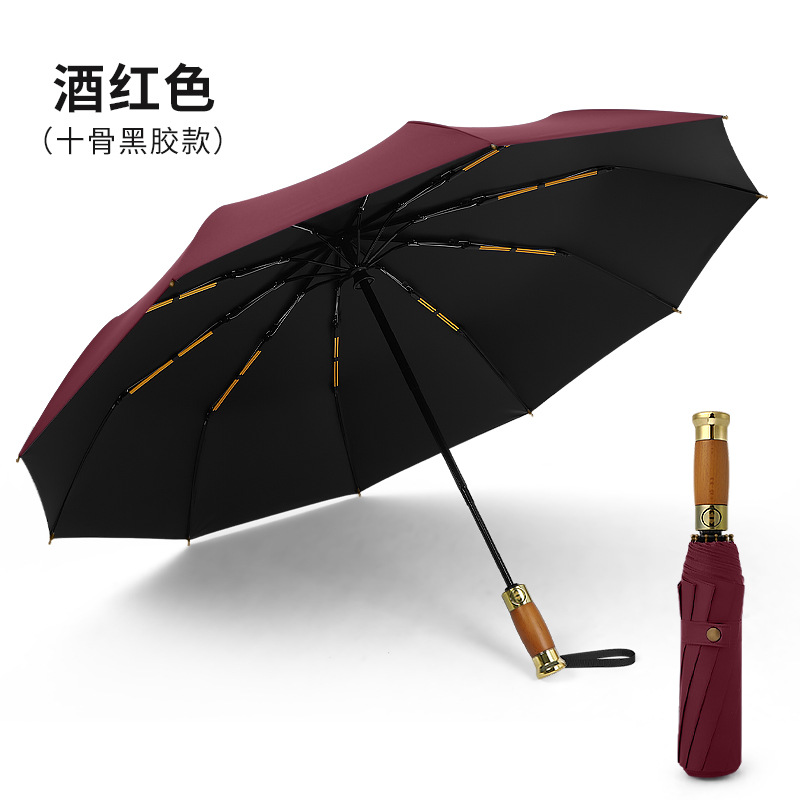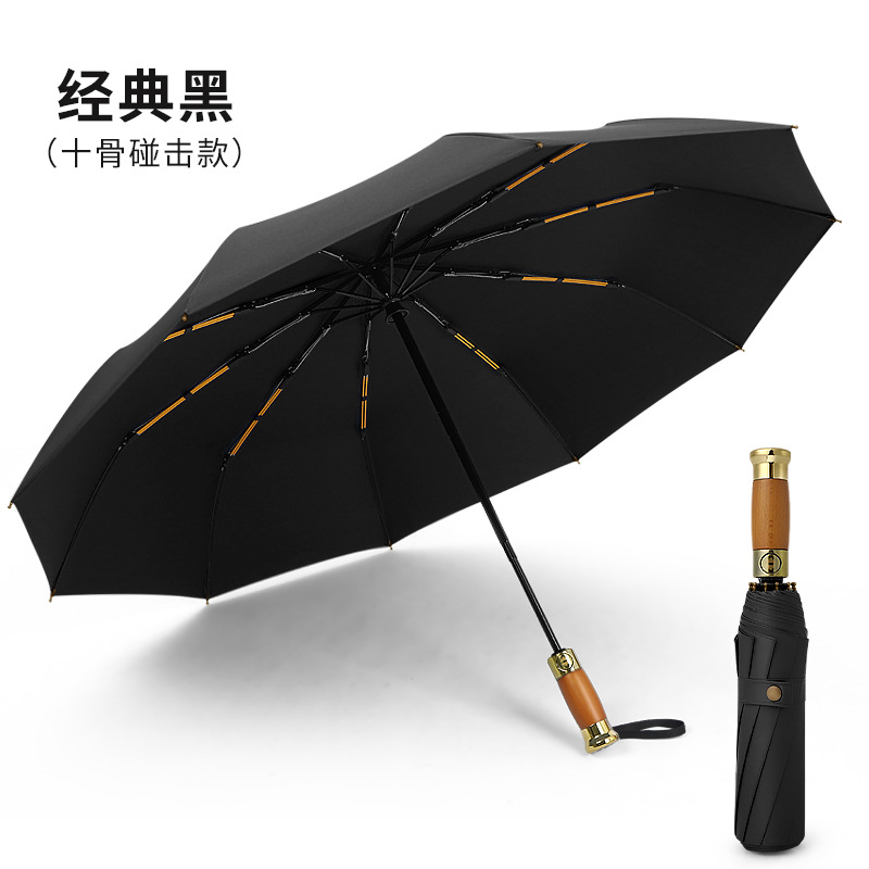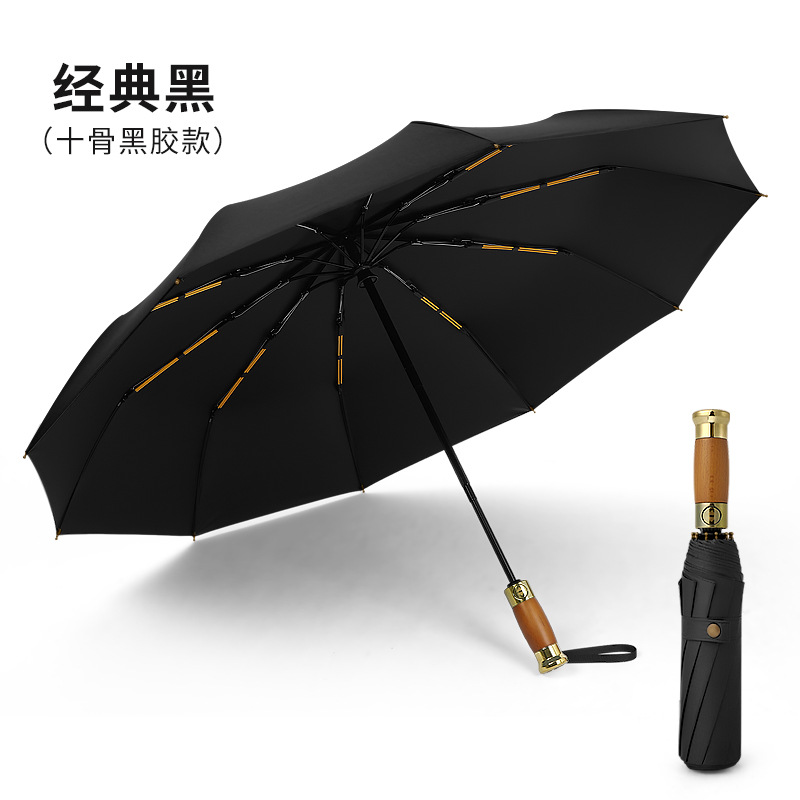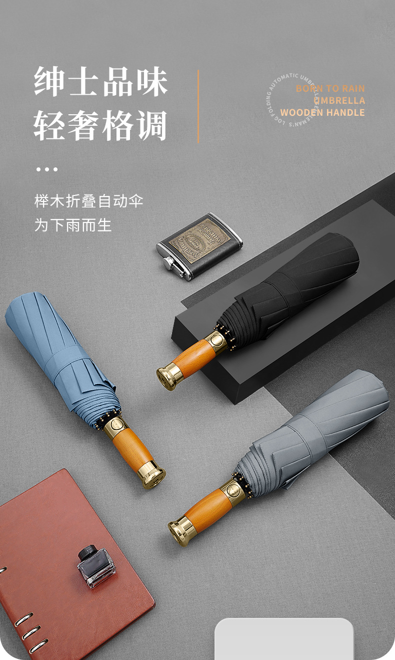 全自动轻奢木柄太阳伞雨伞超大男士商务三折叠广告礼品雨伞可印字
