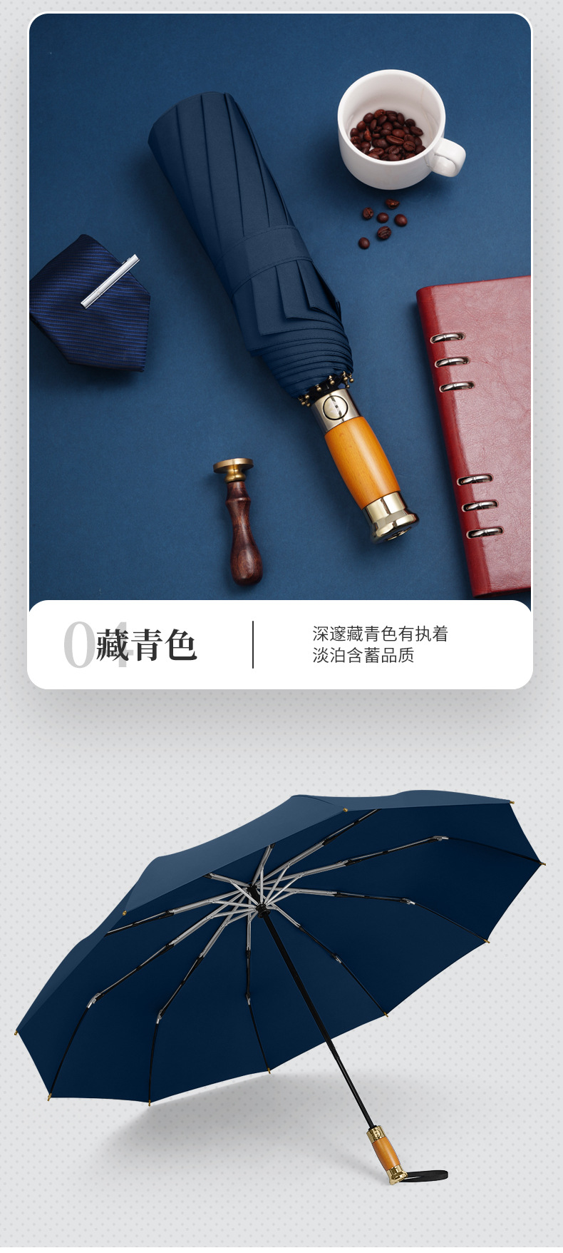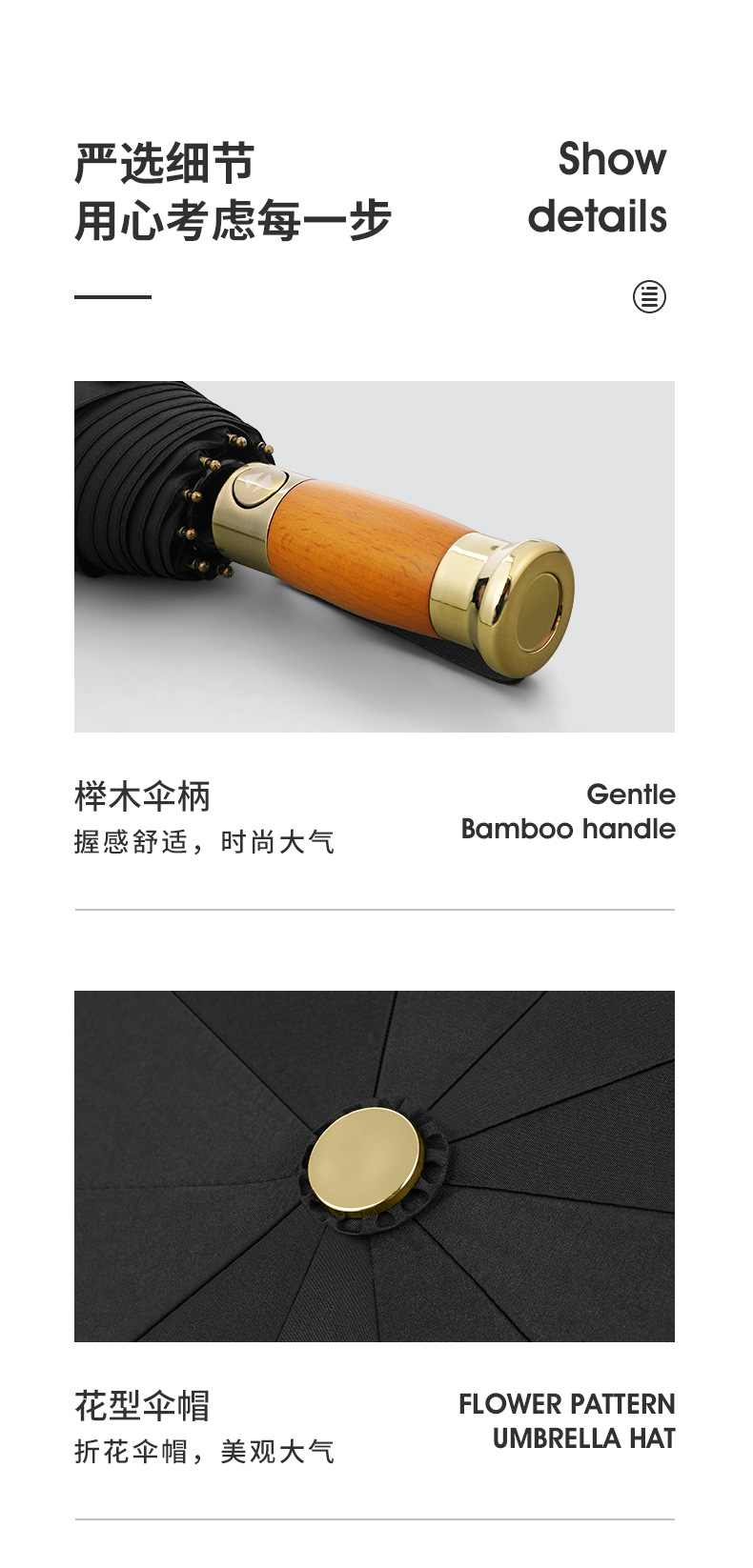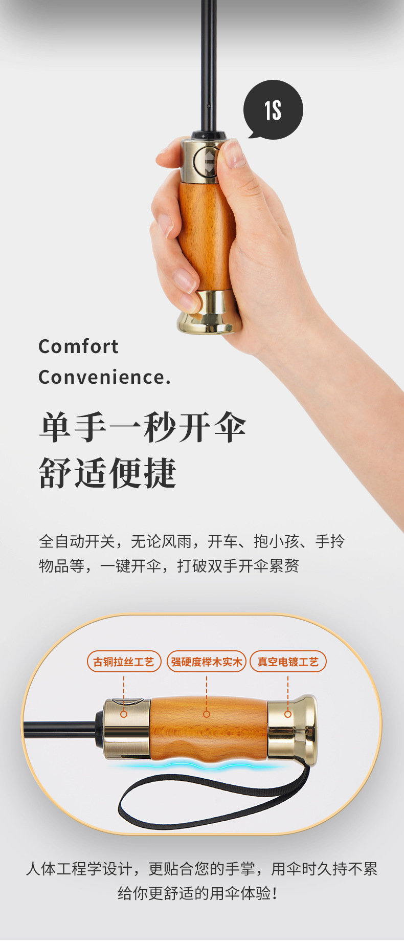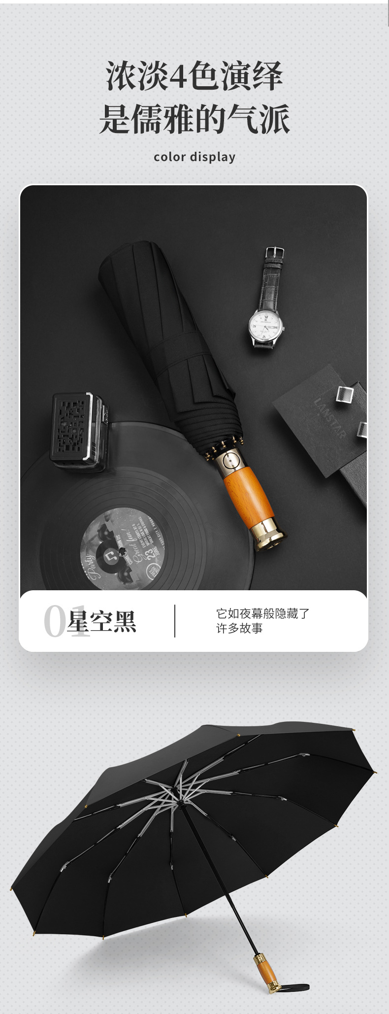 全自动轻奢木柄太阳伞雨伞超大男士商务三折叠广告礼品雨伞可印字