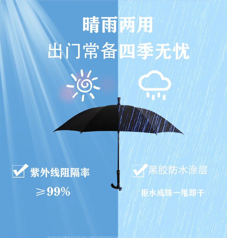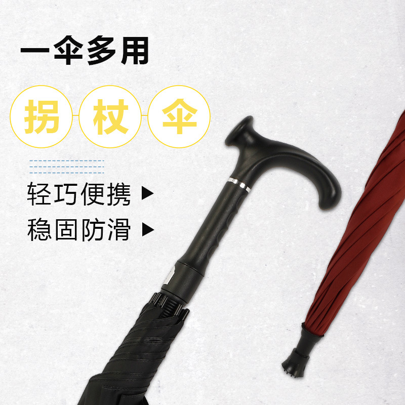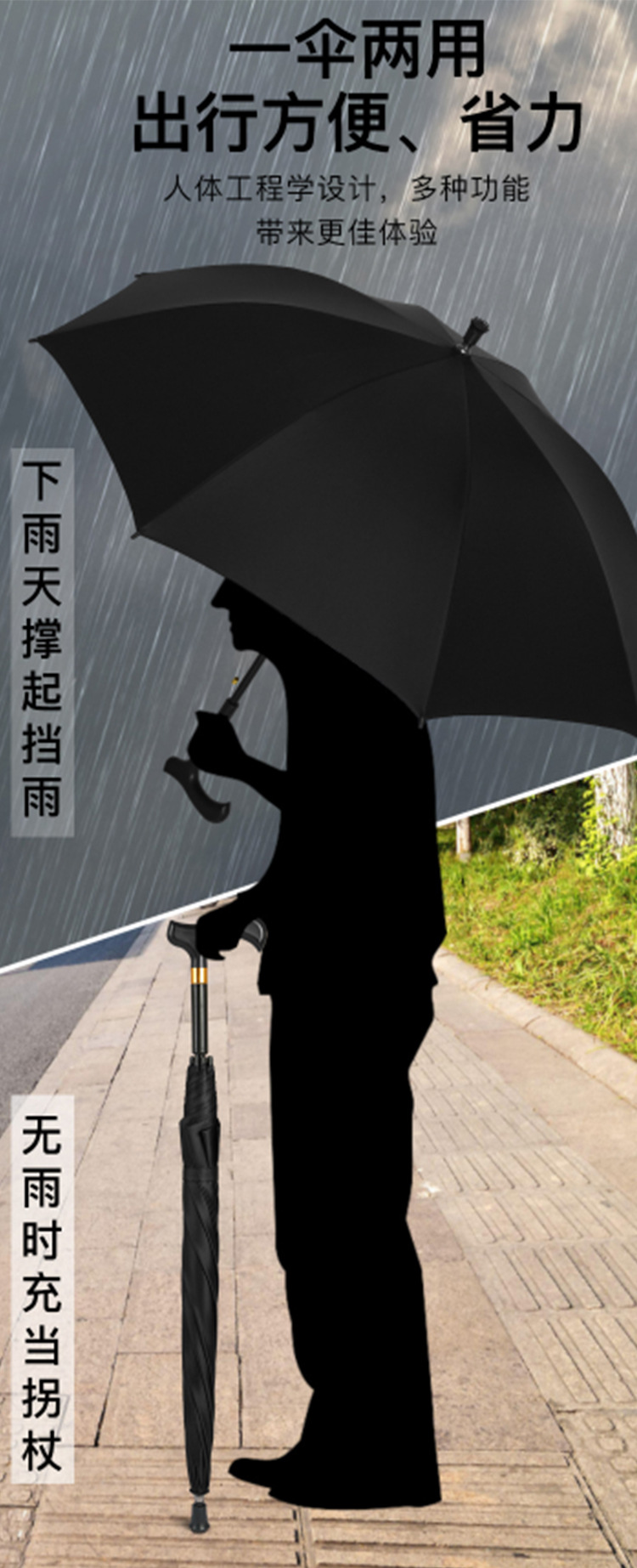 23寸8骨拐杖伞自动雨伞防滑可定logo制老年人伞印图案广告伞