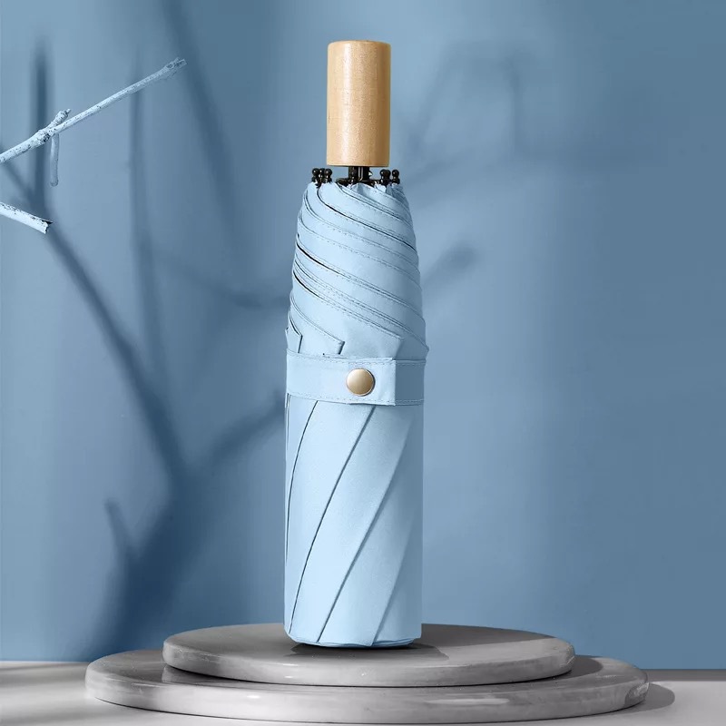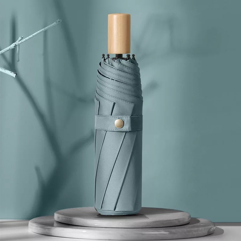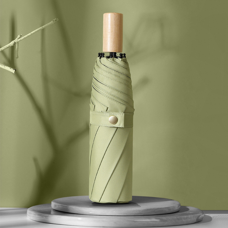 简约素色防风实木手柄复古男女三折雨伞小清新批发logo雨伞广告伞
