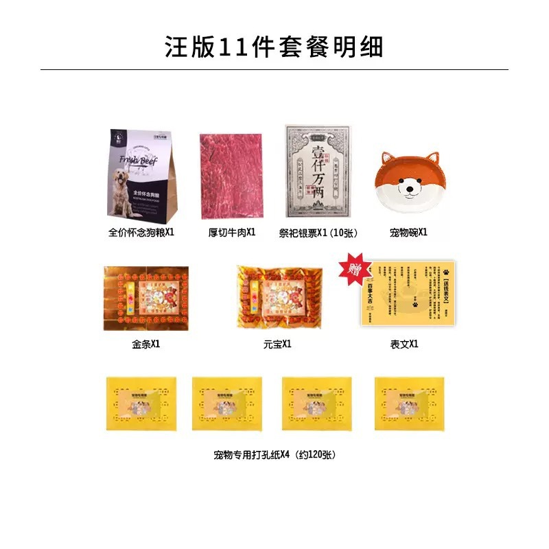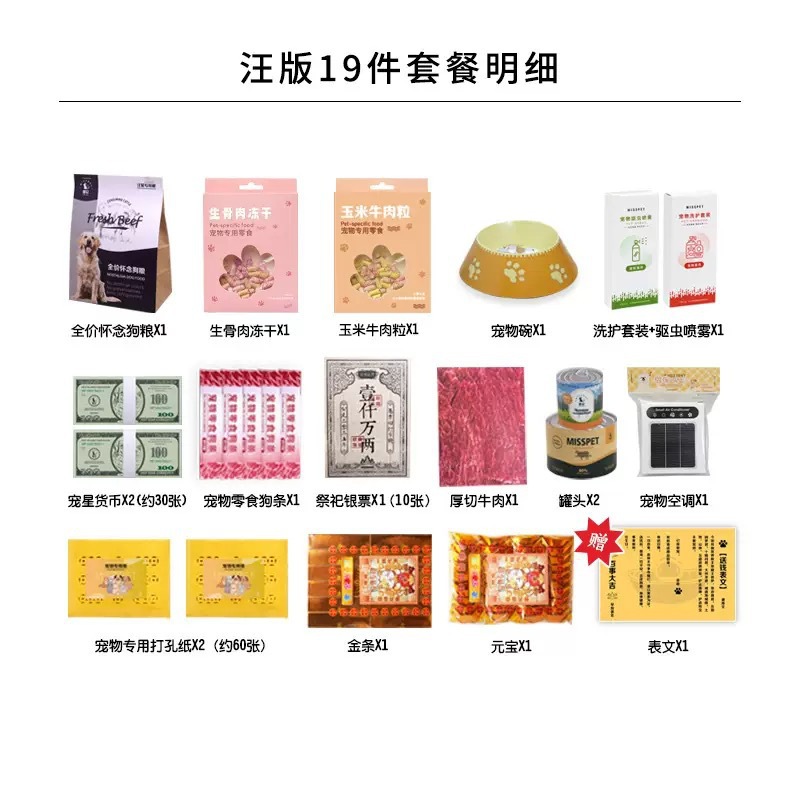 宠物纪念猫咪狗狗离世烧纸纸扎套餐仿真零食罐头元宝宠物烧纸
