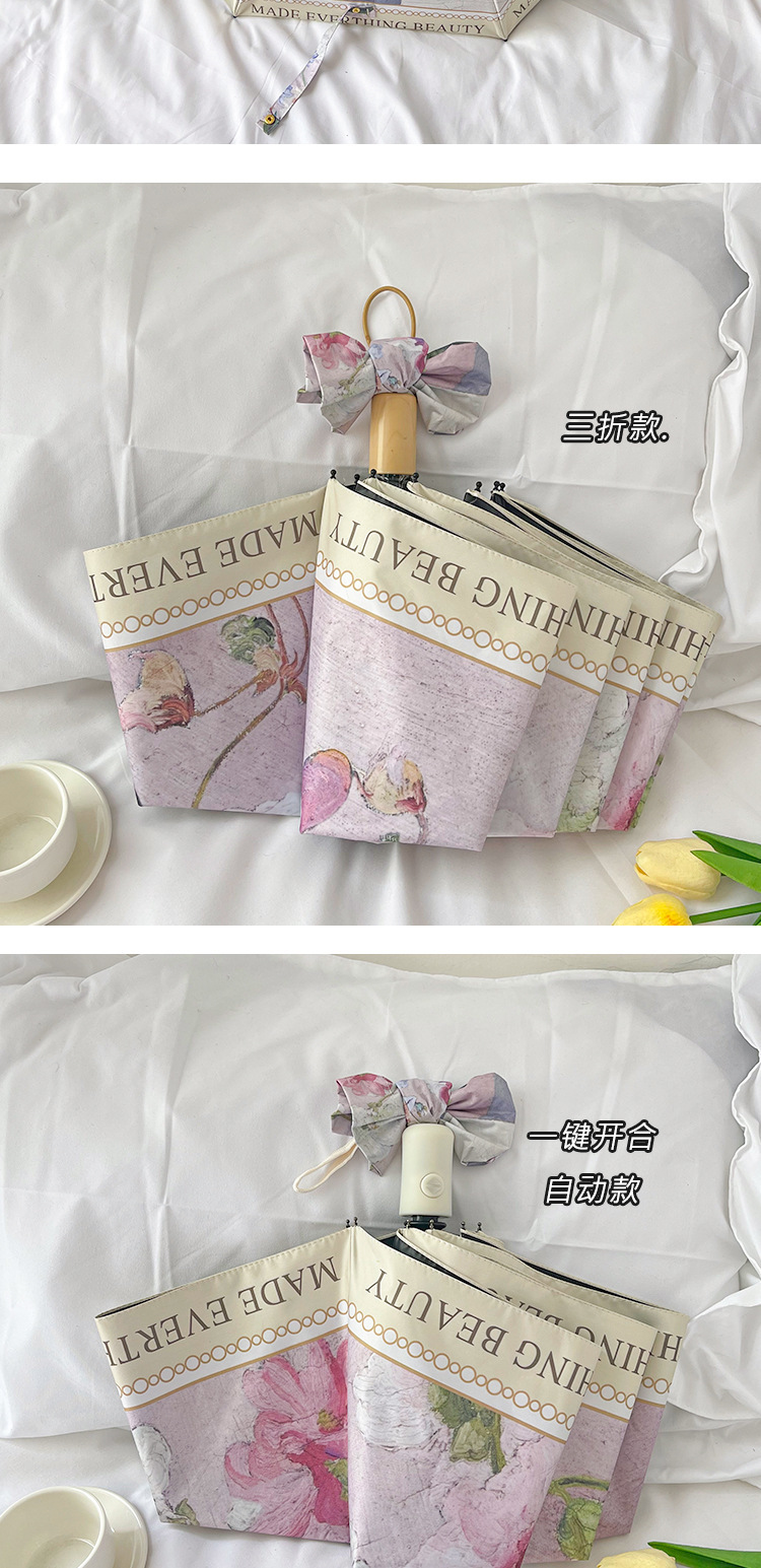 全遮光跨境太阳伞晴雨两用防晒防紫外线伞油画雨伞复古系女自动