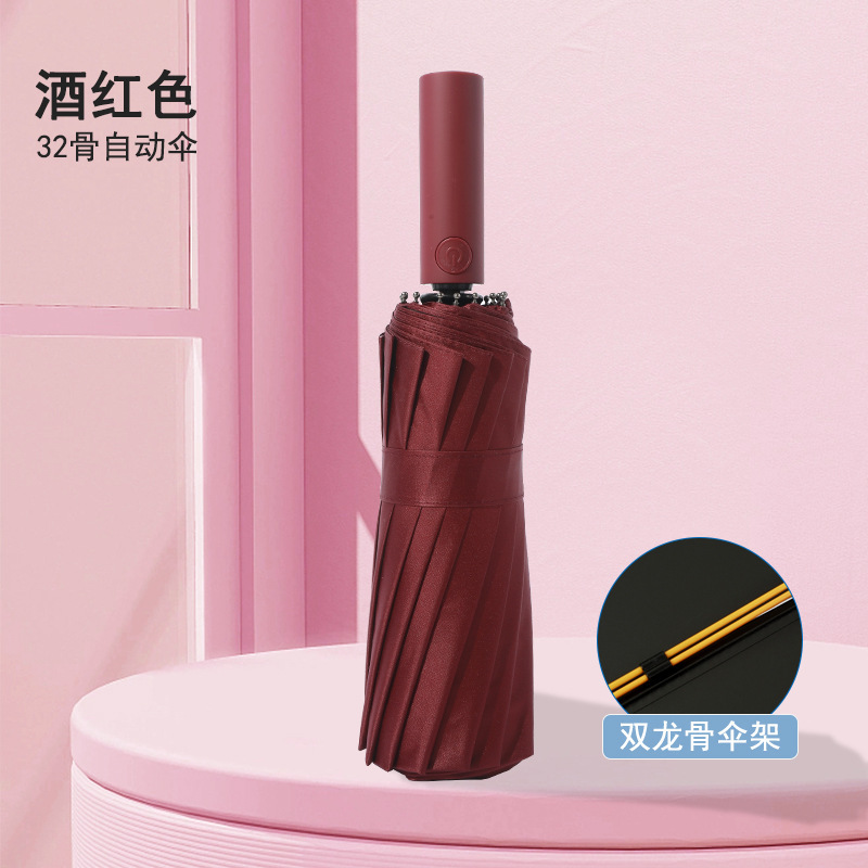 全自动雨伞16骨晴雨两用三折黑胶防紫外线双骨加固抗风女士遮阳伞
