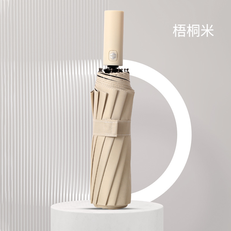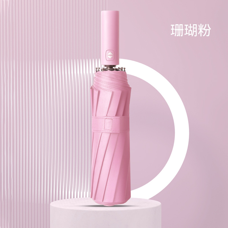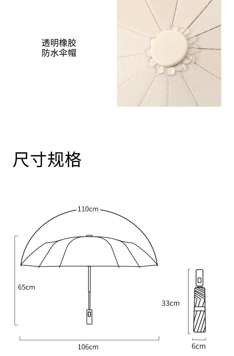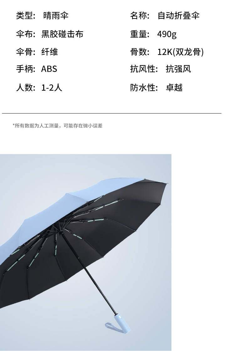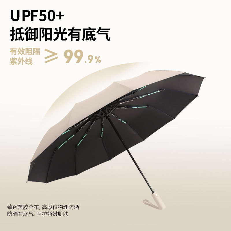 全自动晴雨伞24骨双龙骨自然光加厚黑胶防晒防紫外线三折伞upf50+