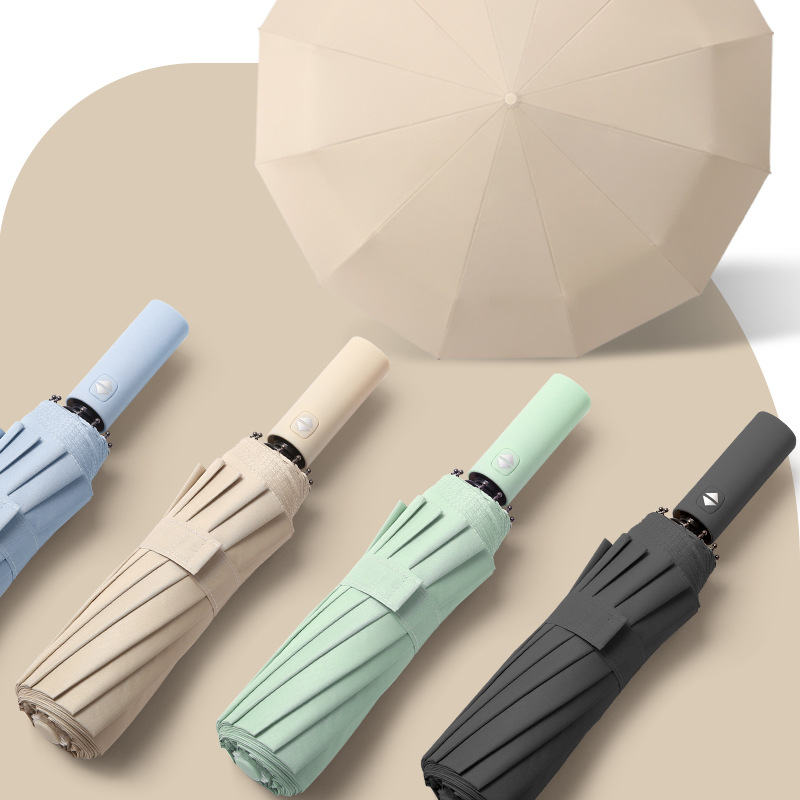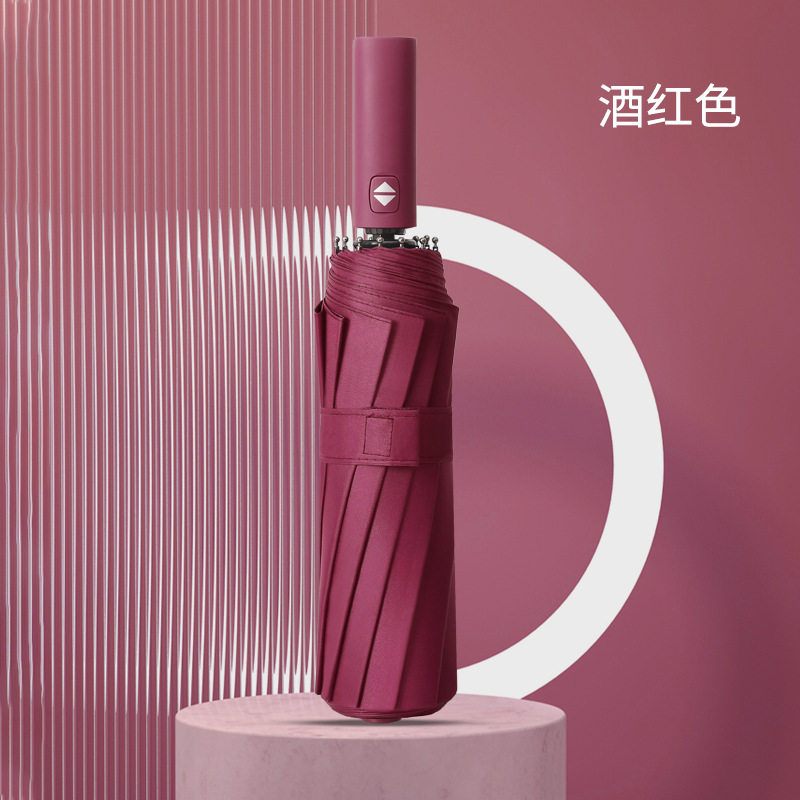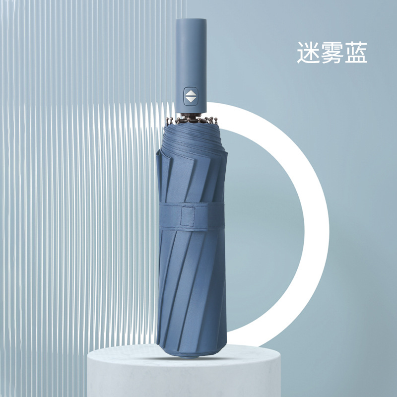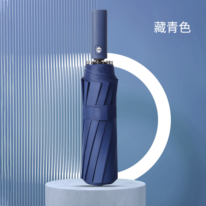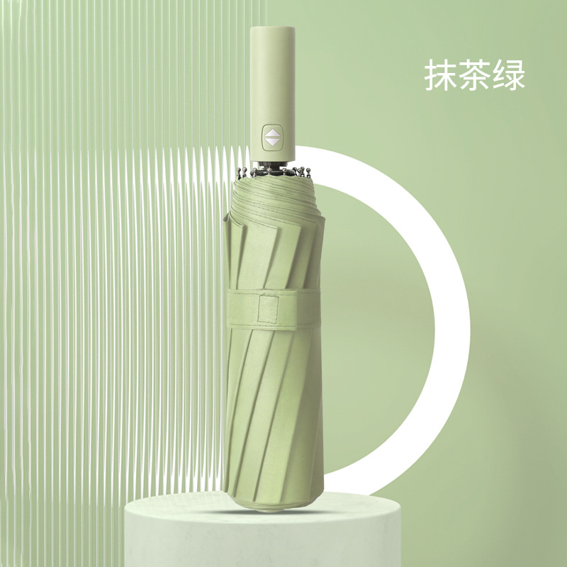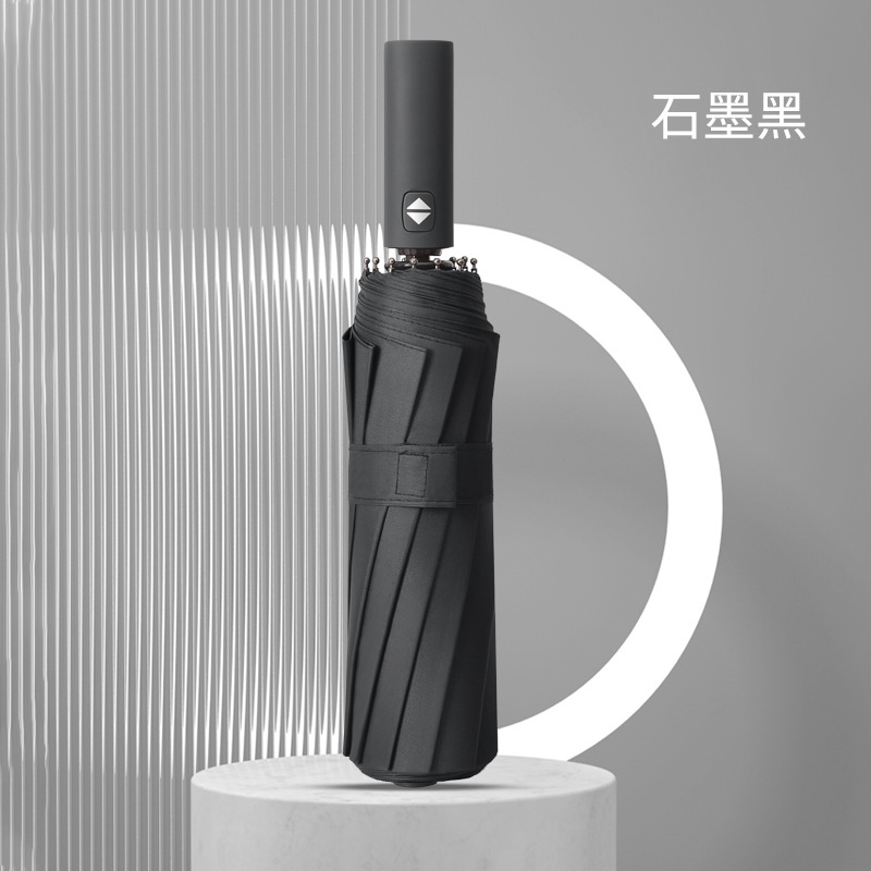 全自动晴雨伞24骨双龙骨自然光加厚黑胶防晒防紫外线三折伞upf50+