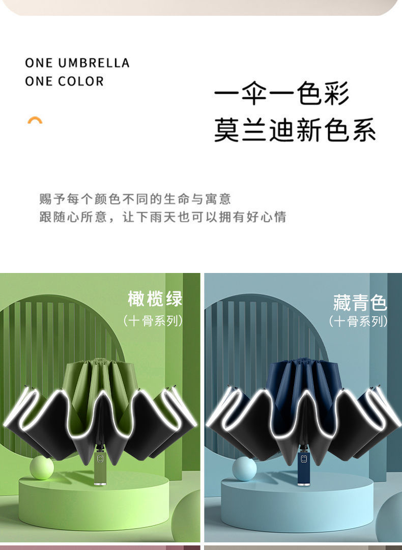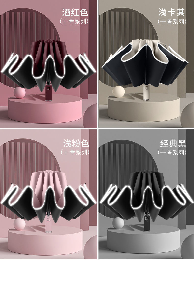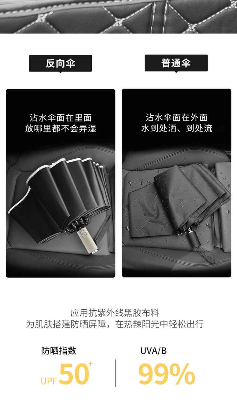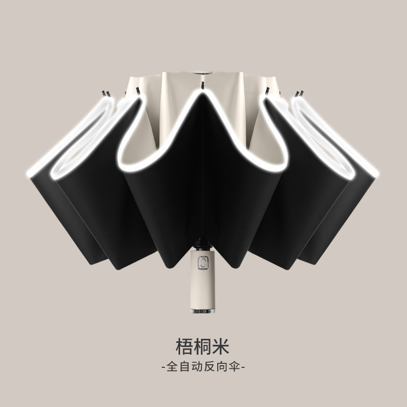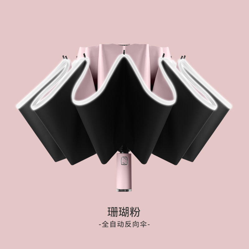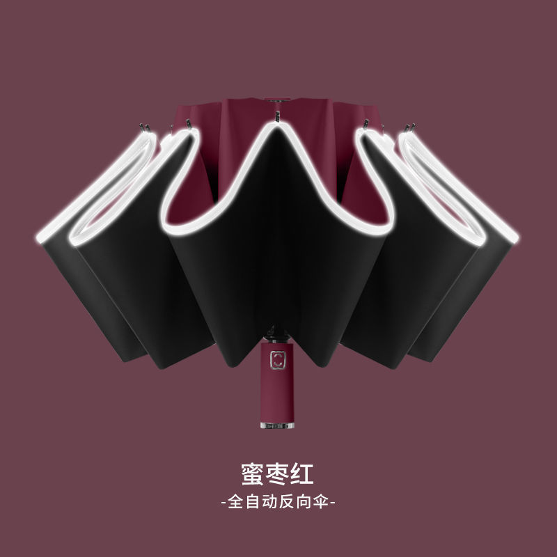 2026新款车载自动伞10骨全自动反向雨伞包边反光条夜光商务三折