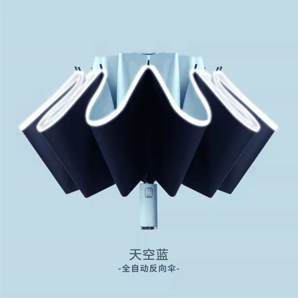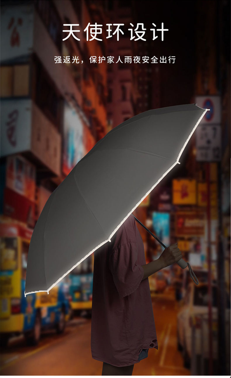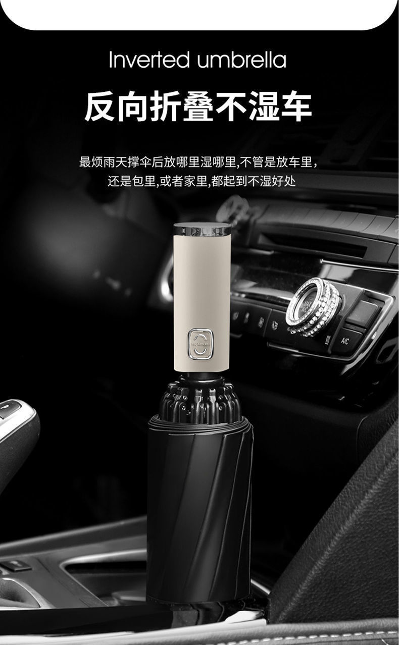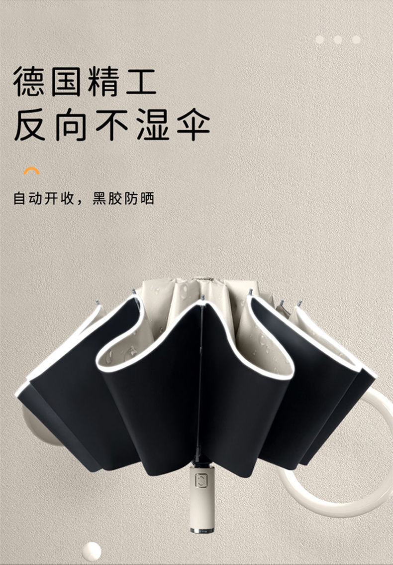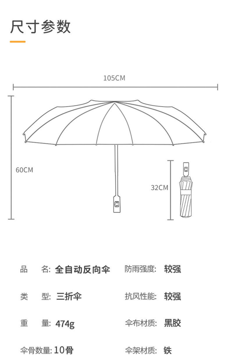 2026新款车载自动伞10骨全自动反向雨伞包边反光条夜光商务三折