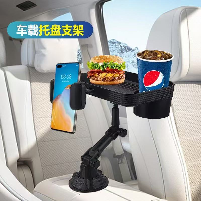 厂家直销 车载餐盘水杯架车载多功能手机支架杯托车载餐盘角度调