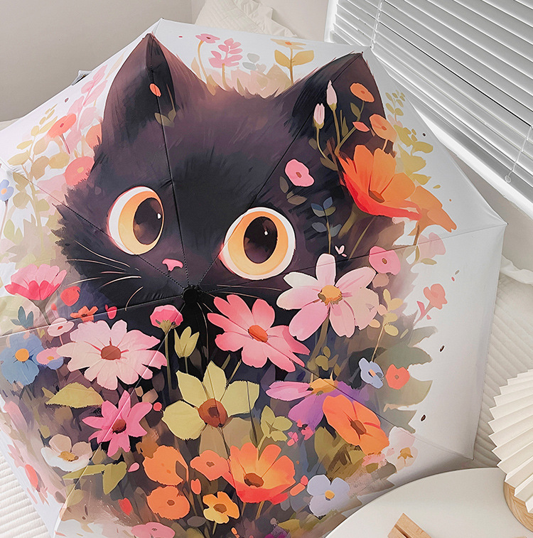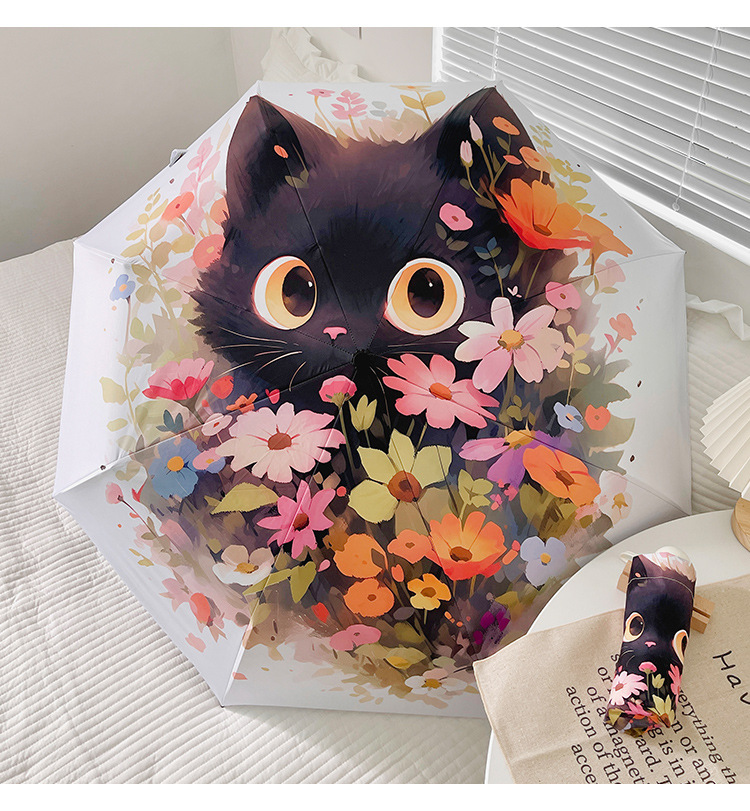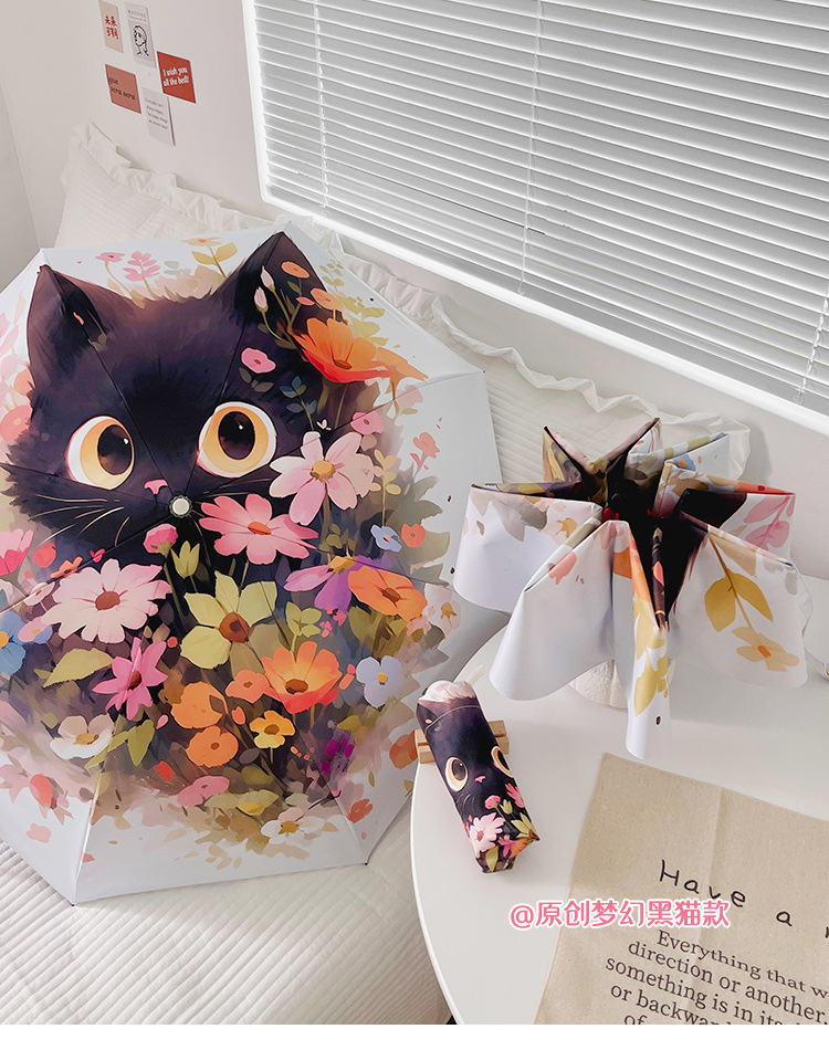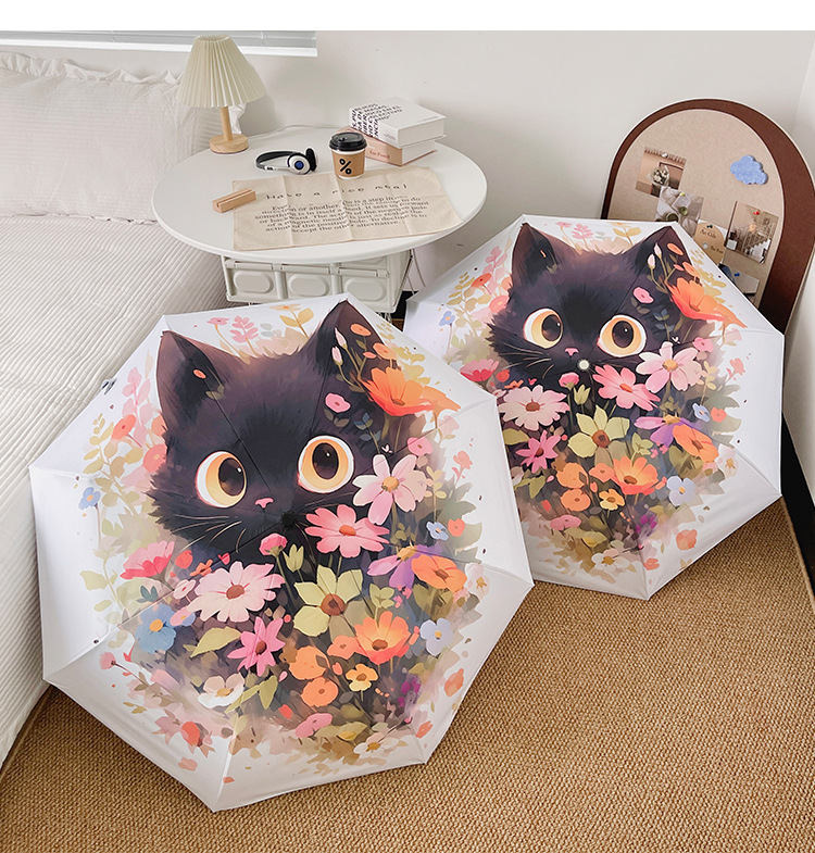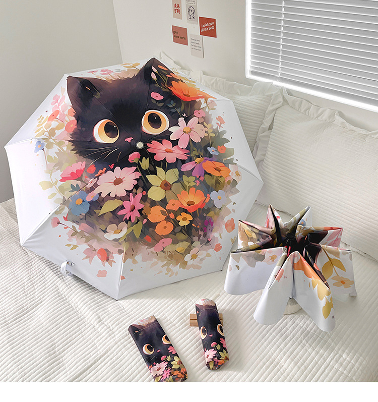 花束猫咪卡通折叠伞防晒防紫外线女晴雨两用太阳伞自动雨伞便携伞