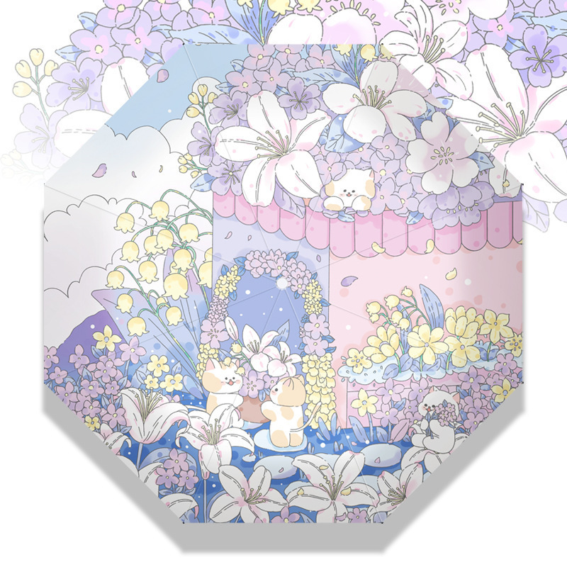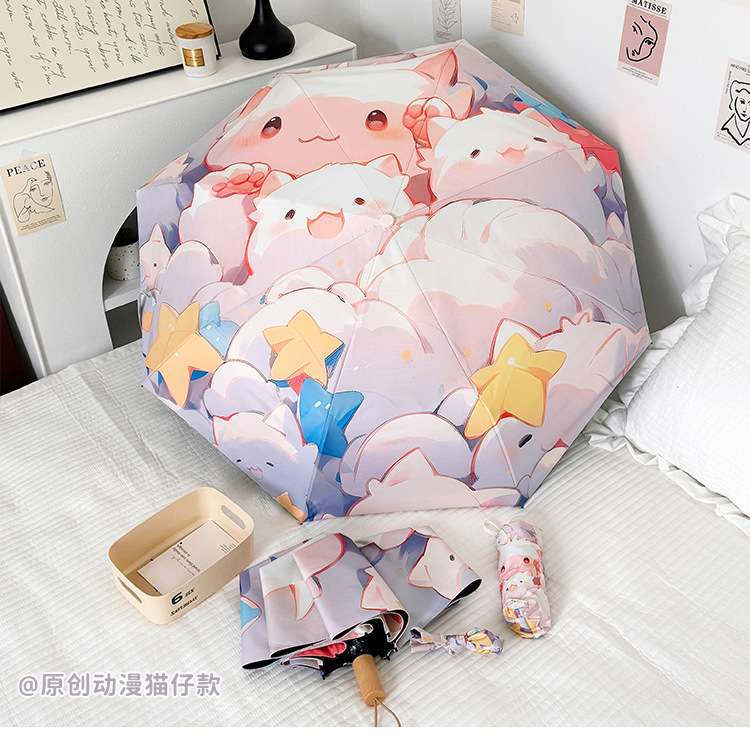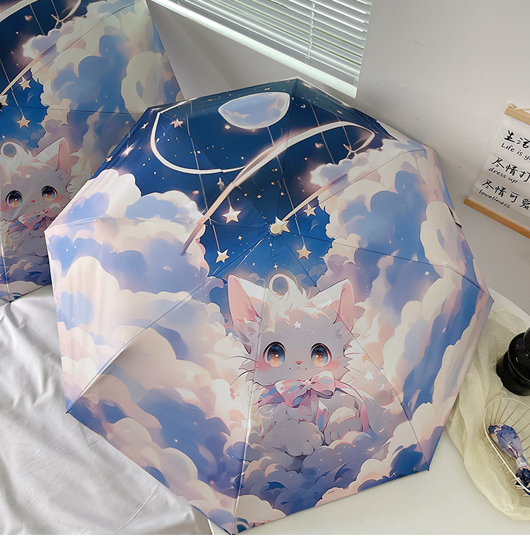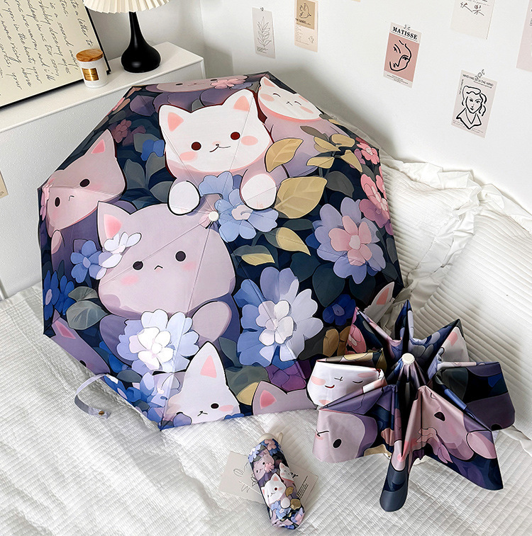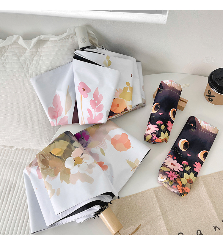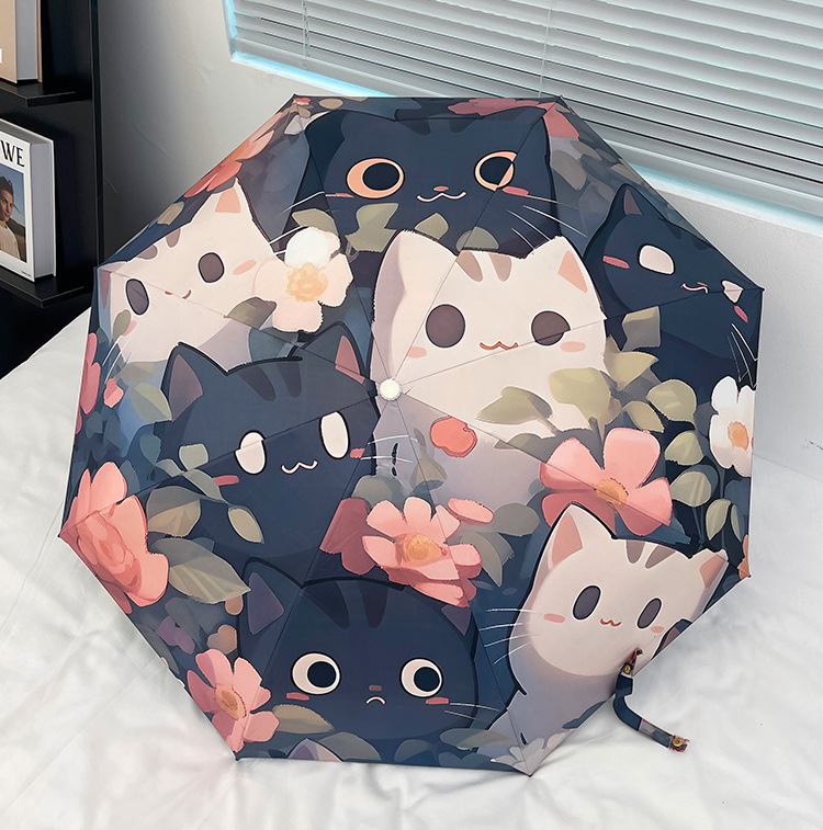 花束猫咪卡通折叠伞防晒防紫外线女晴雨两用太阳伞自动雨伞便携伞