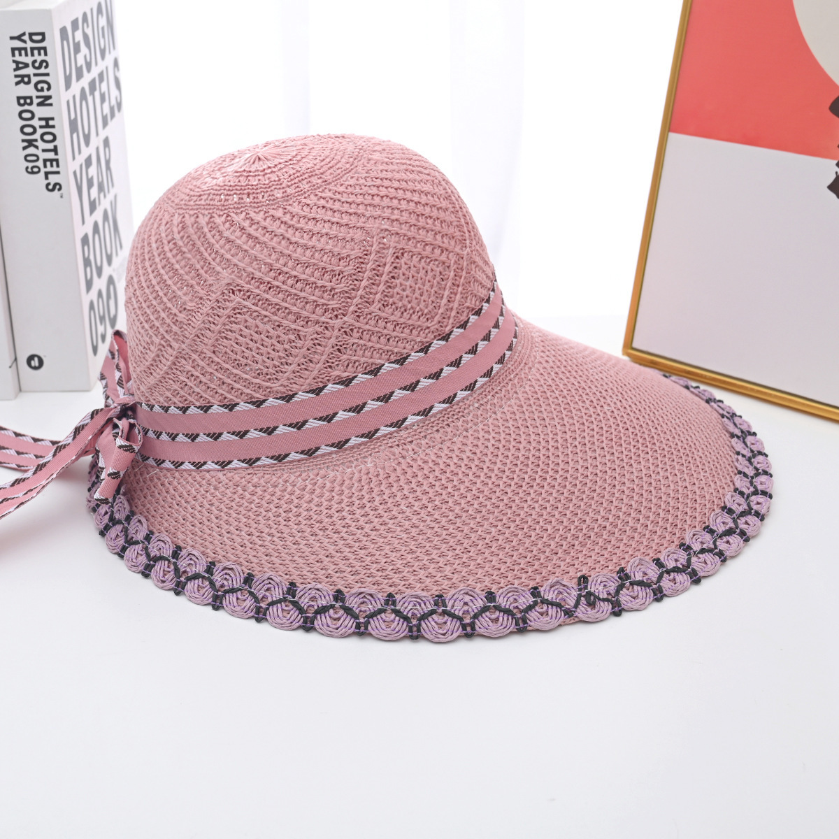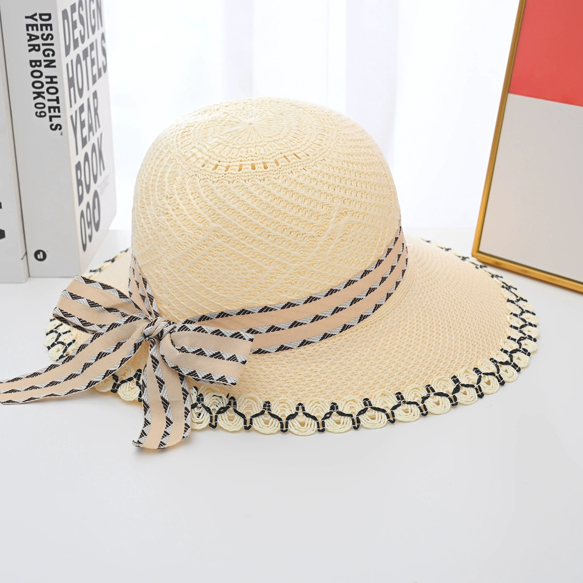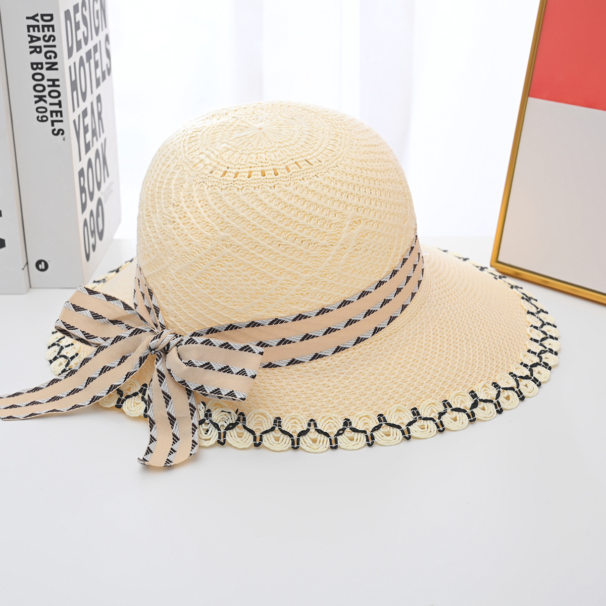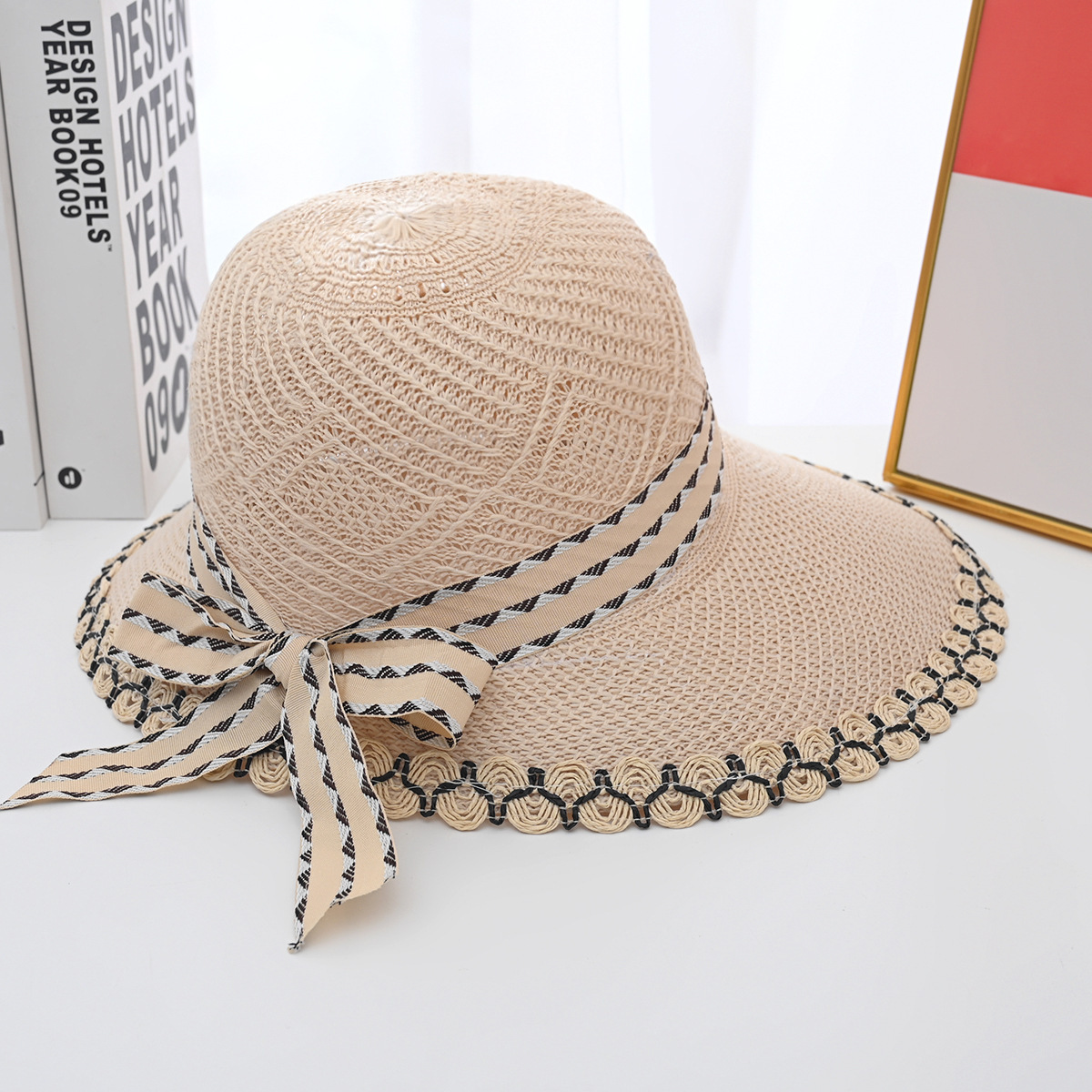 帽子女夏季新款大帽檐花边草帽时尚百搭防晒遮阳帽草编鸭舌太阳帽