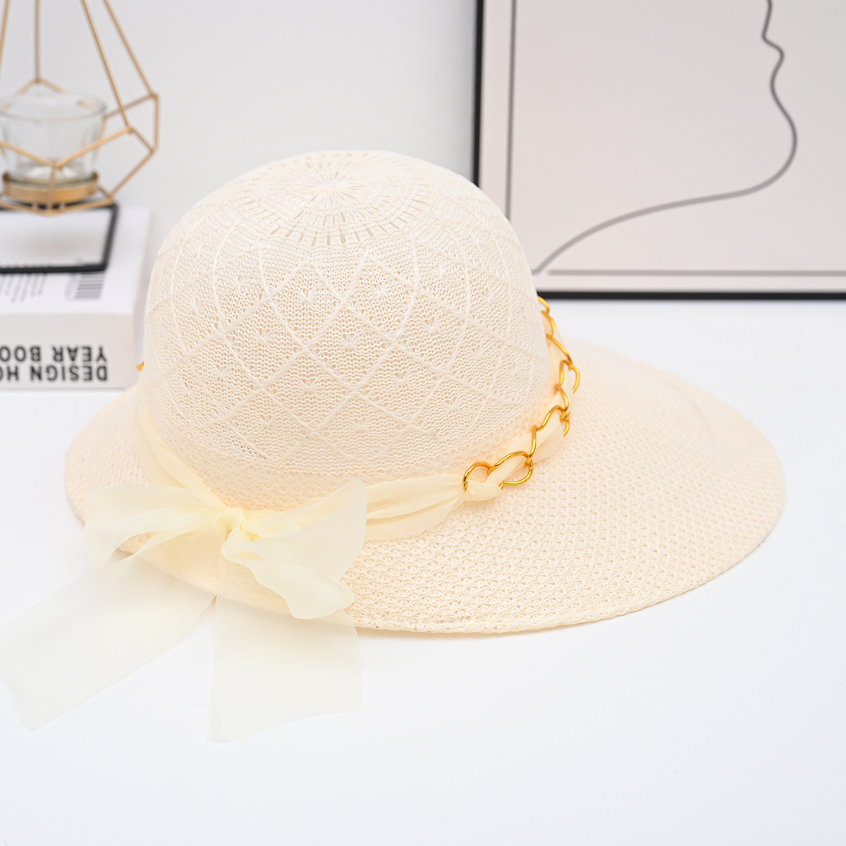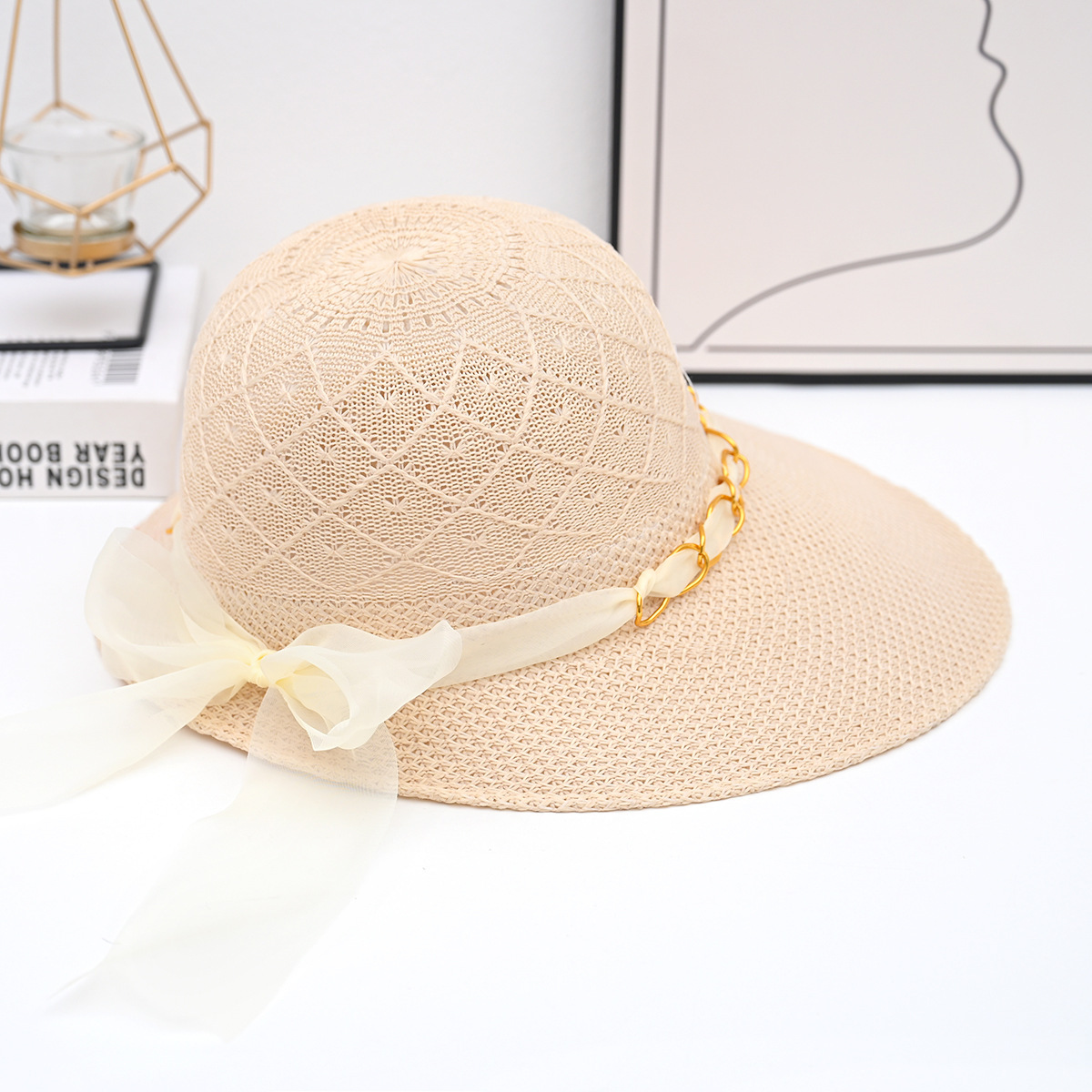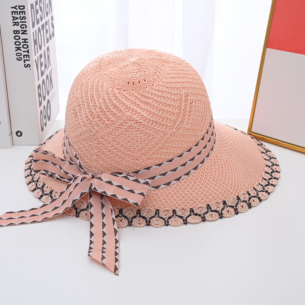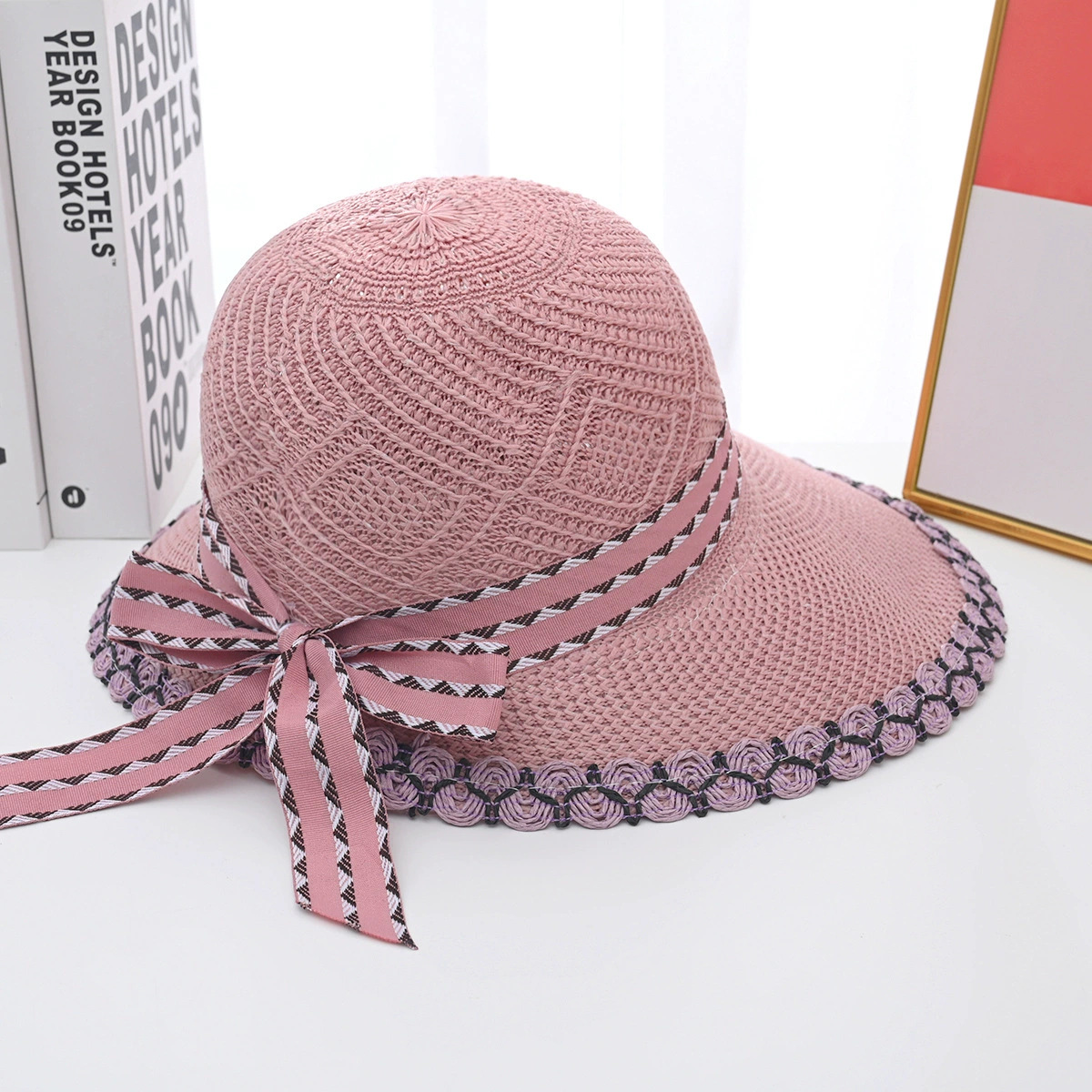 帽子女夏季新款大帽檐花边草帽时尚百搭防晒遮阳帽草编鸭舌太阳帽