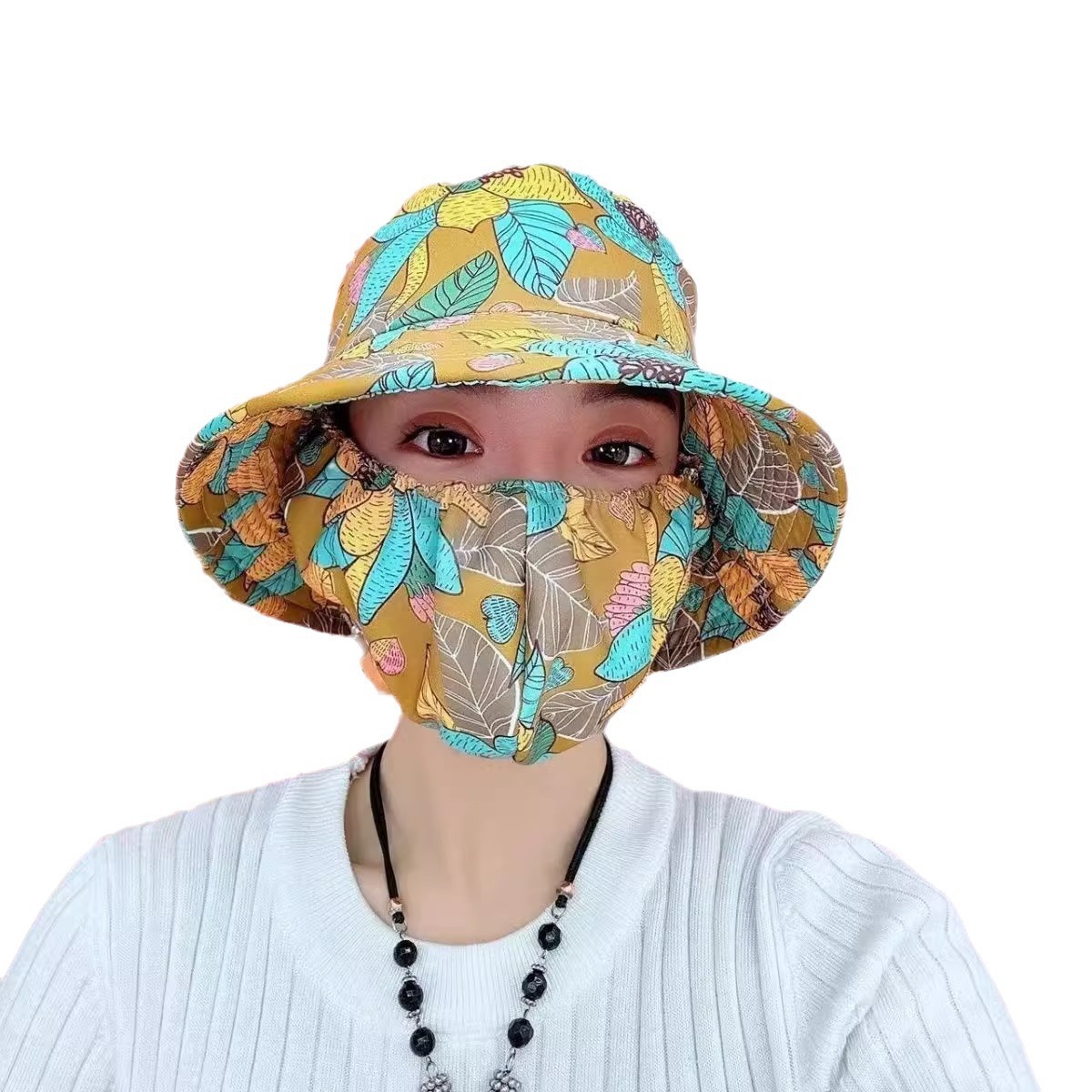 防晒口罩帽子一体女士干农活遮阳帽骑车春夏新款防晒帽夏季太阳帽