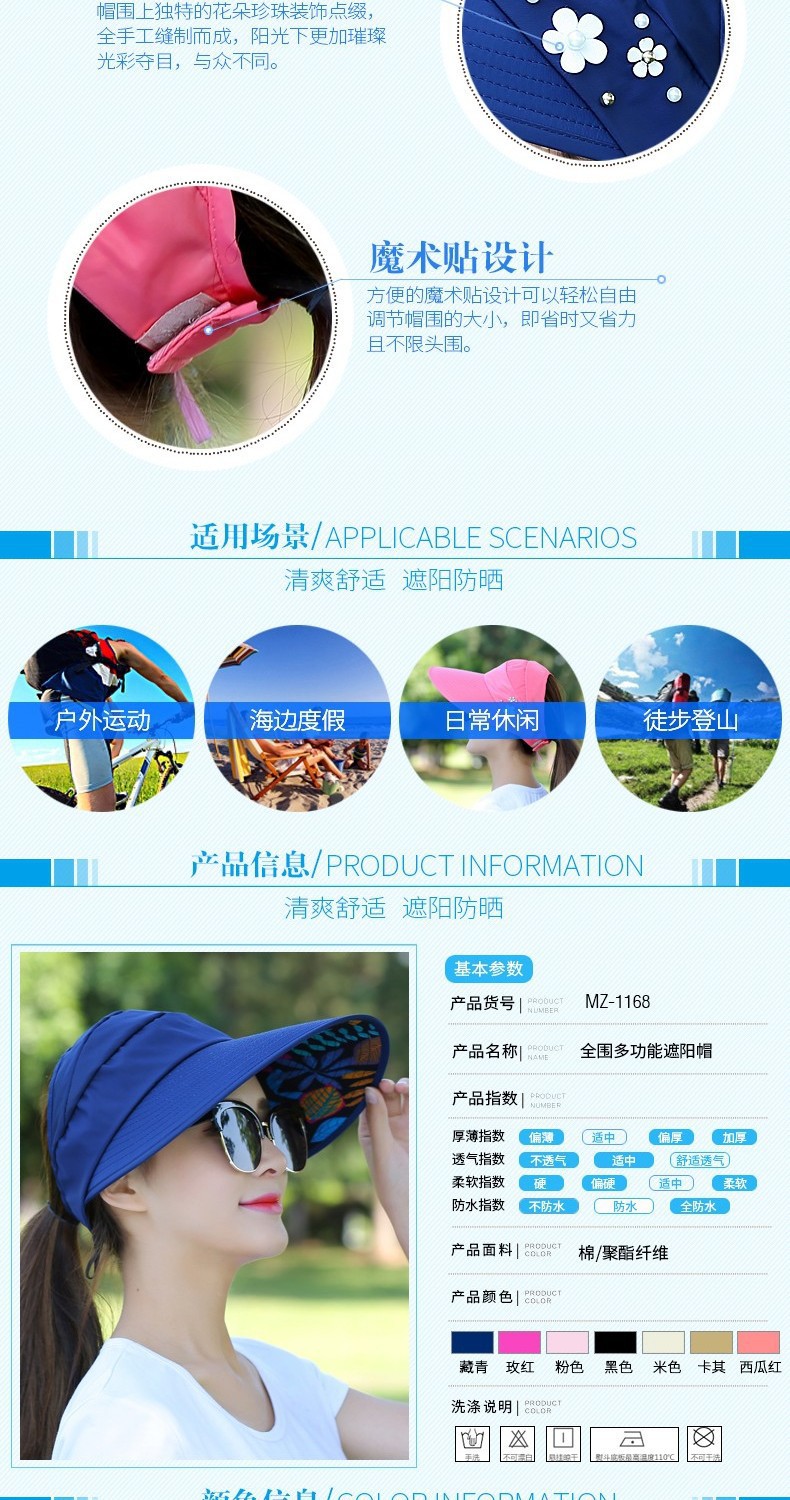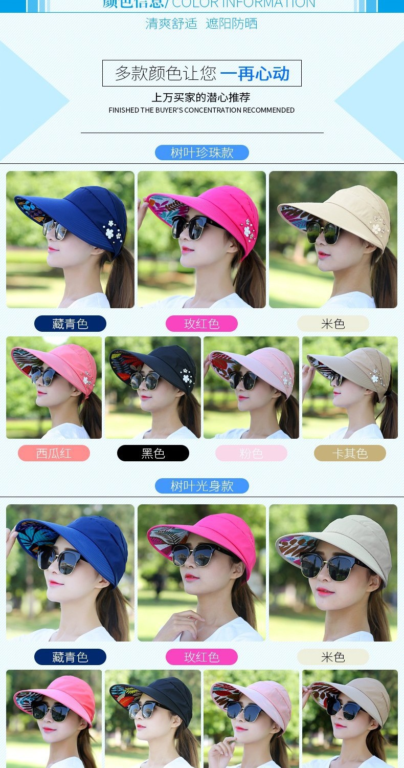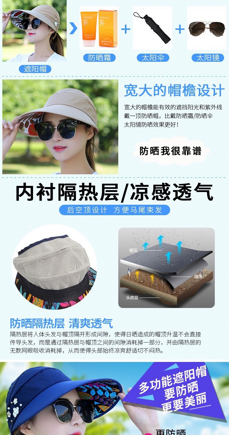 太阳帽夏季遮阳帽女士可折叠防晒帽大沿凉帽帽空顶防紫外田园风