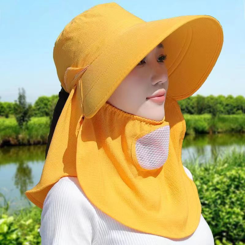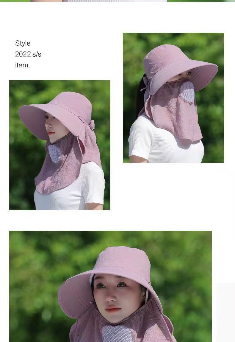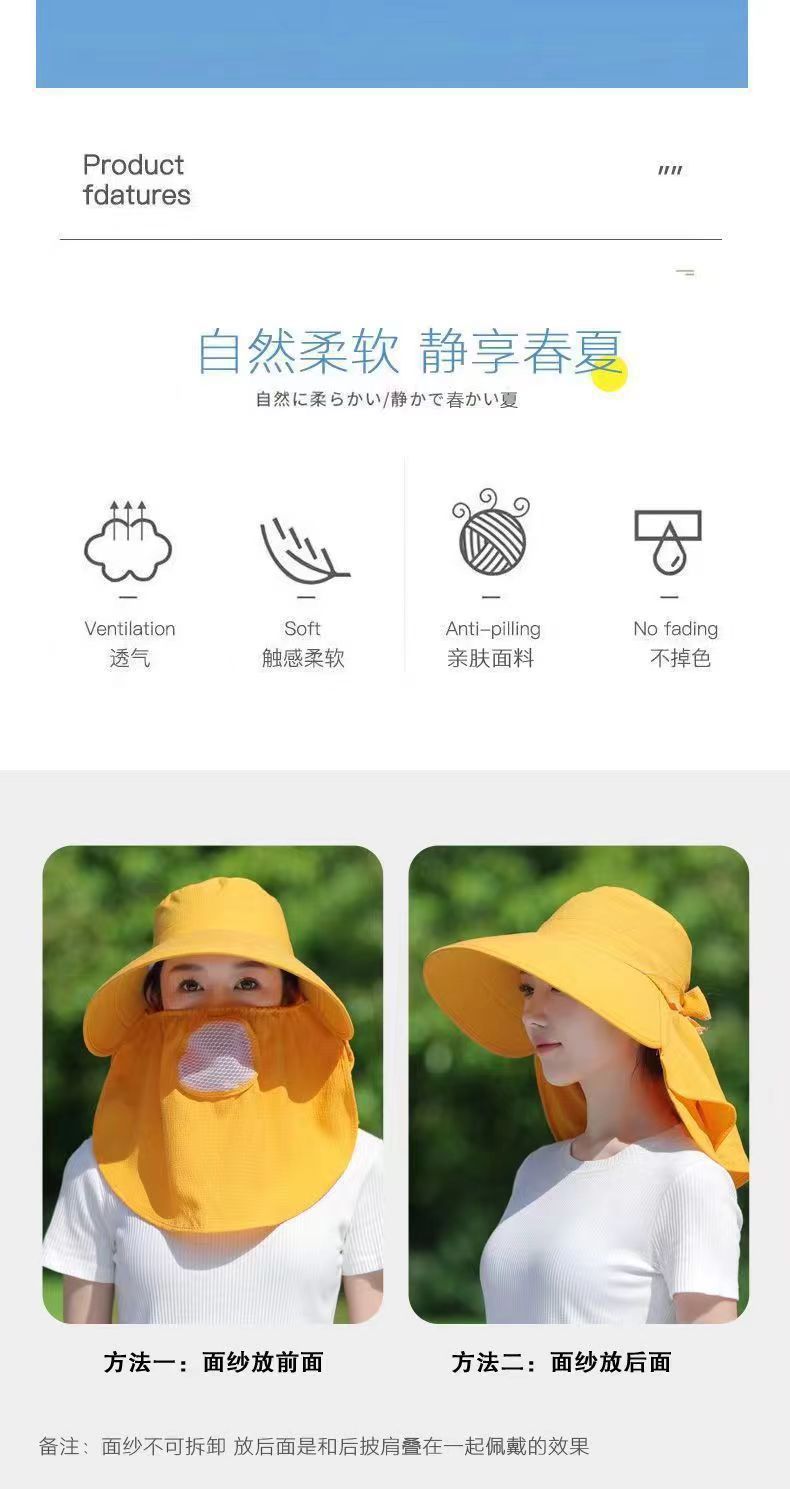 防晒采茶帽女防紫外线遮阳护颈披肩渔夫帽可扎马尾大帽檐防晒热词