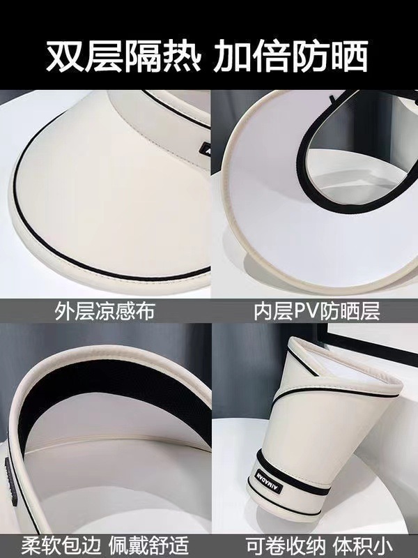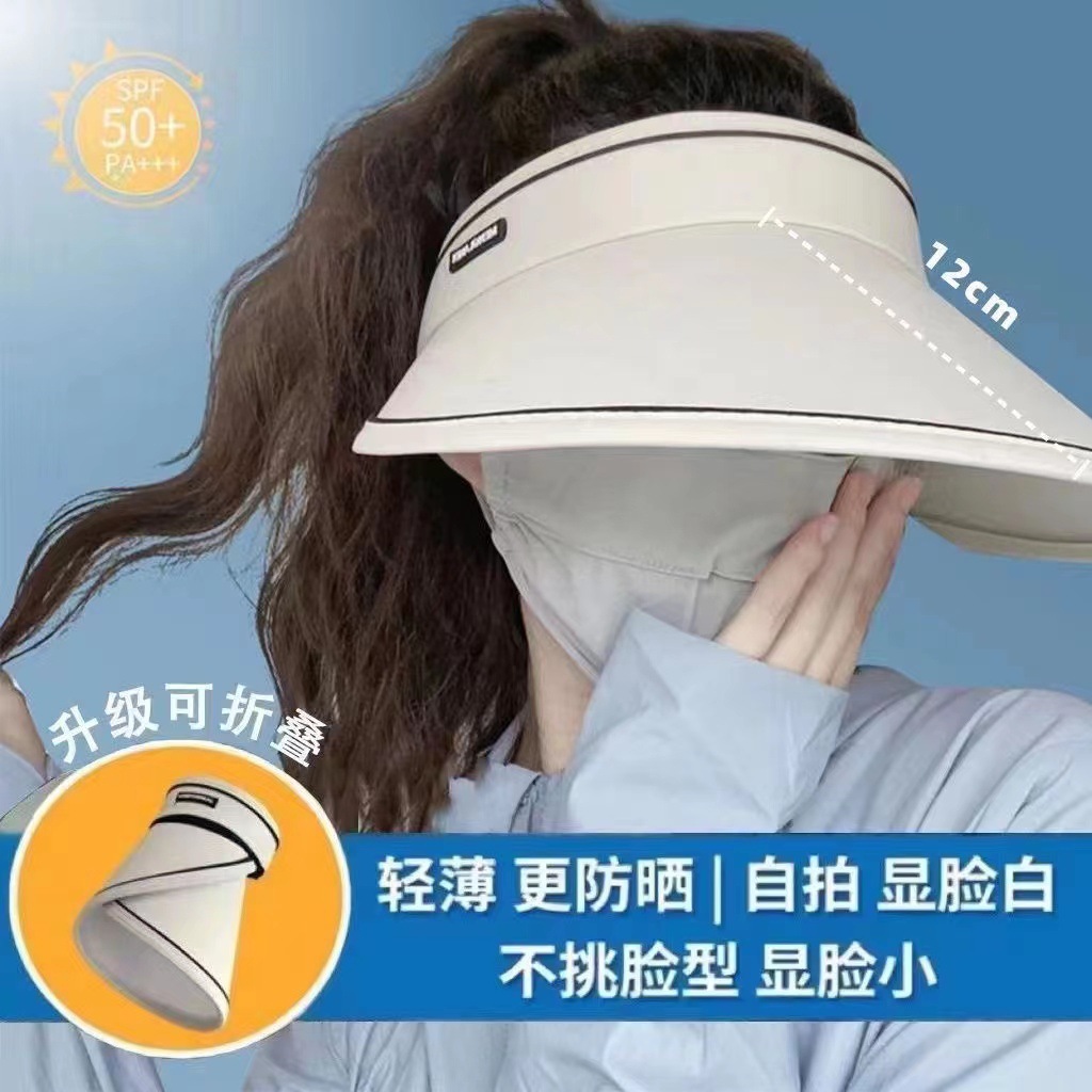 夏季遮阳防晒帽子女空顶帽2024新款遮脸防紫外线骑车太阳帽百搭款