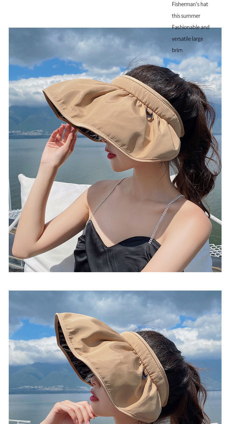 贝壳帽发箍帽子女uv防晒太阳帽遮脸渔夫帽遮阳防晒帽批发大帽檐