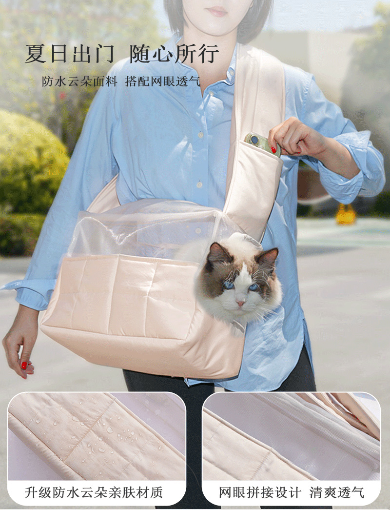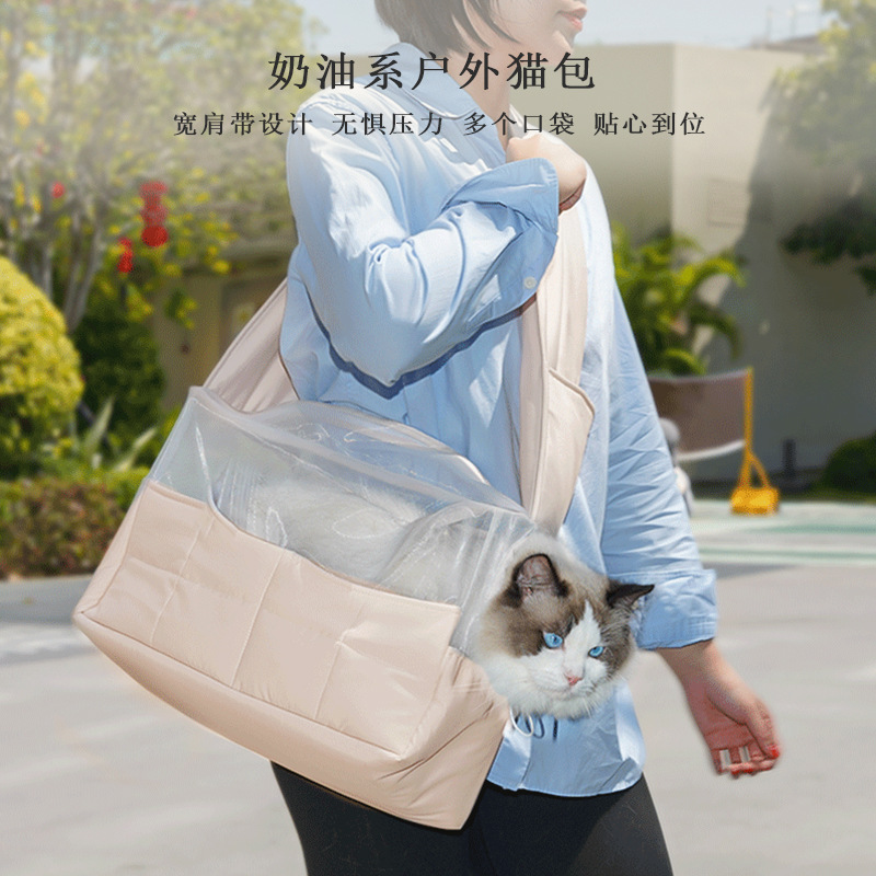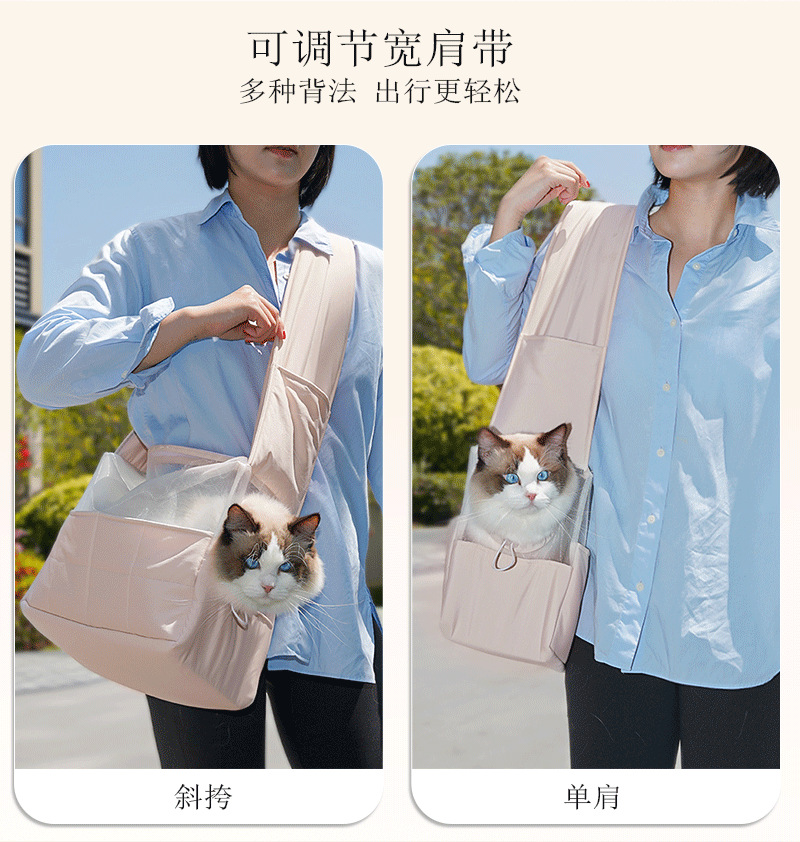 宠物简约外出透气便携神器单肩斜挎包大空间防水布偶猫防挣脱狗包
