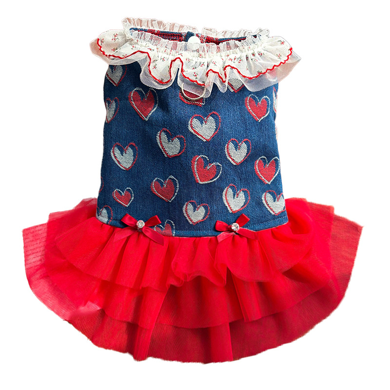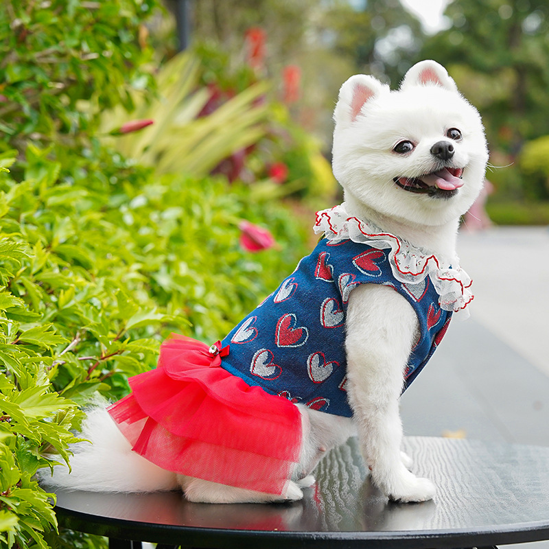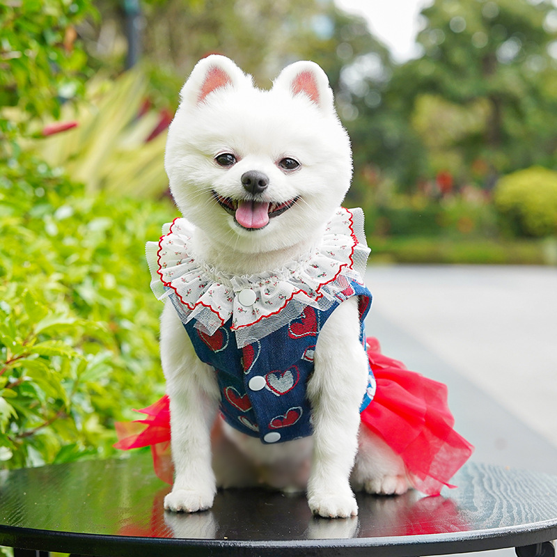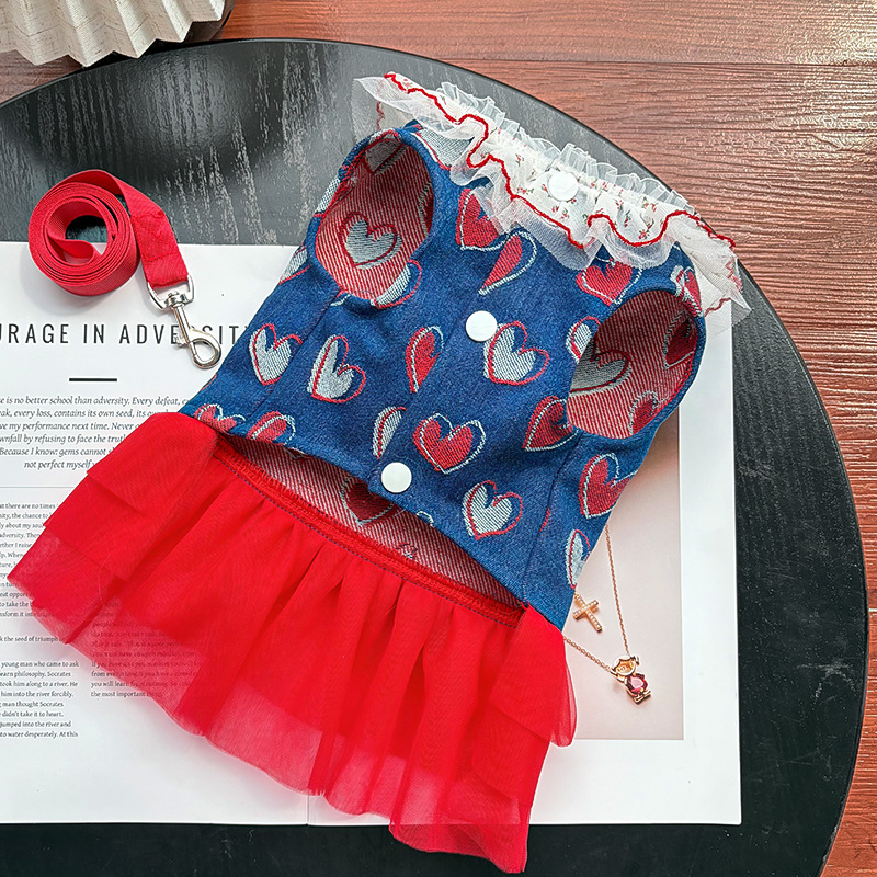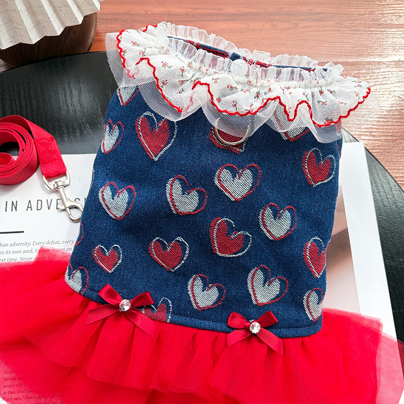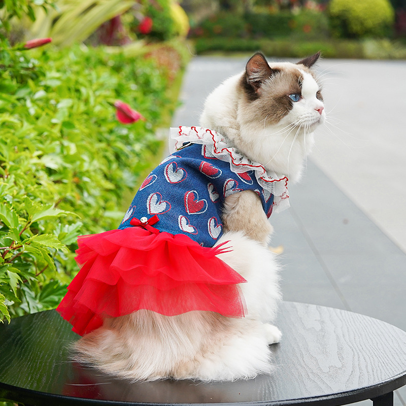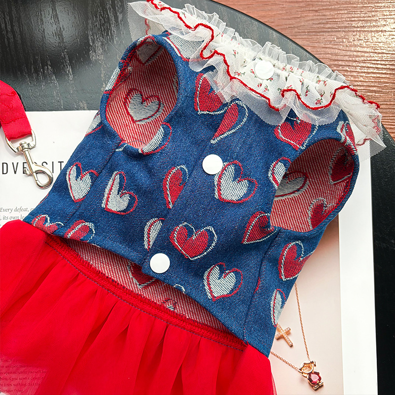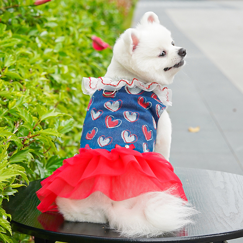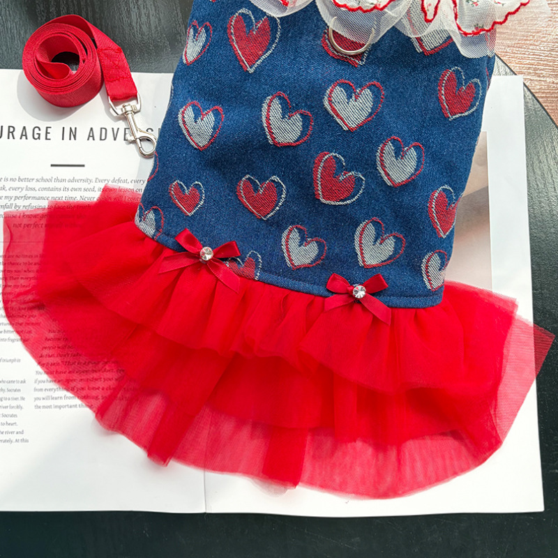 春夏牛仔蓬蓬裙胸背可牵引外出宠物狗狗猫咪公主衣服用品泰迪比熊