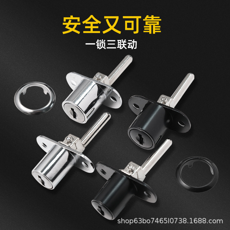 办公桌抽屉锁文件柜联动锁一体三家具柜铁皮柜门三联锌合金材质
