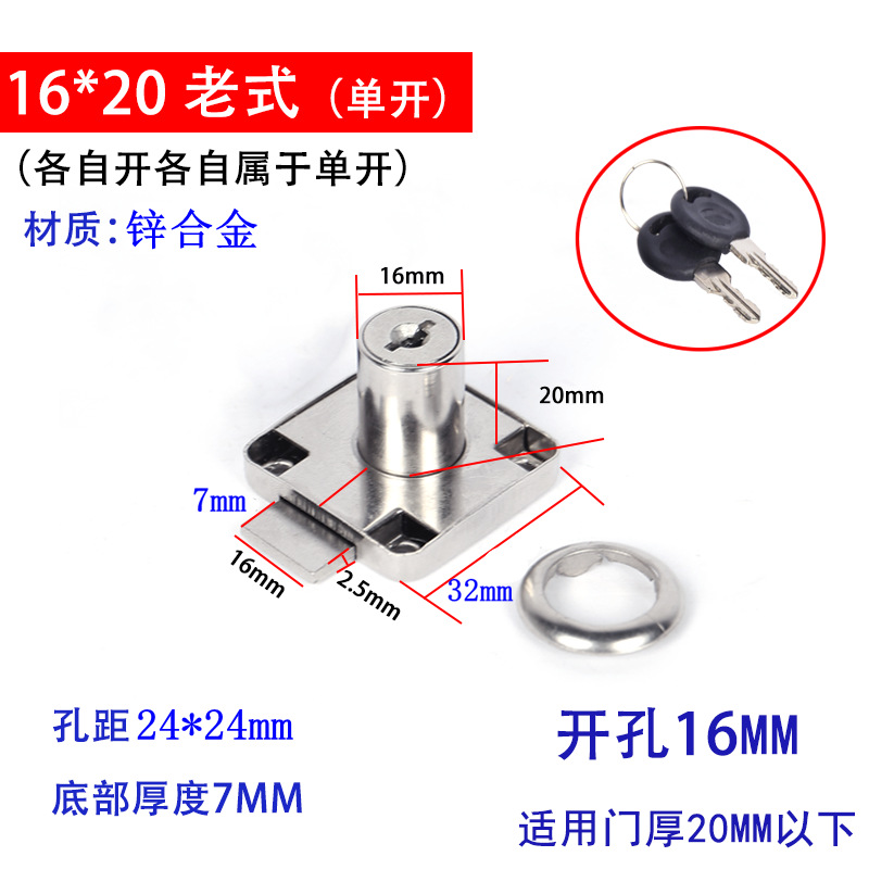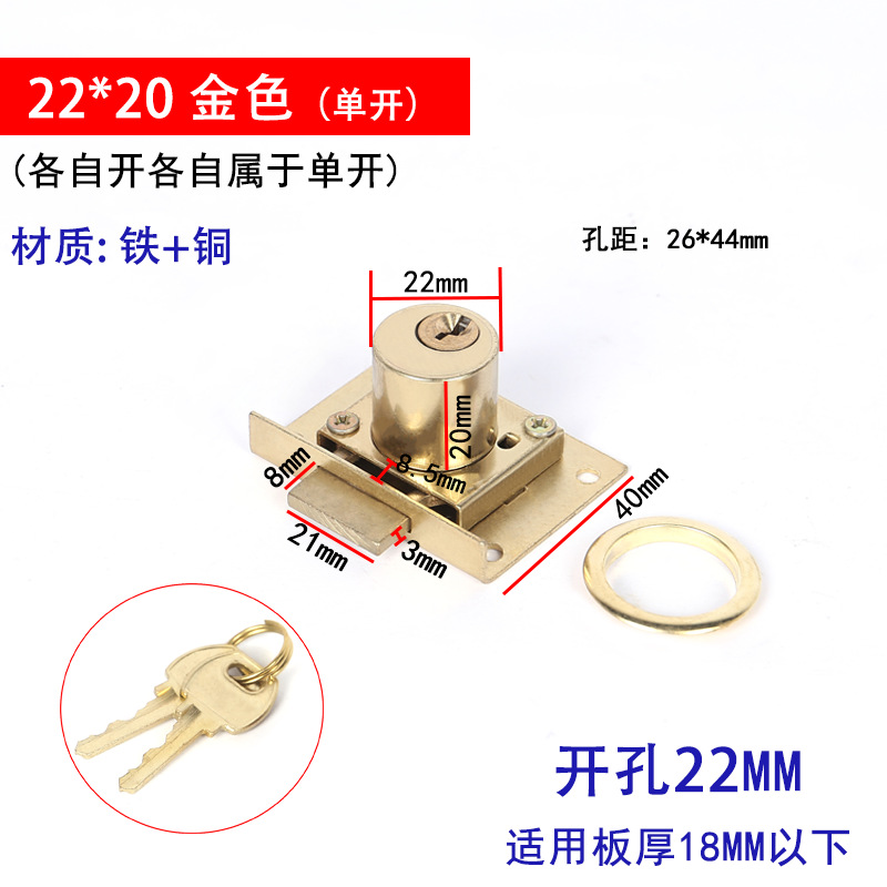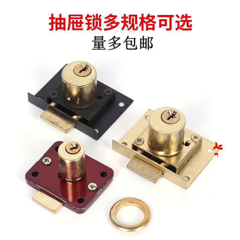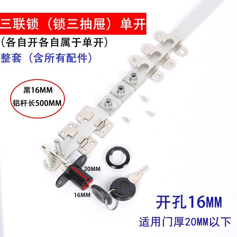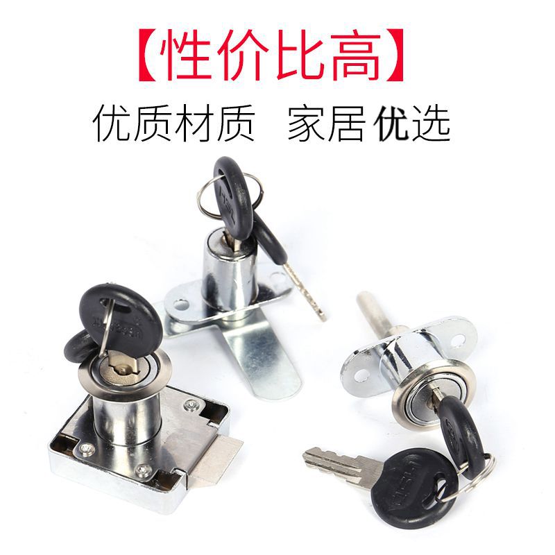 家具办公室锁三联抽屉锁电脑桌文件柜双开门锁老式抽屉锁通开