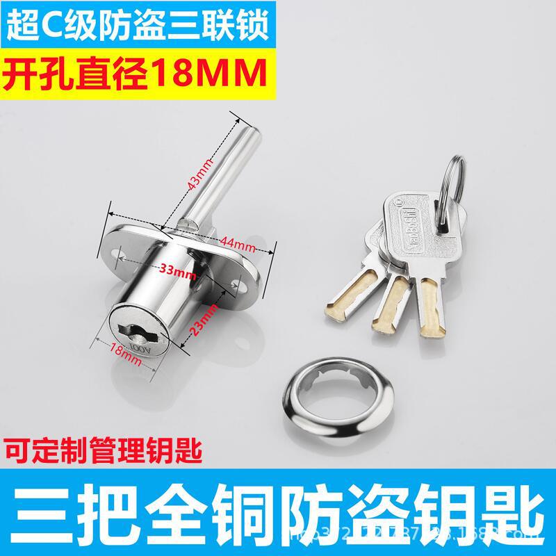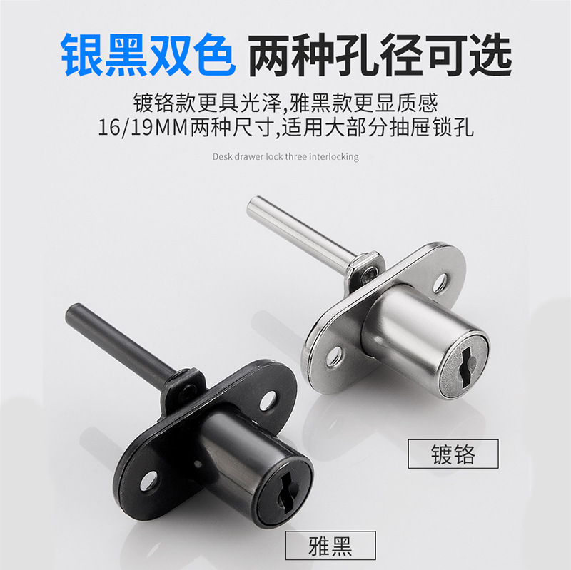 办公桌柜子锁三联锁一锁三抽屉锁正面三连锁头锁芯矮柜三联动锁杆