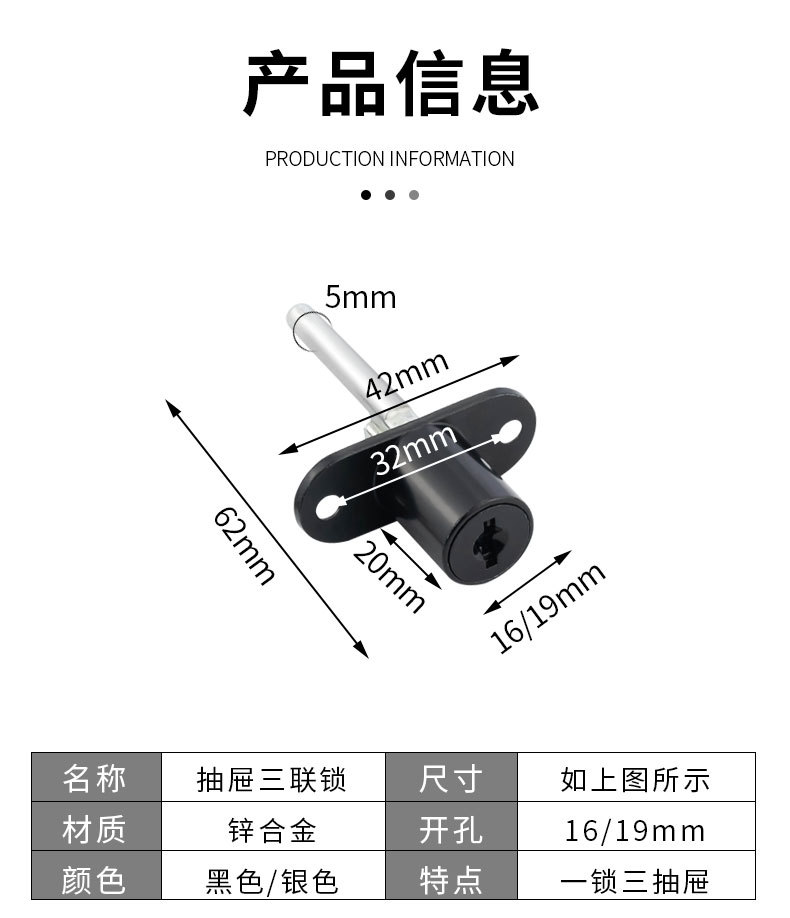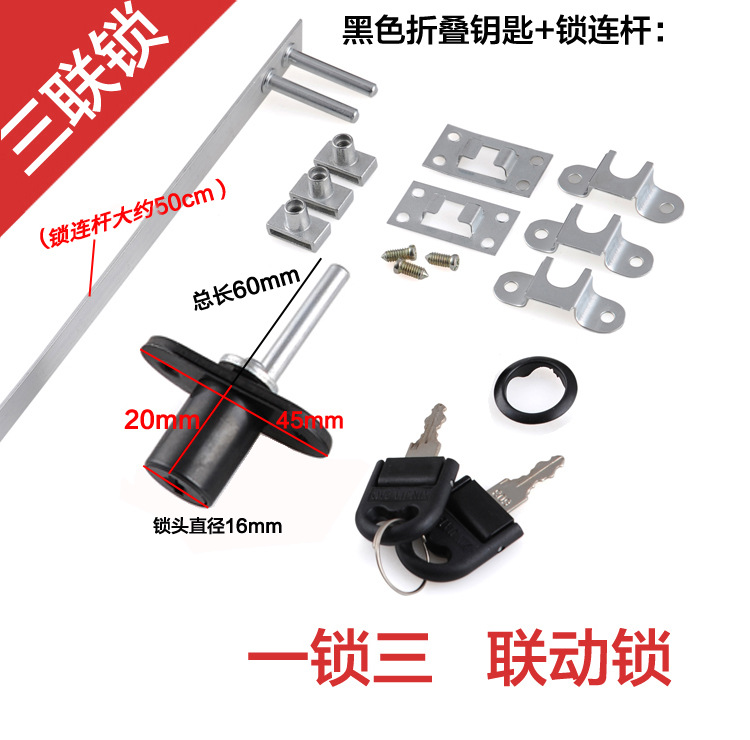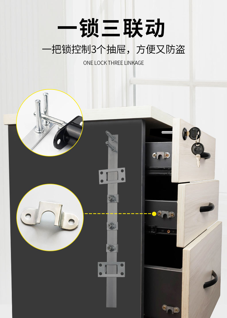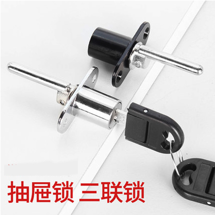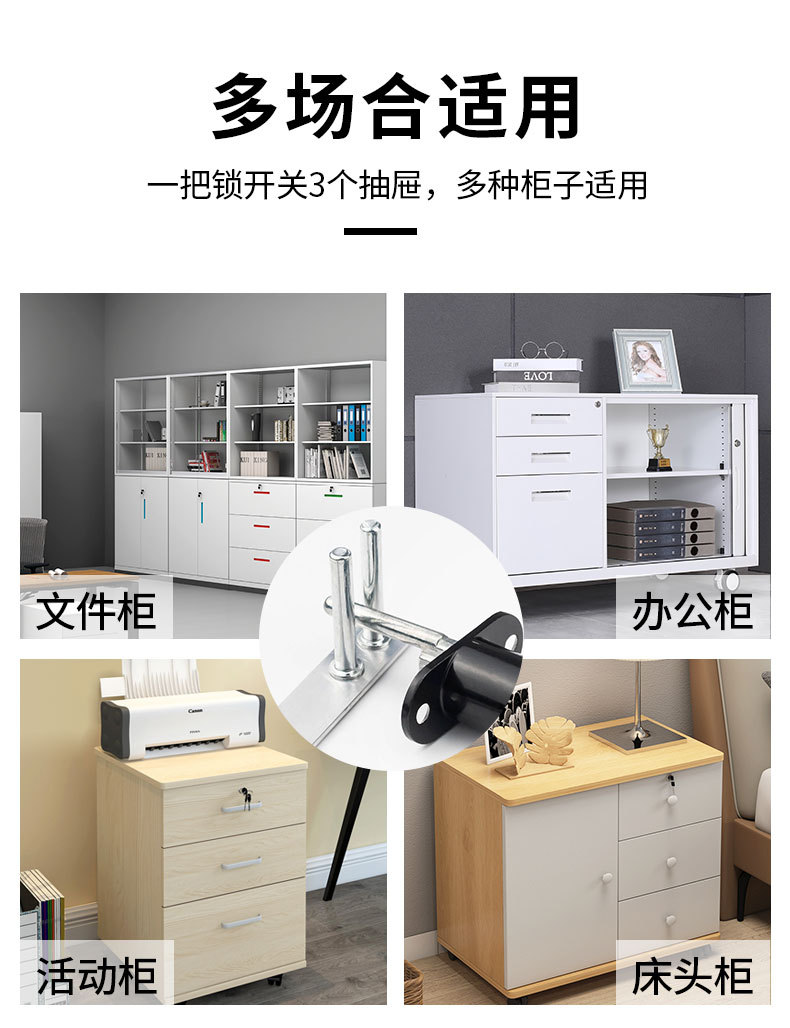 办公桌文件柜锁芯柜门锁三联抽屉锁柜子锁家用家具锁三连锁一锁三
