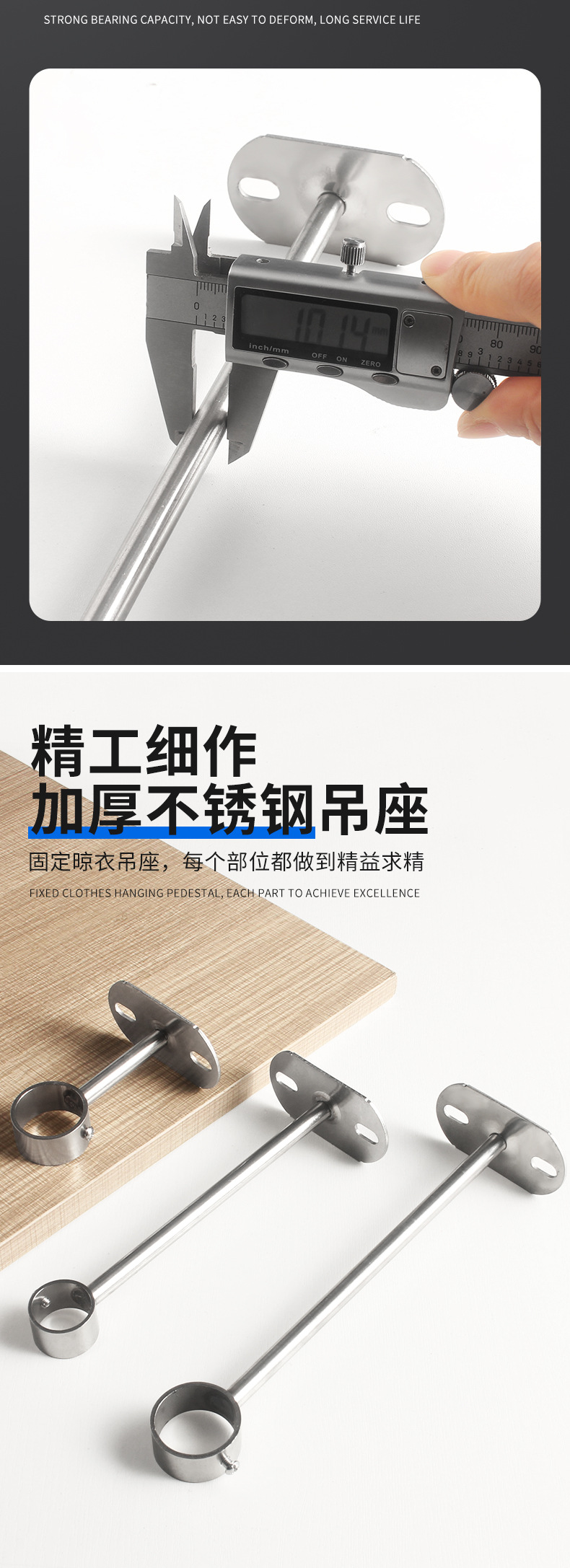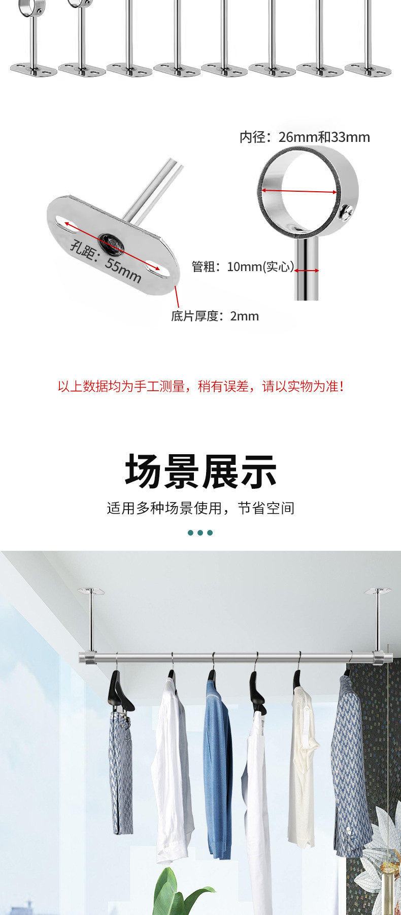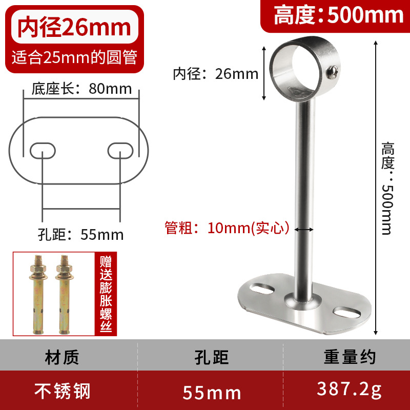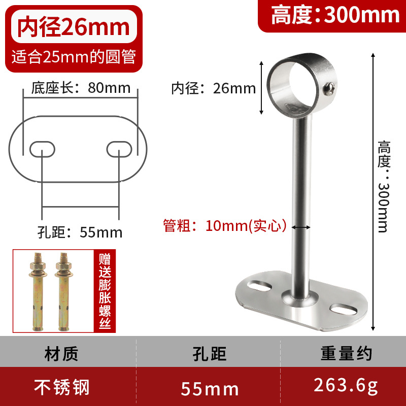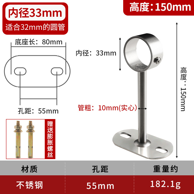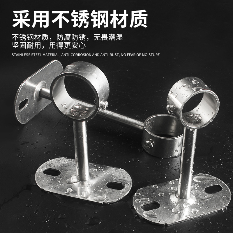 不锈钢吊通挂衣杆管座毛巾座圆头侧装顶装晾衣杆加厚法兰实心吊座
