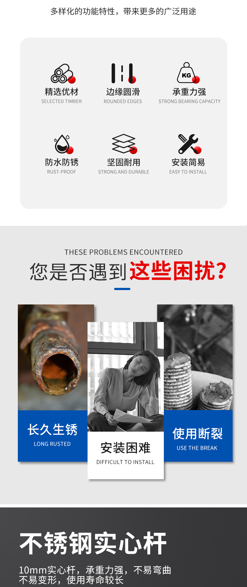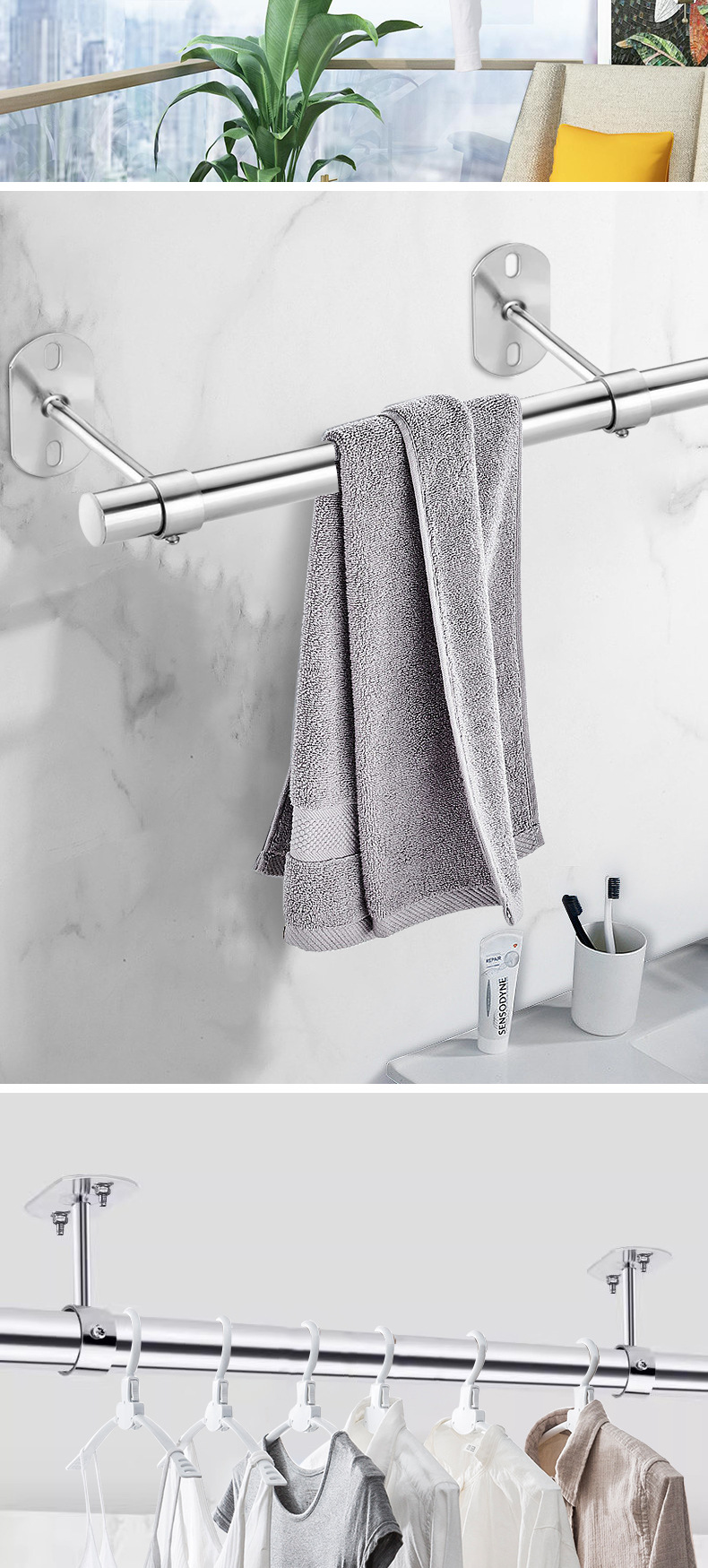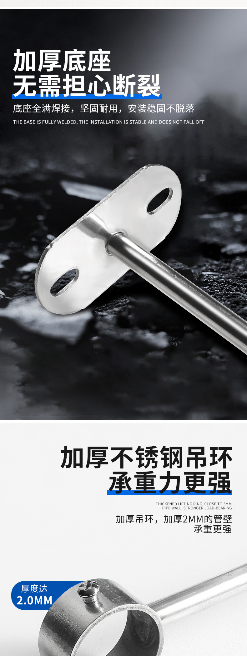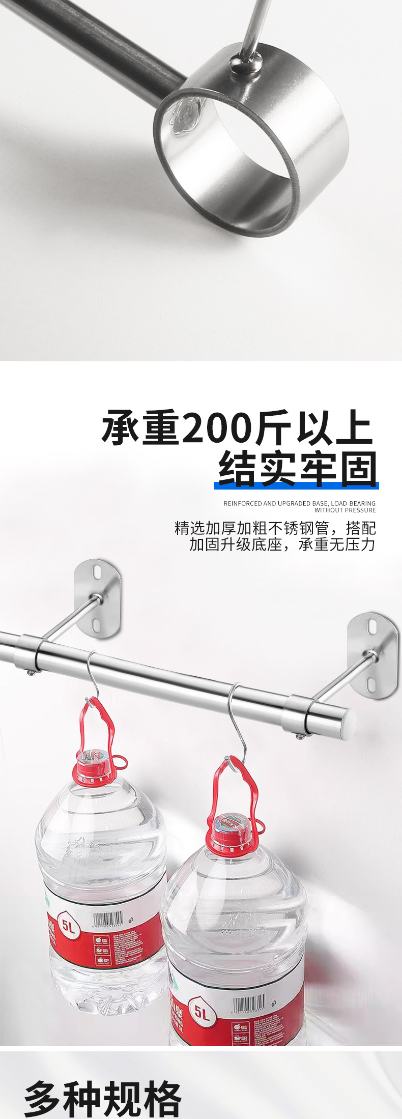 不锈钢吊通挂衣杆管座毛巾座圆头侧装顶装晾衣杆加厚法兰实心吊座