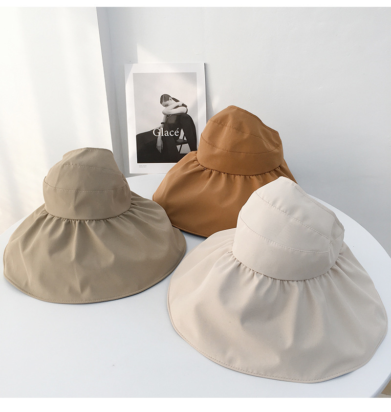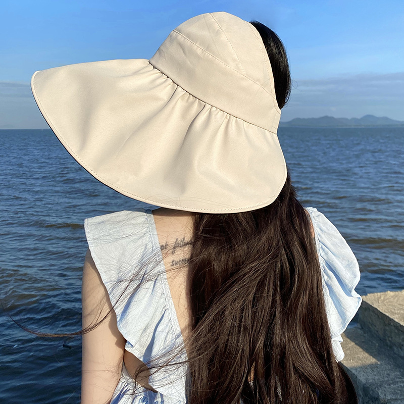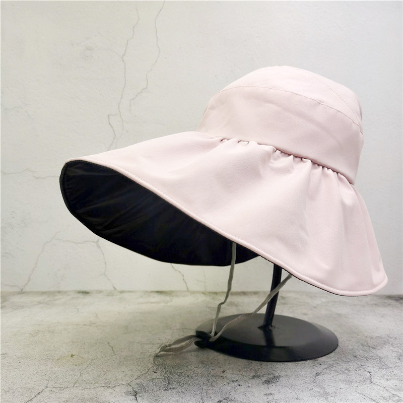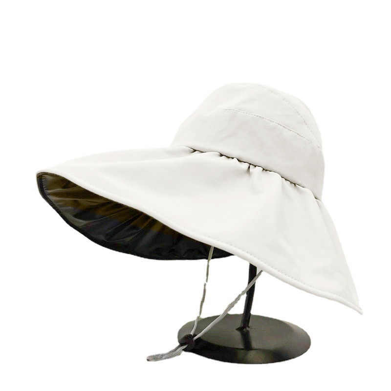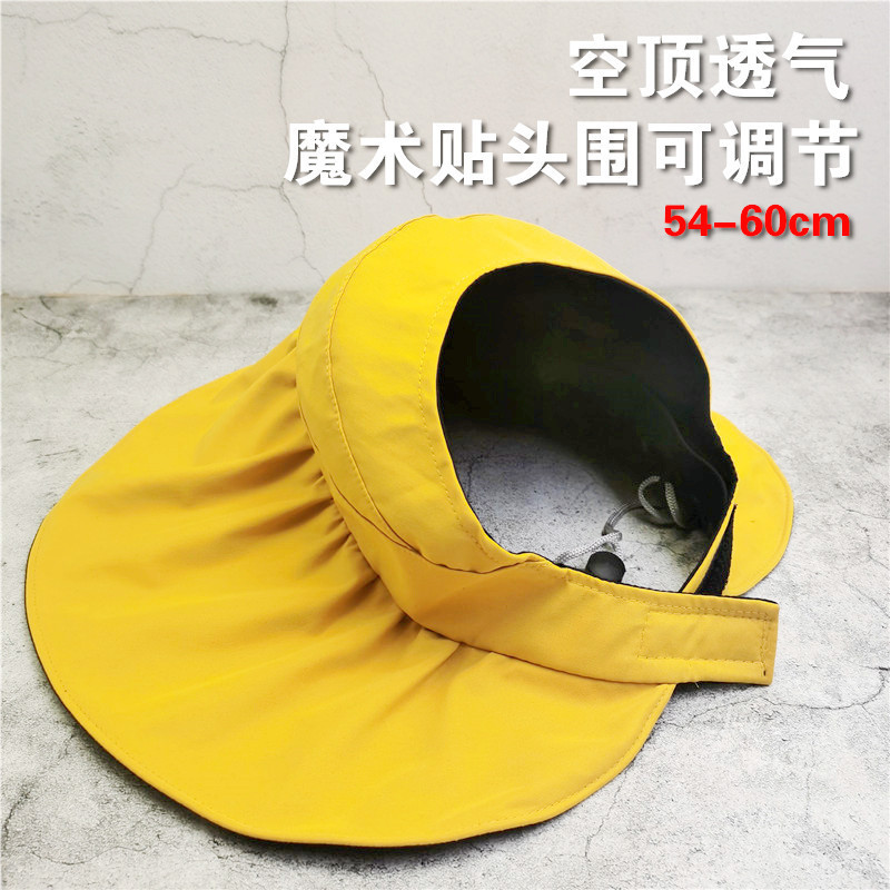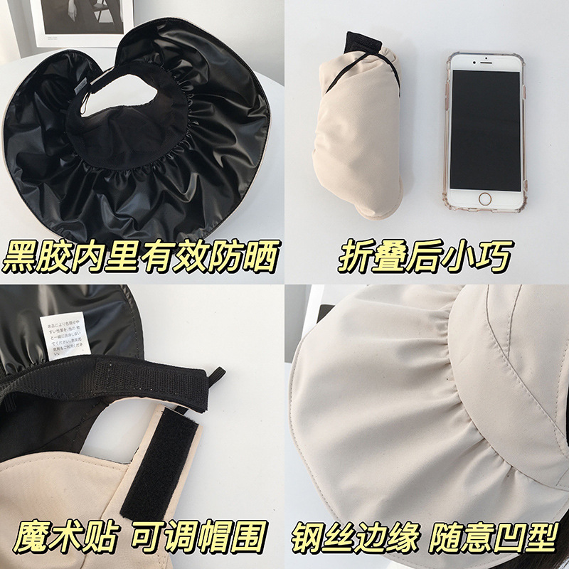 黑胶空顶遮阳帽女夏防晒帽子防紫外线遮脸渔夫帽可折叠调节大头围