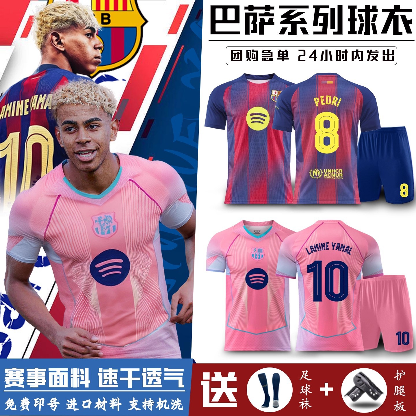 2526巴萨球衣亚马尔足球服套装男定制巴塞罗那主客场儿童训练队服